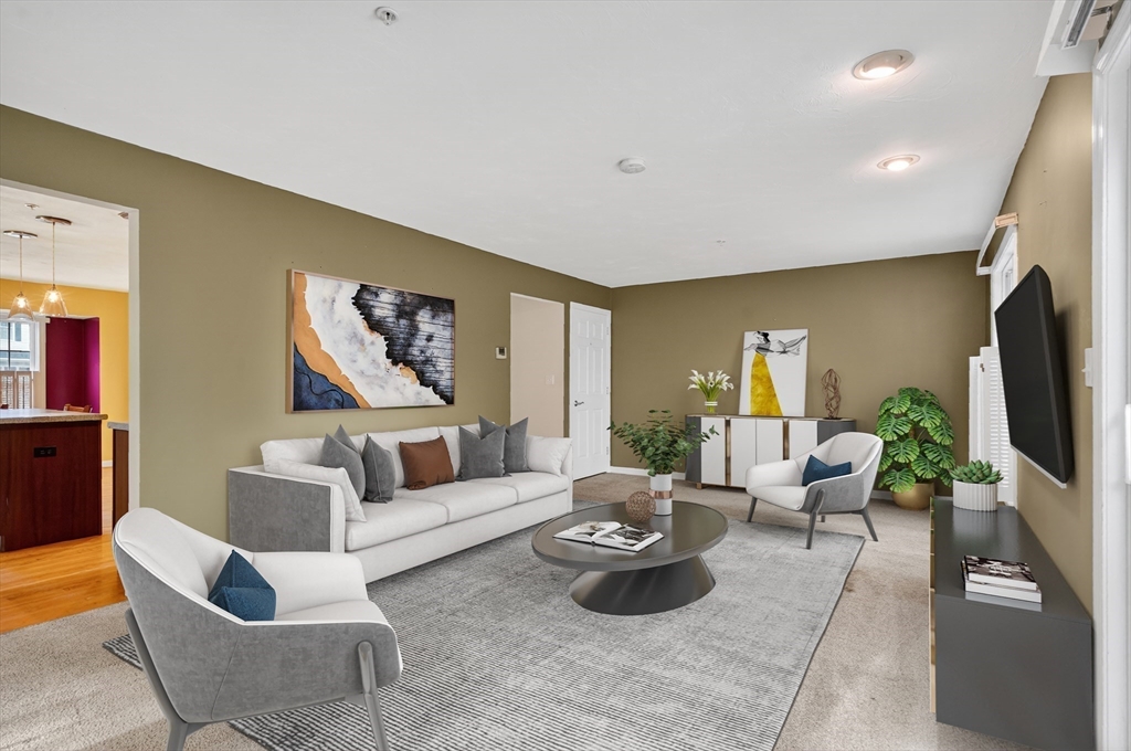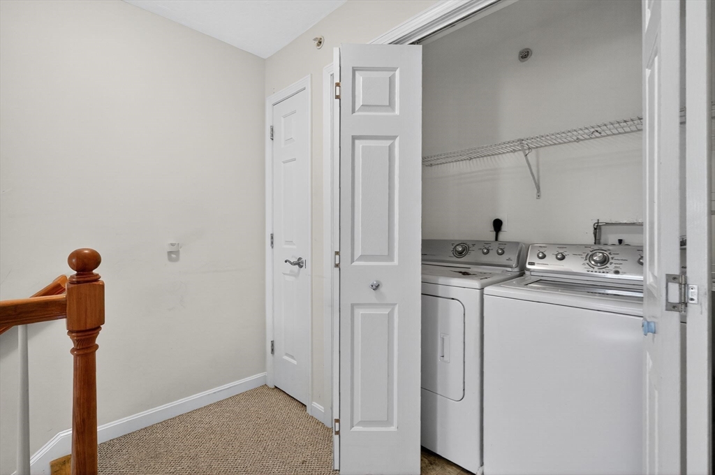 ***Offer deadline, Monday 11/10 - 5 PM ***Welcome to Carousel Village! Conveniently located near shopping, restaurants, and only 2 miles from the commuter rail to Boston. The main level features an eat-in kitchen with hardwood floors and a large picture window, plus a spacious living room with sliders leading to a private deck and outdoor space. A first floor half bath adds convenience. Upstairs, you’ll find two generous bedrooms and two full bathrooms, along with washer and dryer hookups for added practicality. A large unfinished basement provides excellent potential for future expansion, storage, or a workshop. Parking is located directly in front of the unit for everyday ease. With some cosmetic updates, this home can truly shine. A great opportunity to build equity in a desirable location!