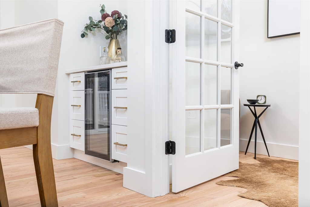 Brand-new 2025 Mansard-Style Townhouse that lives like a single-family home! Step into an elegant foyer leading to a bright, open floor plan filled with plenty of natural light, high ceilings, and hardwood floors throughout. Features 3 spacious bedrooms and 2.5 baths, including a primary suite with a double vanity. The first floor includes a home office, ideal for remote work or study. The modern kitchen boasts a pot filler and a sliding door to a large deck—perfect for entertaining. Enjoy a private fenced yard and a basement with potential to be finished. Built in 2025 with quality craftsmanship. Condo fee covers master insurance only—no other common expenses. EV outlet installed. Fantastic location—minutes to the train station, vibrant downtown, and recreational fields. Easy to show!