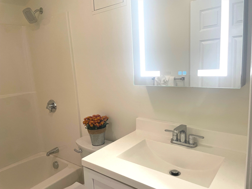Stunning! Turn-key Tri-level with private patio overlooking expansive lawn. Sight line from beautiful kitchen, brilliant open-concept dining area and living room through large, picture window and sliders out to lovely grounds/greenspace. Enjoy morning coffee al fresco as there is a primary bedroom with sliding glass doors also opening out to the covered patio. A lovely full bath is on this level, and another full bath is down a few steps on the next level with flex-use office, den or possible 3rd bedroom. Separate in-unit laundry room and utility/storage area at entrance on upper level. Freshly painted with new COREtec vinyl plank among recent improvements Ample parking.. Well managed association has healthy reserve fund. Conveniently located, easy access to route 128, shopping, restaurants and public transportation. The combination of a desirable location, move-in-ready condition and recent, more favorable rates may be tipping the scale in your favor with this outstanding property!