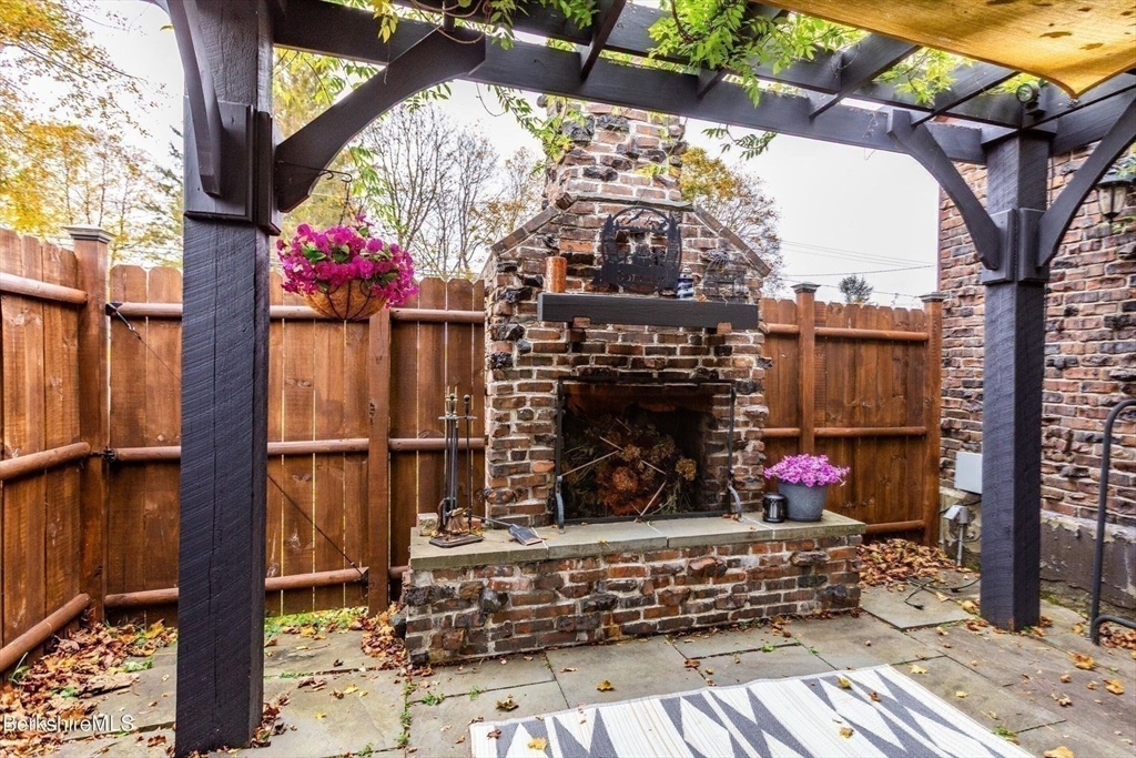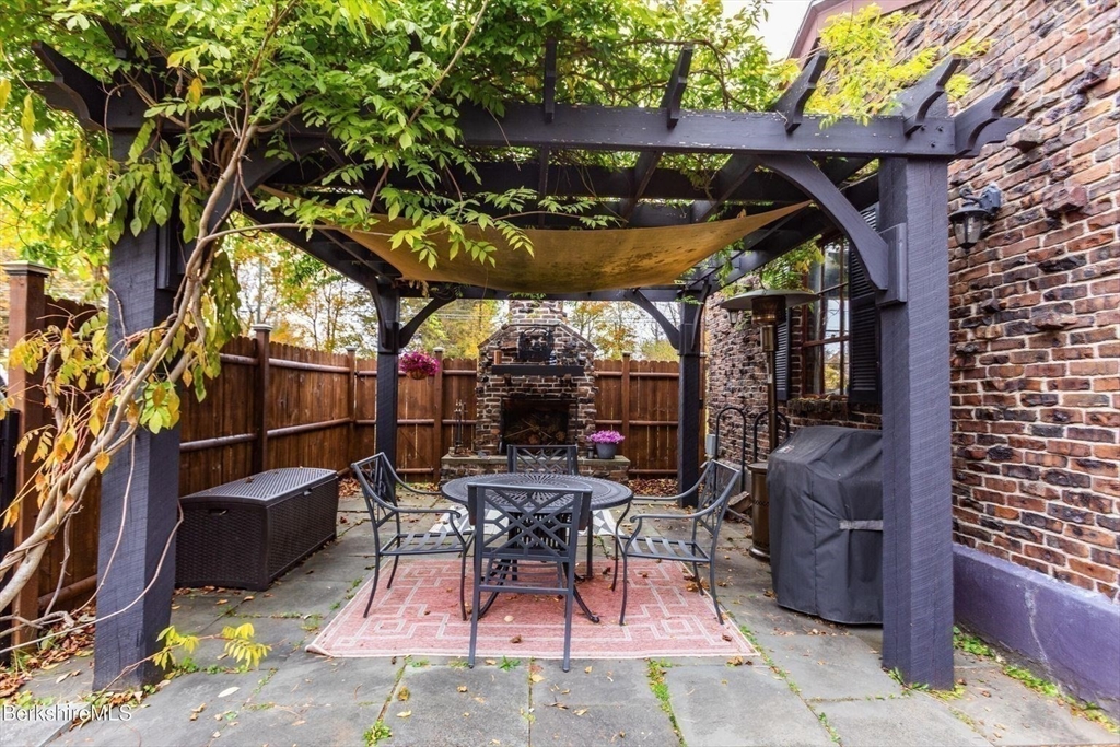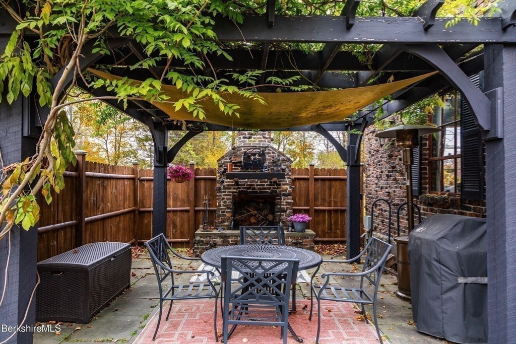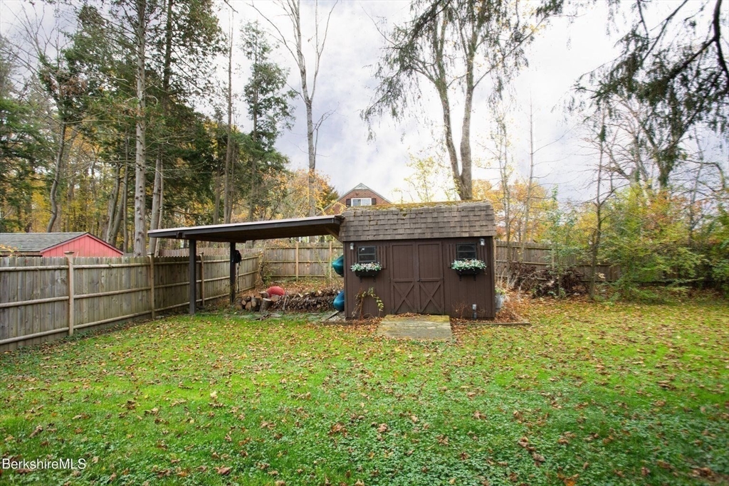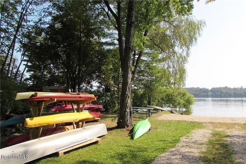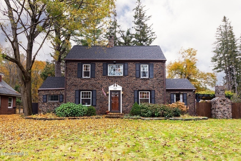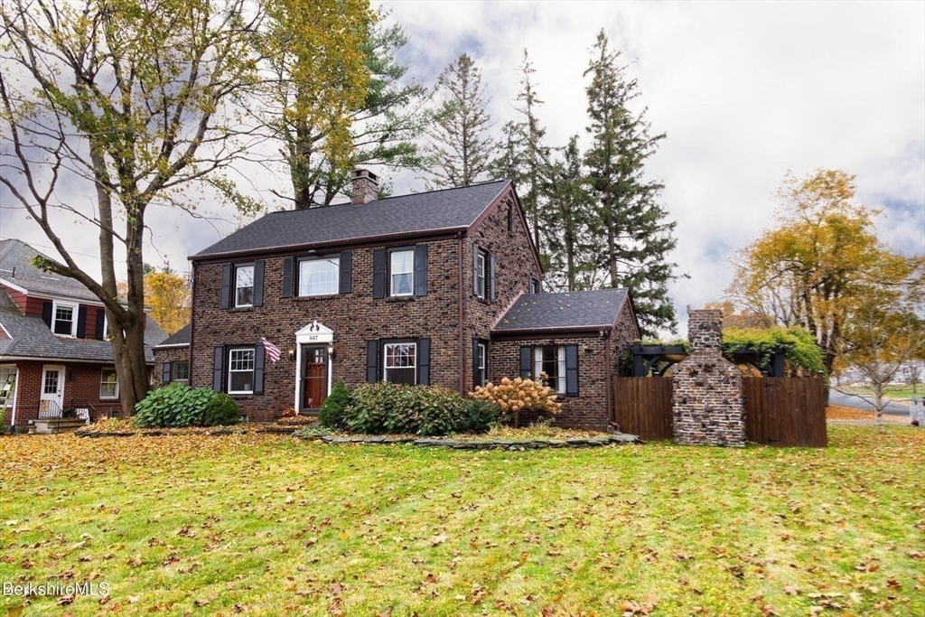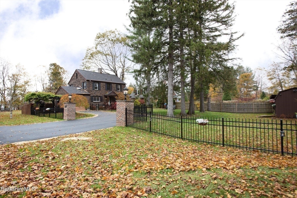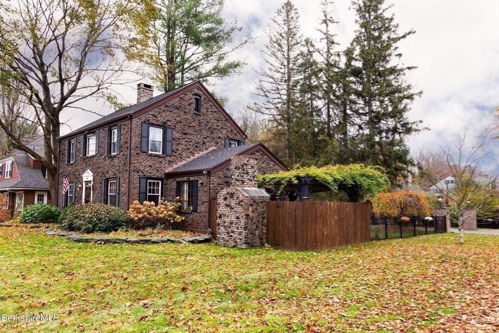 DEEDED LAKE RIGHTS to Onota lake with access to a private beach on Blythwood Drive. This unique Brick colonial home has many high end finishes and recent updates. The kitchen boasts a Wolf gas range, granite counter tops, an island, a new touch screen refrigerator (2023) new dishwasher, recessed lighting, plus ceiling height cabinets for tons of storage The living room has a gas fireplace creating a cozy ambience. Plus there is a library/den with marble floors and tons of storage. The primary bedroom is spacious with 2 closets. There are wood floors through out the home, new vinyl windows/roof (2023). The lower level is partially finished & has radiant heat for winter comfort. The outdoor space is wonderful for entertaining highlighted by a patio with pergola & brick fireplace.The backyard is fully fenced yard with a shed for storage. The driveway was paved in 2025