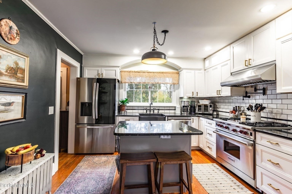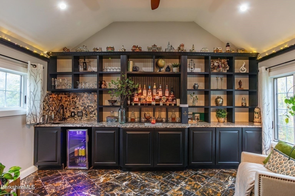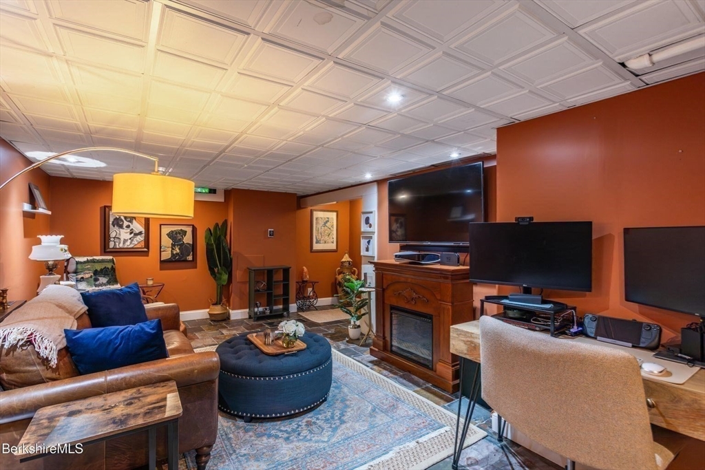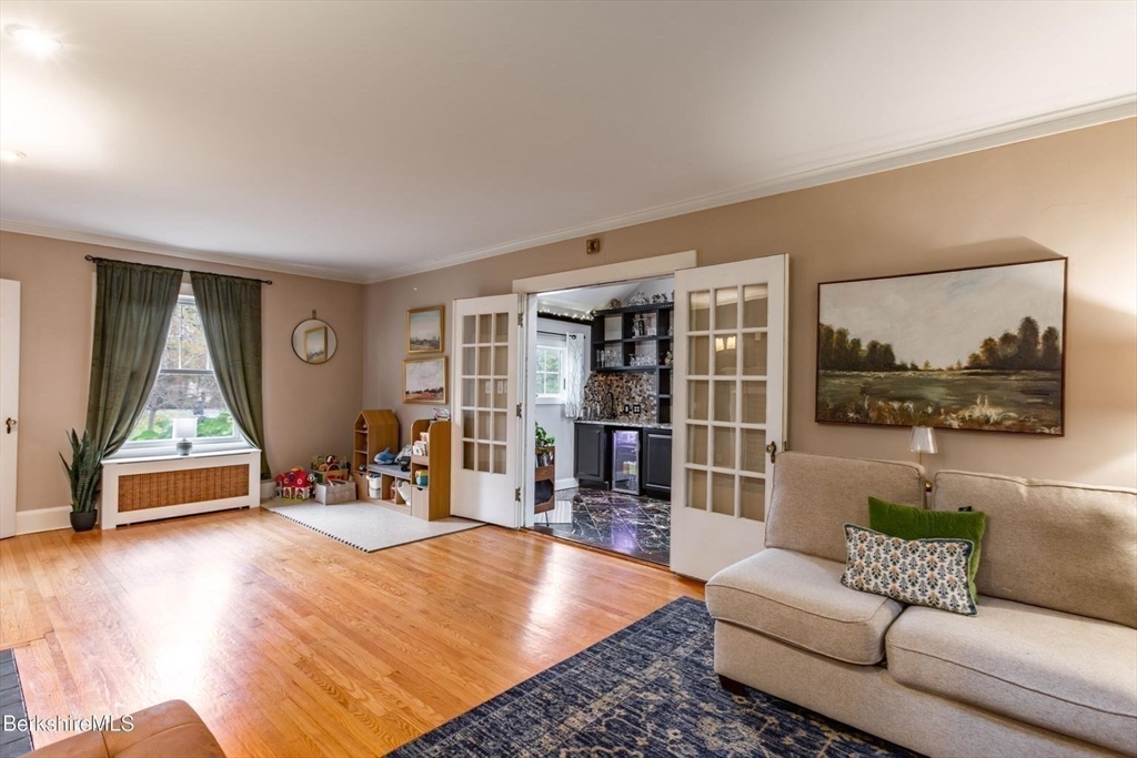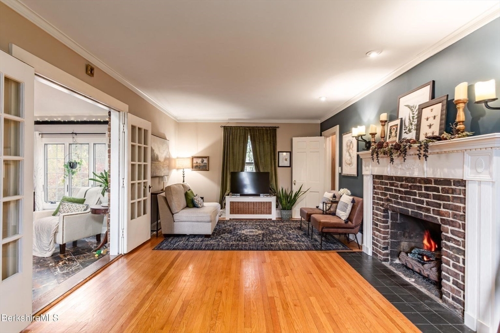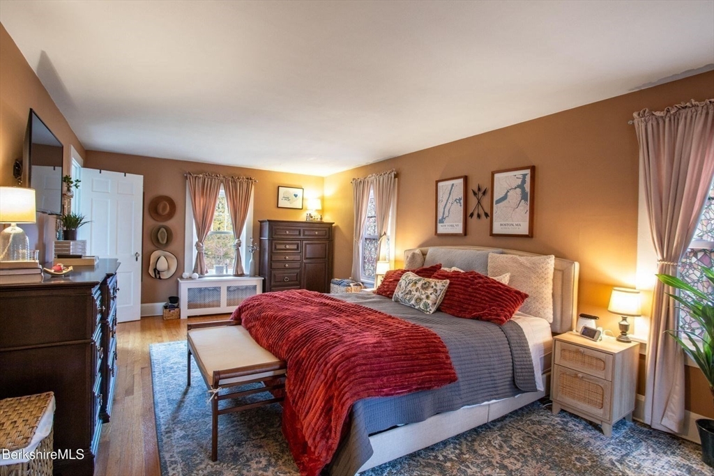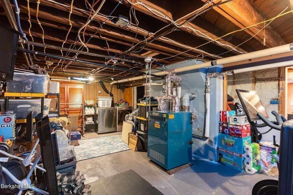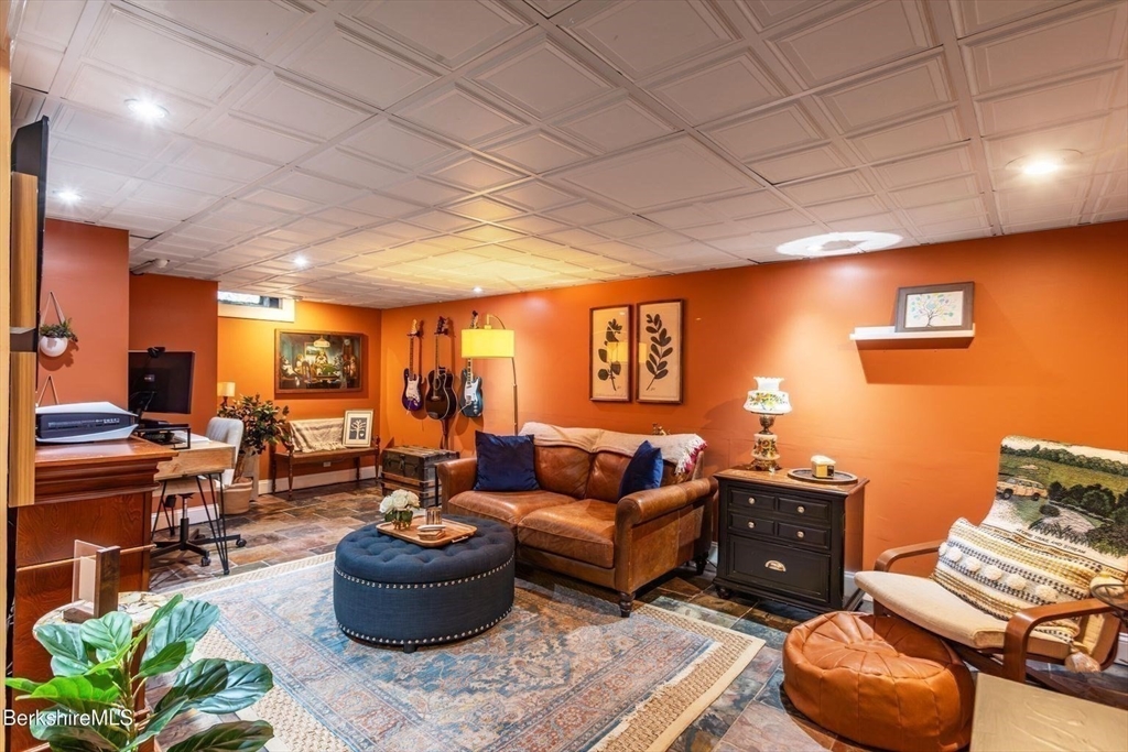 DEEDED LAKE RIGHTS to Onota lake with access to a private beach on Blythwood Drive. This unique Brick colonial home has many high end finishes and recent updates. The kitchen boasts a Wolf gas range, granite counter tops, an island, a new touch screen refrigerator (2023) new dishwasher, recessed lighting, plus ceiling height cabinets for tons of storage The living room has a gas fireplace creating a cozy ambience. Plus there is a library/den with marble floors and tons of storage. The primary bedroom is spacious with 2 closets. There are wood floors through out the home, new vinyl windows/roof (2023). The lower level is partially finished & has radiant heat for winter comfort. The outdoor space is wonderful for entertaining highlighted by a patio with pergola & brick fireplace.The backyard is fully fenced yard with a shed for storage. The driveway was paved in 2025