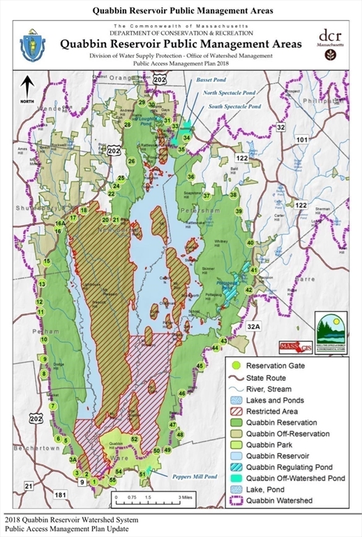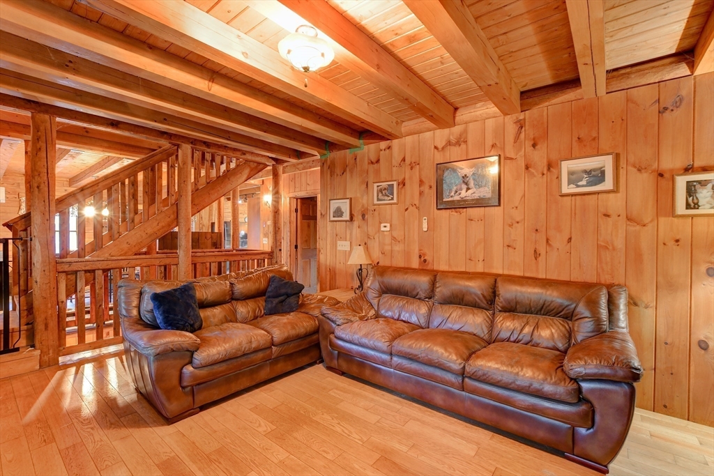 New to Market: RARE 13+ acres of private land near gate 41 of the Quabbin Reservoir, and surrounded by conservation land! Spacious Ward CEDAR log home is rustic and comfortable. This home offers so much, including the charming open kitchen/dining room with double wall ovens, farmer's sink, pellet stove. Enjoy the cozy living area with impressive stone- faced fire place or the old -fashioned front porch-perfect for times of quiet reflection or entertaining large group gatherings. You will love the warmth of radiant floor heat via Buderus oil burner under foot. Three roomy bedrooms include ample walk in closets and skylights! Your choice of FIRST FLOOR MAIN bedroom with neighboring bath, or 2nd floor with ensuite, jack n jill bath. Mini splits for A/C and heat supplementation (one up, one down). Central Vac. You'll find plenty of space for storage in the full basement. Hiking and wildlife are right out of your front door! Explore all that eclectic Petersham has to offer. Welcome Home