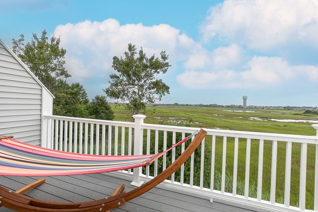 Every Day Feels Like a Coastal Getaway! Dive into seaside bliss near Salisbury Beach with this stunning END-UNIT townhouse - your ultimate peaceful retreat! Nestled in protected land on 3 sides, this home offers jaw-dropping, YEAR-ROUND MARSH VIEWS and a front-row seat to nature, migratory birds, sunrises and sunsets from two private decks—perfect for morning coffee, evening cocktails, a tranquil respite or lively gatherings. Inside, modern elegance blends with beachy charm - a bright, open living + dining area with hardwood floors throughout, a cozy gas fireplace + a sleek kitchen featuring granite counters + a beverage bar. Upstairs you'll find a laundry room and two spacious bedrooms, with en-suites, providing a tranquil space for work + rest. The primary suite features a private balcony + double closets. With ample storage, a two-car garage, secure garage utility room + storage, + central AC, this coastal haven offers luxury, comfort + convenience. Don’t miss this beachside gem!