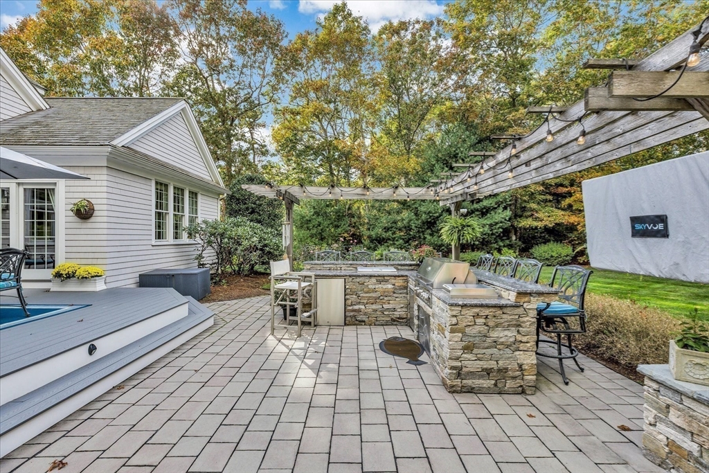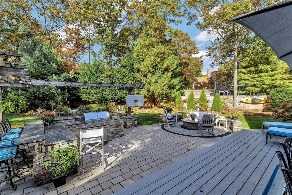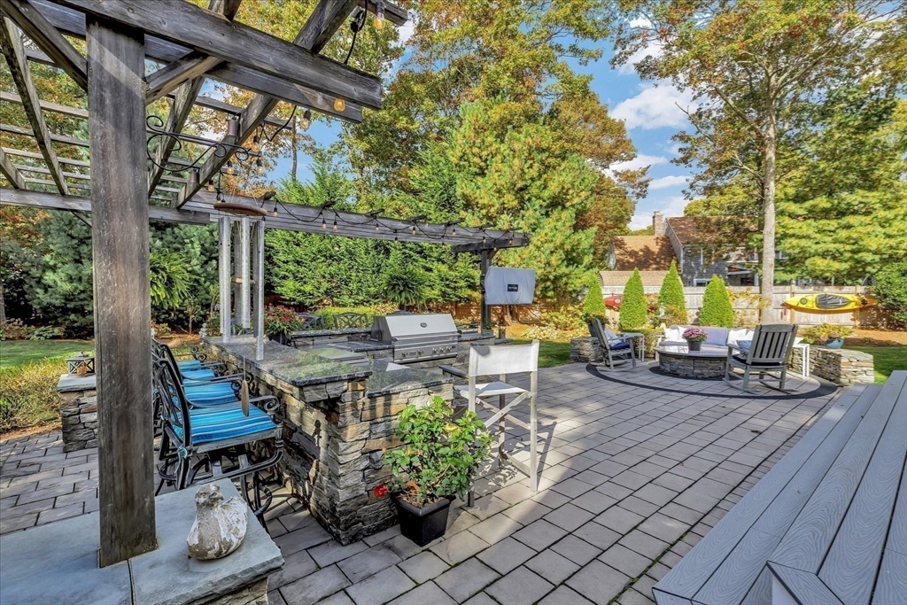 Nestled on a quiet cul-de-sac in Willowbend's Shoestring Bay neighborhood is a stunning contemporary colonial with tremendous street appeal enhanced by lushly landscaped grounds. Incredible interiors coupled with spacious outdoor living space make this majestic home a must see. This gracious residence is beautifully appointed with a light filled two story great room open to a new gourmet kitchen, a formal dining room, spacious study perfect for a home office, first floor master suite, 3 ensuite guest rooms upstairs and a large bonus room and bath over the 3 car garage.This custom designed 4200 sq. ft. home is further complimented by a fabulous outdoor entertaining area with stone kitchen, built in grille & bar and new deck (2023) for dining and lounging. In addition, a 1400 sq. ft. finished lower level built in 2015 provides additional space for family and friends complete with a family room, exercise room, large screen tv, dining area, bar, half bath and 1700 bottle wine cellar !