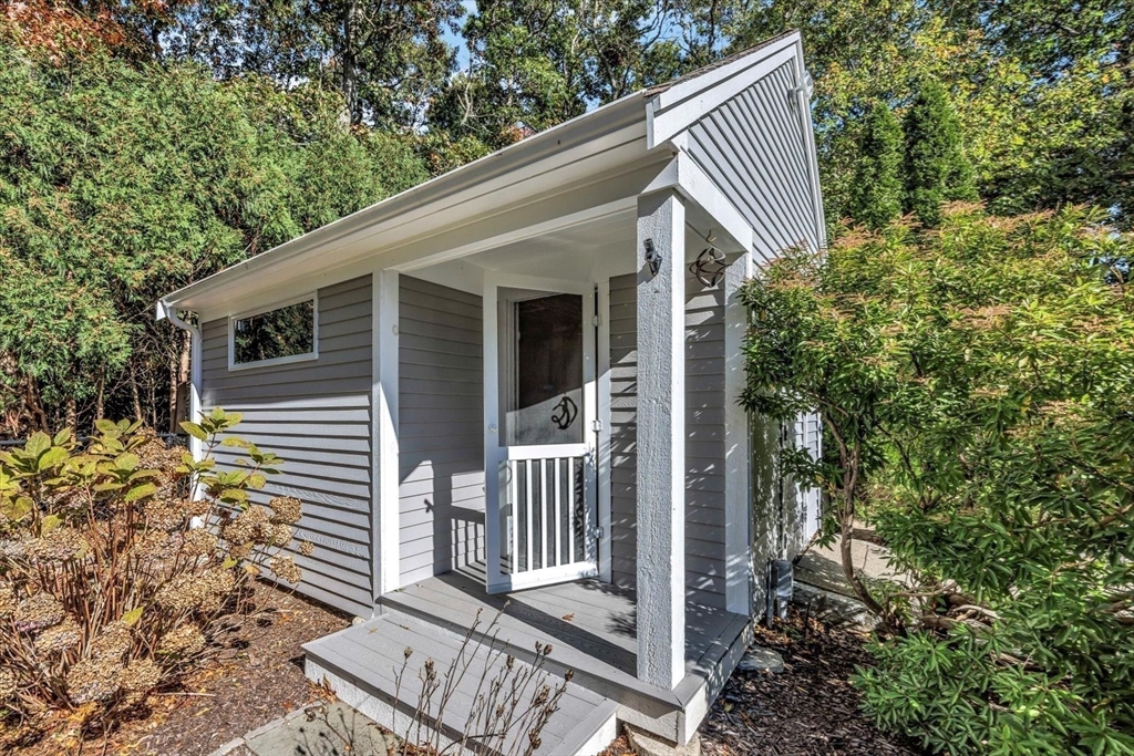 Welcome to this beautifully maintained 4 BR Cape-style home in desirable Teaticket! The open-concept 1st flr features a bright living room with hardwood floors and large windows, flowing seamlessly into a modern kitchen with center island, stainless appliances, and tile backsplash. Two 1st flr bedrooms and updated full bath with glass shower add convenience and comfort, with the possibility of one floor living. Upstairs, you’ll find two spacious bedrooms with generous closet space and a 2nd full bath.. The finished lower level provides flexible living or office space, complete with a cozy gas stove. Step outside to enjoy a low-maintenance deck overlooking a private, fenced yard with a firepit and versatile, heated outbuilding—ideal for possible studio or home office. Newer windows, alarm system, 2nd shed, generator connection, and an inviting layout make this move-in ready home a standout. Located near Falmouth’s beaches, shops, and dining, this property offers classic Cape Cod living.