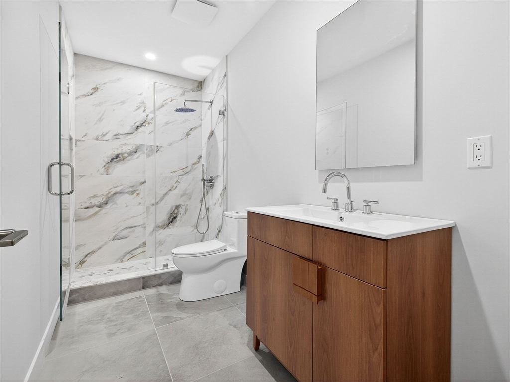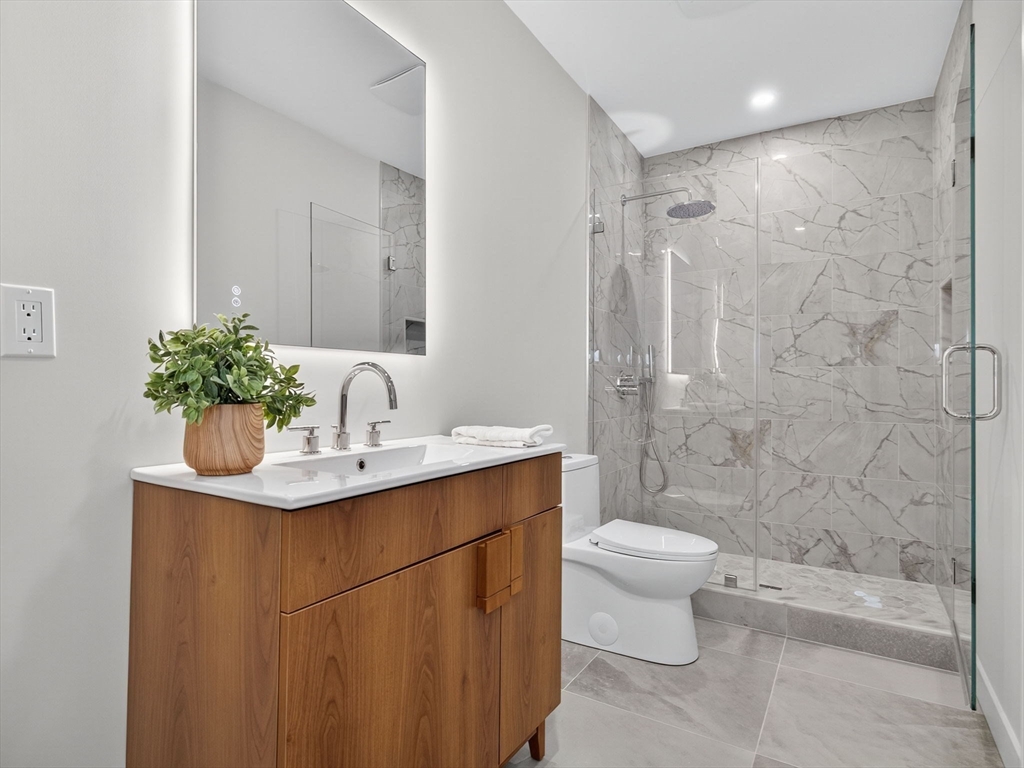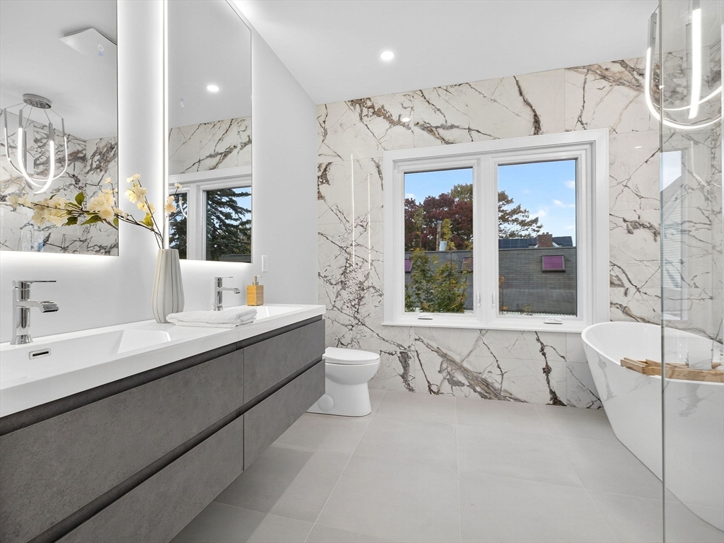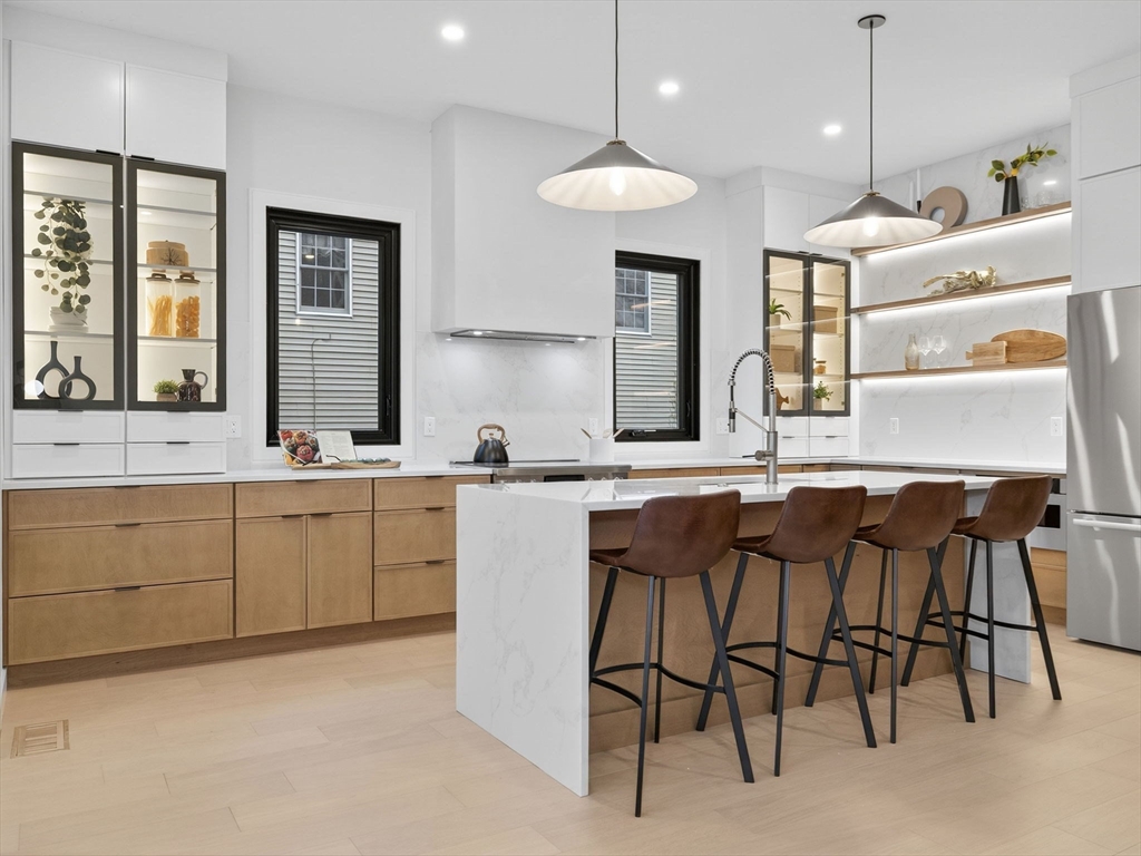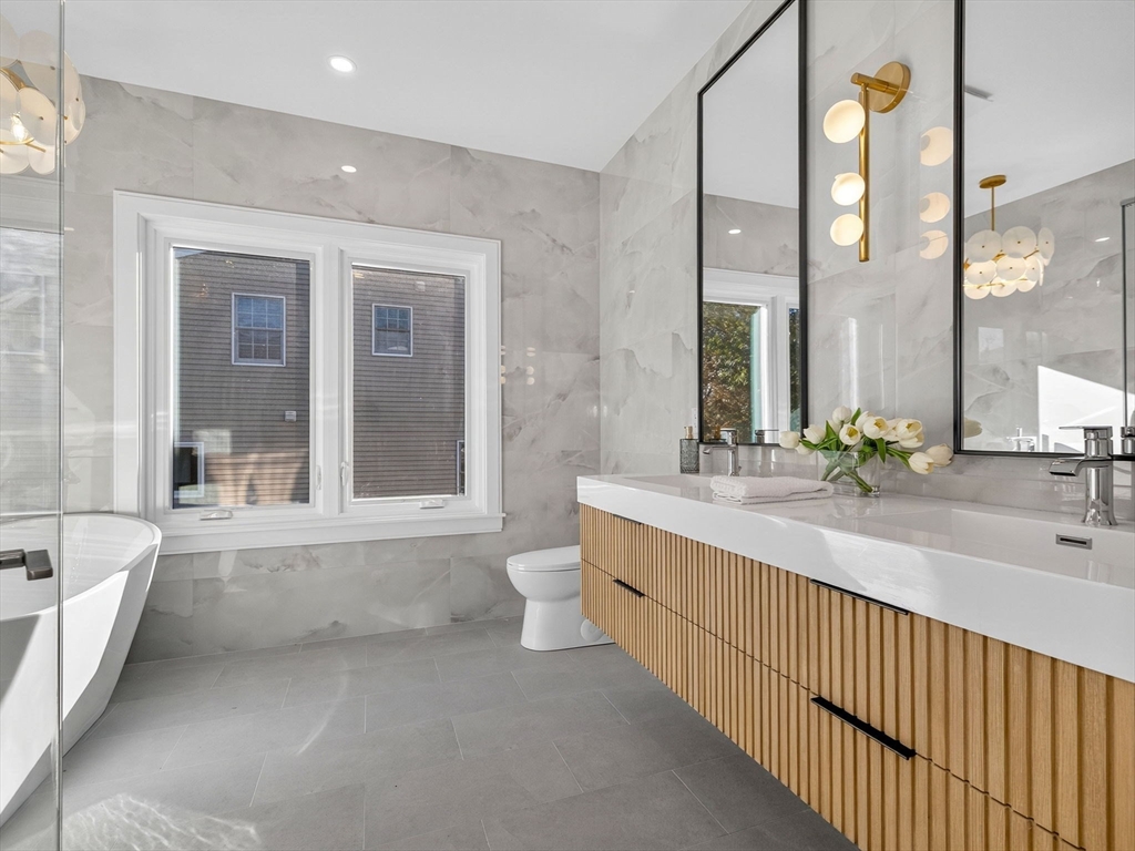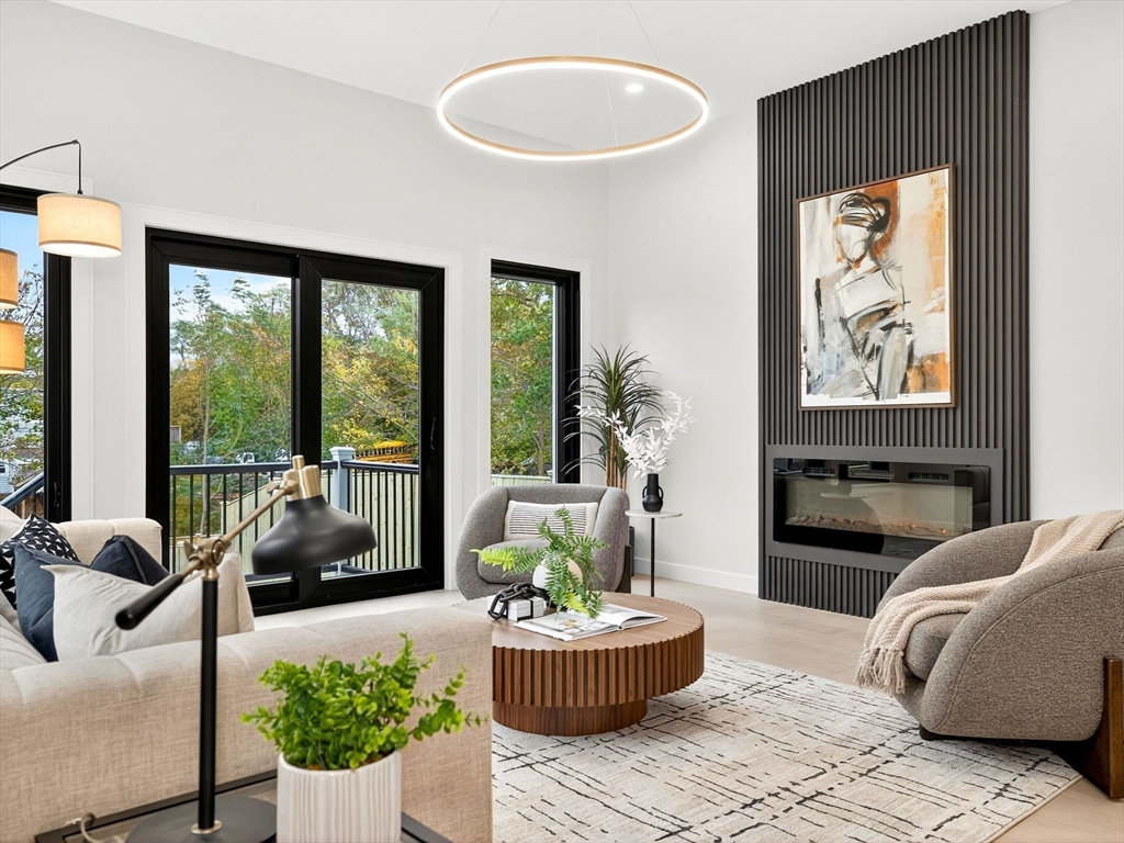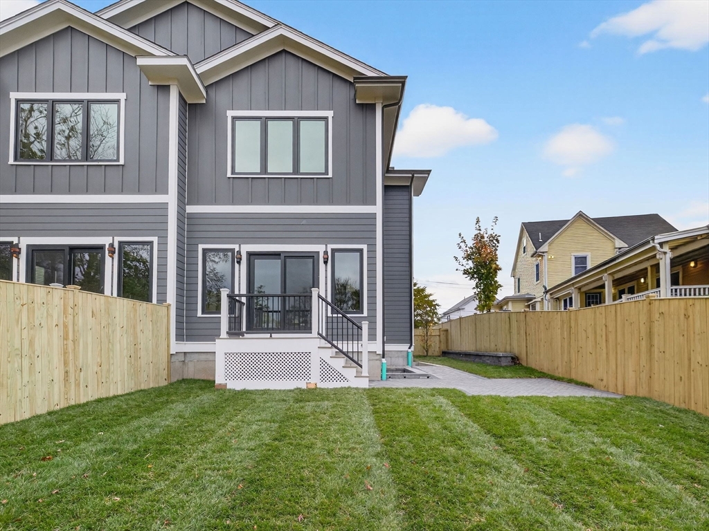 Newly constructed 2-family townhouse building in a prime Newton location. Each unit offers 4 bedrooms and 3.5 baths with a bright open layout, designer kitchen with custom cabinetry, and Bosch appliances. Living and dining areas open to a private fenced yard, which includes a lower naturalized woodland section that will continue to evolve into a serene outdoor retreat. Upstairs includes two spacious bedrooms and a full bath, plus a primary suite with walk-in closet and spa-like bath. Finished walkout lower levels add a 4th bedroom, full bath, and flexible family room/home office/gym space with a kitchenette. Additional features include EV-ready garages, 2-zone HVAC, all-electric appliances, custom closets, and solar-ready setup. Ideal for multi-generational living, owner-occupants seeking rental income, or investors. Convenient to top-rated schools, shops, parks, and commuter routes.