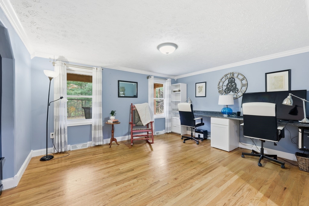 Welcome home to this beautifully maintained Cape-style home nestled in one of Ludlow’s well established neighborhoods. 4 bedrooms and 3 full bathrooms, this home blends comfort, charm, and modern convenience. The eat-in kitchen features granite countertops, a large center island, stainless steel appliances, and a walk-in pantry. French doors from both the kitchen and family room open to a deck, The 1st floor office provides a functional space for remote work or study, a formal dining room and two staircases. Upstairs, enjoy 2nd-floor laundry and 4 bedrooms, a Jacuzzi tub in the en-suite bath—your personal retreat after a long day! Step outside to a large patio with a fire pit, perfect for entertaining. A welcoming front porch adds to this homes curb appeal and charm! *****No showings until first open house on Sunday November 2, 11-1***