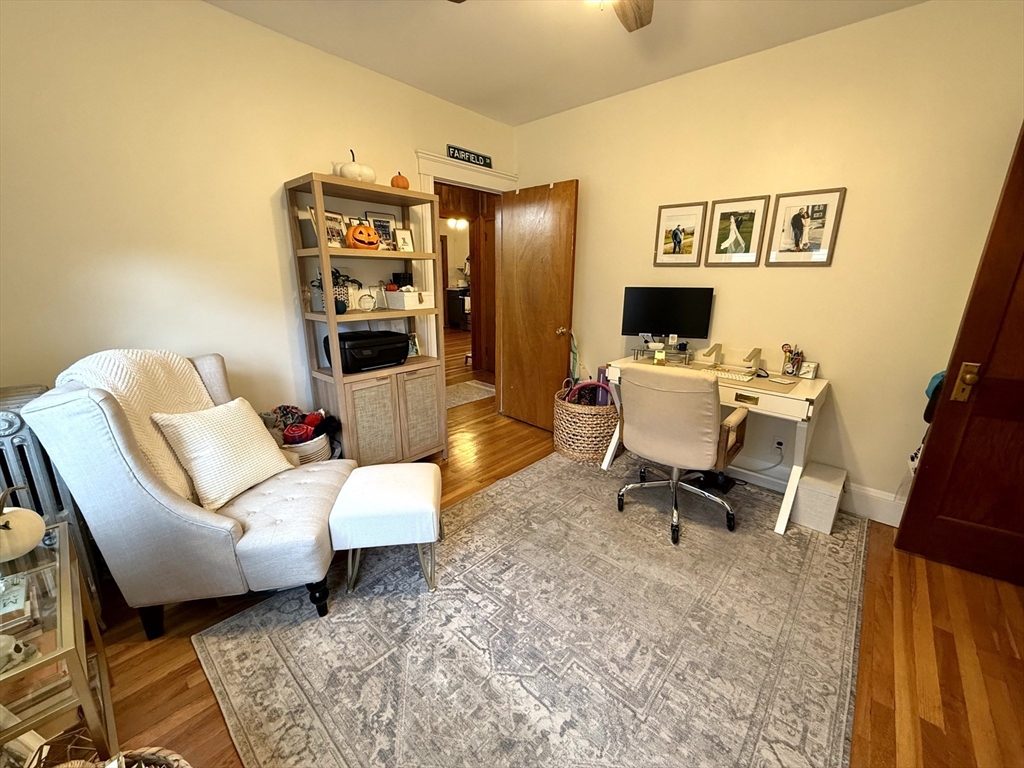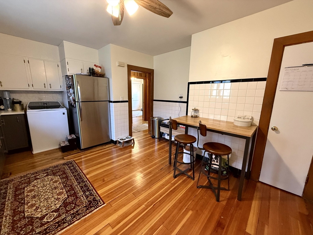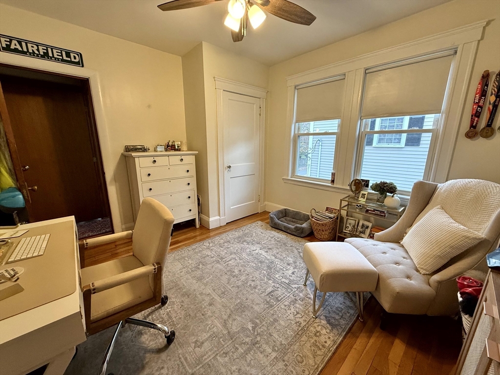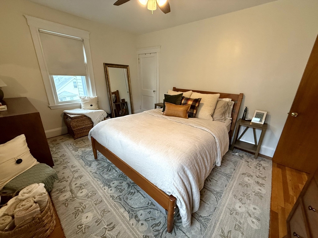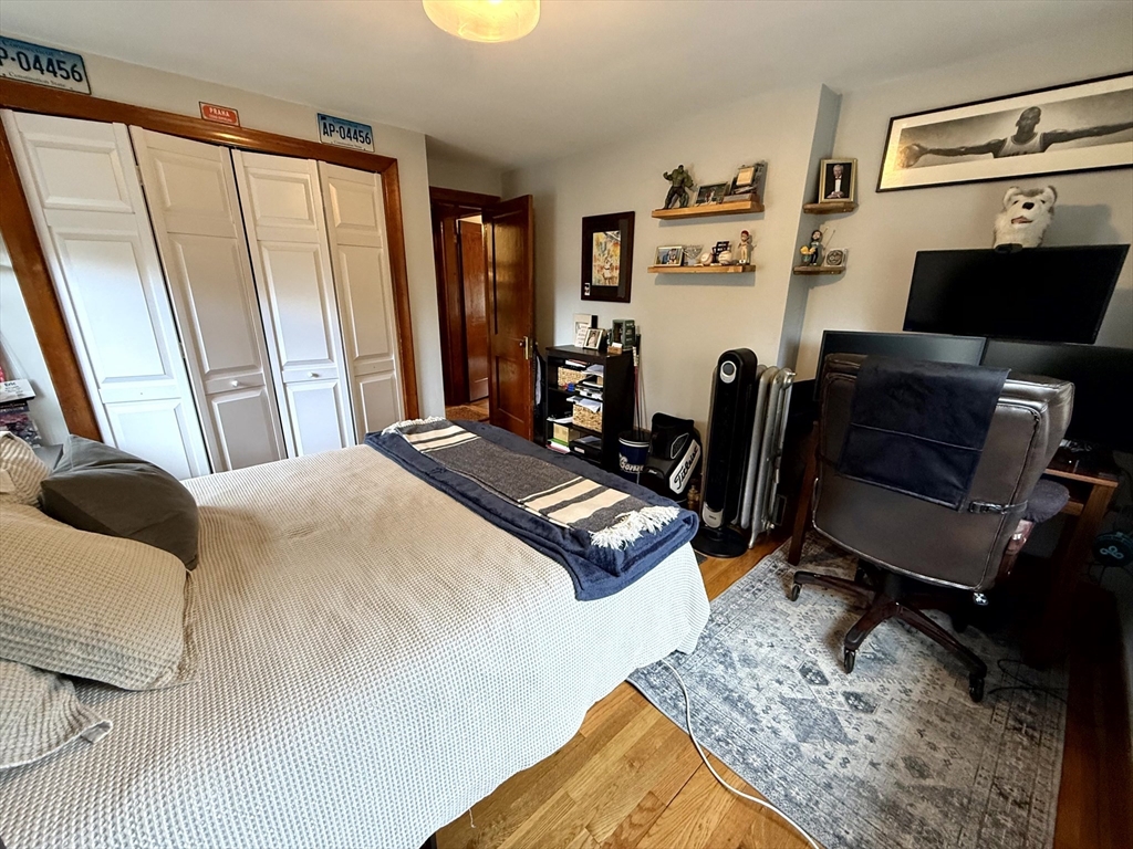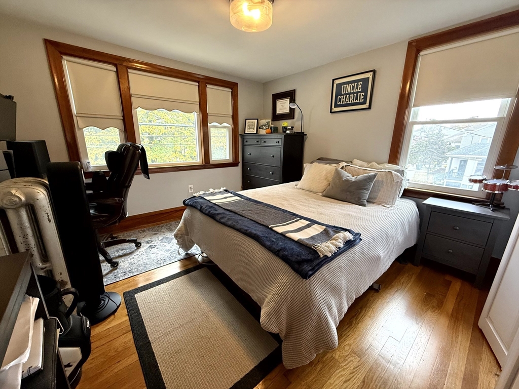 Available January 1st! Bright and inviting 3(or 2 with office) bedroom, 1 bathroom apartment on the second floor of a well-maintained two-family home offering flexible living options - use as a full 3 bedroom OR configure as 2 bedrooms with home office to suit your needs. This sun-filled apartment features beautiful hardwood floors throughout and an updated kitchen equipped with stainless steel appliances. The updated bathroom adds modern comfort, while convenient in-unit washer and dryer eliminates laundry day hassles. Enjoy your morning coffee in the charming rear sunroom overlooking the shared backyard, perfect for relaxation and bringing the outdoors in. Abundant natural light flows throughout the home, creating a warm and welcoming atmosphere. One assigned parking space provides convenient off-street parking. This unit combines modern updates with practical amenities in a great residential setting. Pets negotiable. Required up-front: First month's rent and security deposit.