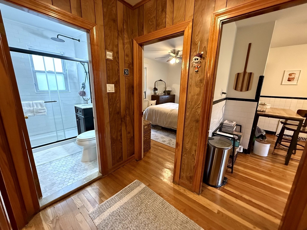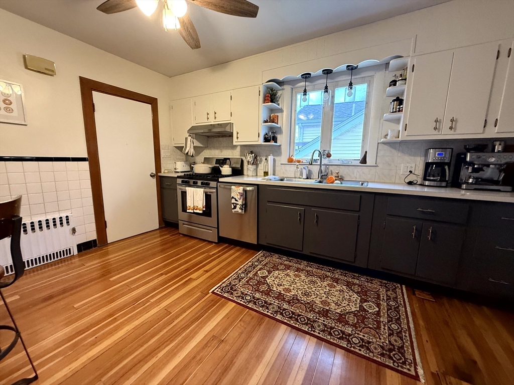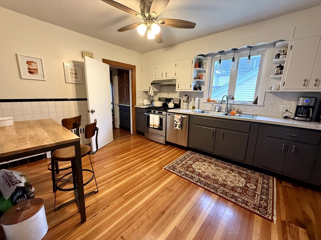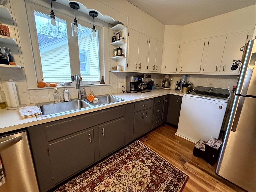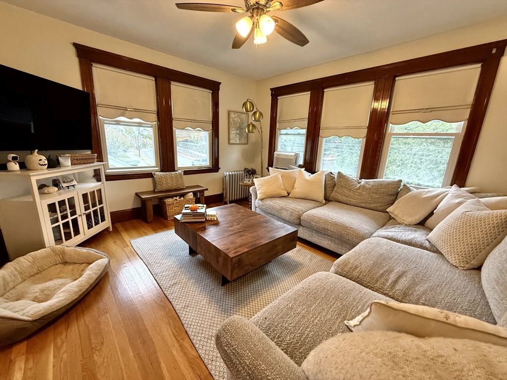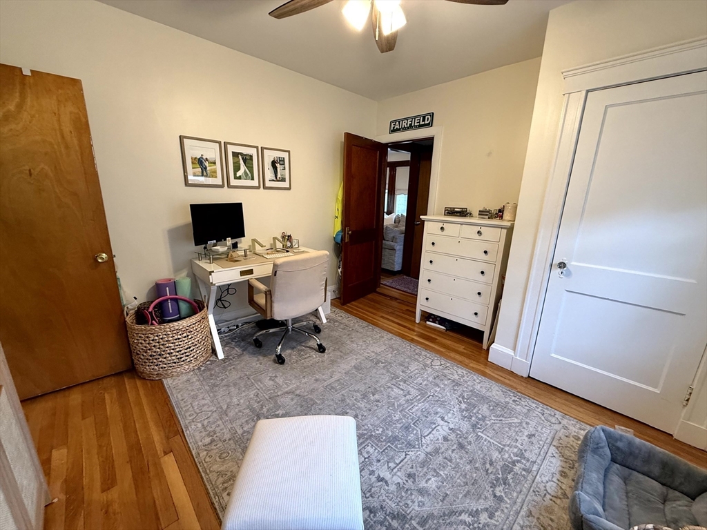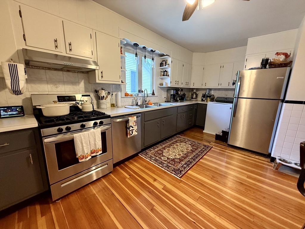 Available January 1st! Bright and inviting 3(or 2 with office) bedroom, 1 bathroom apartment on the second floor of a well-maintained two-family home offering flexible living options - use as a full 3 bedroom OR configure as 2 bedrooms with home office to suit your needs. This sun-filled apartment features beautiful hardwood floors throughout and an updated kitchen equipped with stainless steel appliances. The updated bathroom adds modern comfort, while convenient in-unit washer and dryer eliminates laundry day hassles. Enjoy your morning coffee in the charming rear sunroom overlooking the shared backyard, perfect for relaxation and bringing the outdoors in. Abundant natural light flows throughout the home, creating a warm and welcoming atmosphere. One assigned parking space provides convenient off-street parking. This unit combines modern updates with practical amenities in a great residential setting. Pets negotiable. Required up-front: First month's rent and security deposit.