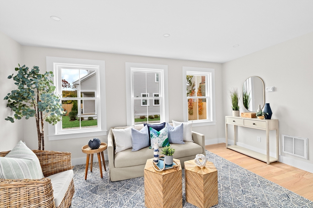 Welcome to Scituate's newest and most exciting new construction development, Greenbush Commons. This charming enclave features 4 beautifully designed, free standing cottages, each offering the perfect blend of coastal elegance and modern comfort. These 2 bedroom, 2.5 bath homes have 2 options for a primary bedroom - first or second floor. The open floor plan is light and bright, showcasing exceptional coastal finishes, kitchen with stainless appliances, vent hood, quartz countertops and island, ideal for both relaxing and entertaining. Second floor den or office space and a full unfinished basement with 8 foot ceilings. Enjoy the outdoors on your comfortable farmers porch overlooking beautifully landscaped green space. Each home also includes two dedicated parking spaces for added convenience. Located in the desirable Greenbush area, you'll be just moments from the commuter rail, walking trails, and a variety of restaurants and coffee shops, making this the perfect spot to call home!