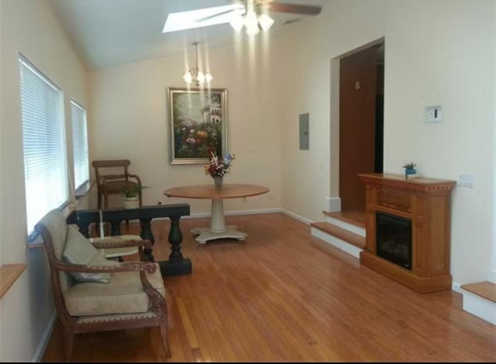 Spacious and bright upper-level duplex available for rent! This beautiful home features hardwood floors throughout, a large open living and dining area with cathedral ceilings, skylights, and oversized windows that fill the space with natural light. The modern kitchen is equipped with granite countertops and ample cabinet space. The main level offers a generous primary suite with double closets and a private full bath with a double vanity. An additional full bathroom is also located on this level. Upstairs, you’ll find two more bedrooms—perfect for guest rooms, an office, or extra storage. Enjoy a private back patio for outdoor relaxation. Two tandem parking spaces are included. Fantastic location near Coolidge Square, restaurants, shops, and public transit. Ready for 11/1 move-in!