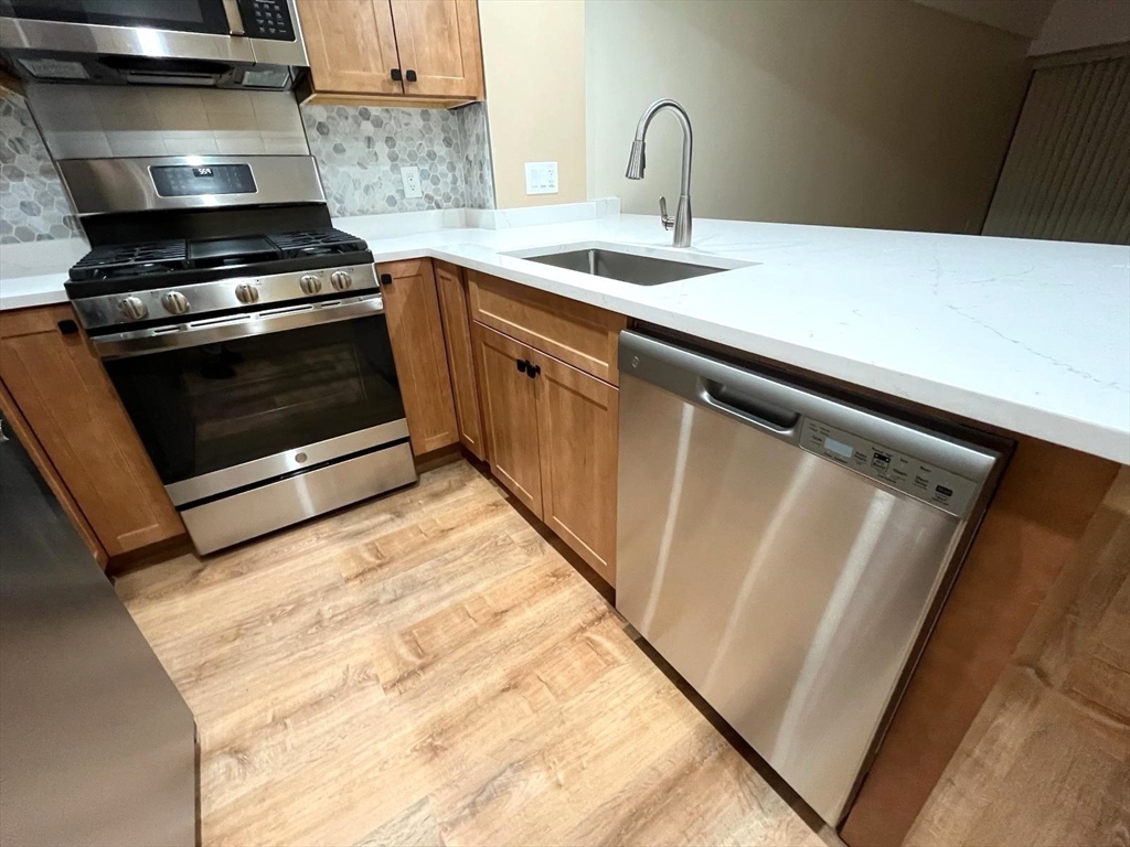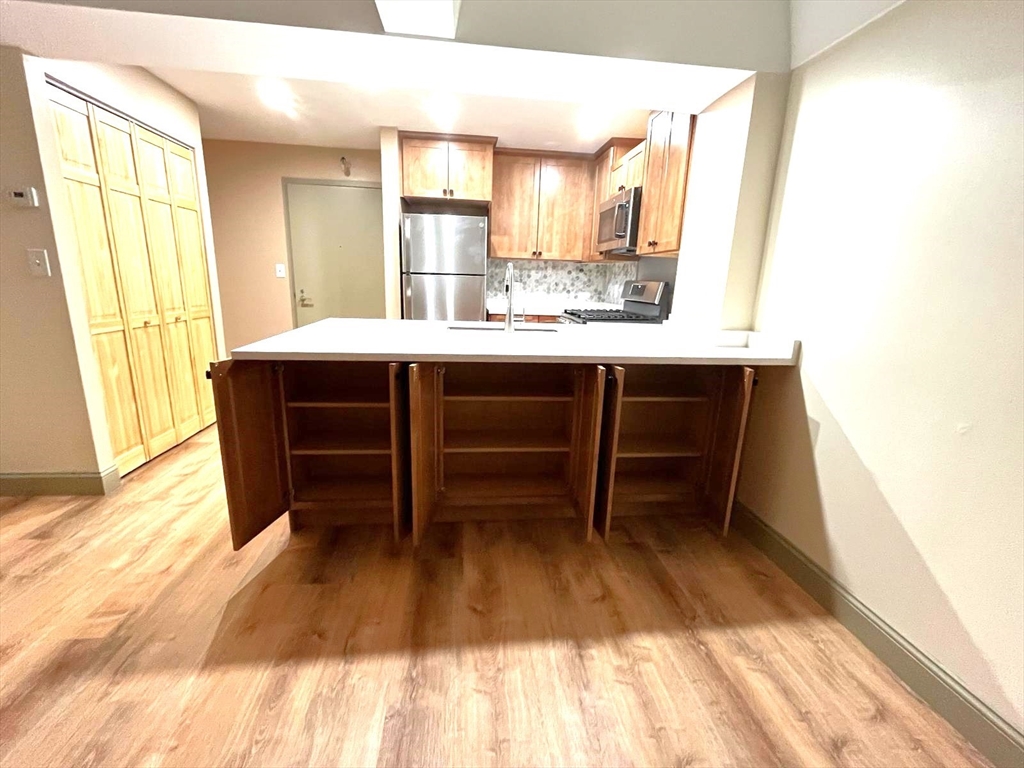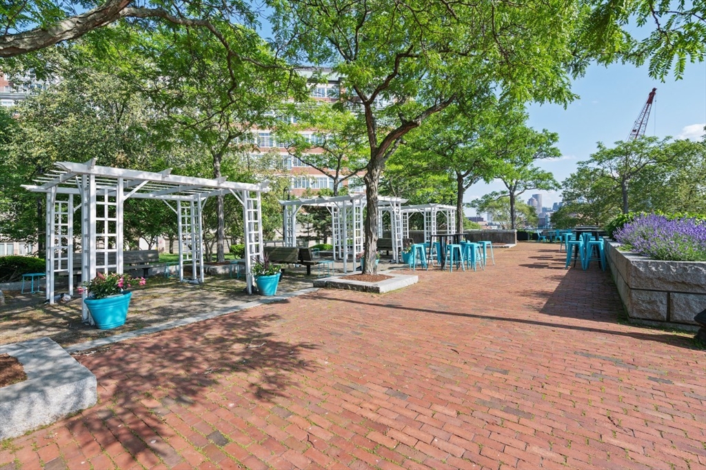 Parris Landing - Studio w/valet parking - This fully renovated designer condominium is exceptional in this luxury complex. This home offers an open kitchen with stainless steel appliances enhanced with beautiful wood cabinets and a granite breakfast bar w/additional cabinet space. Two large custom designed closets that allow for extra storage. Fabulous lighting and wood floors throughout. Large living space that features an aesthetic granite "Arch" window that reveals the history of the Navy Yard. A beautifully tiled new bath and shower. Heat & Hot water included in the rent. Tenant to pay electric/cable/internet. The outstanding amenities include: outdoor heated pool, gym w/Peleton Equipment, 24i-hour concierge, professional management on site, Community Room, Amazon lockers and one valet parking space in a garage that has EV stations. Easy access to major highways, water shuttle to Financial District, Partners Bus and Logan Airport. This home is ready for 1/1/2026 move-in.