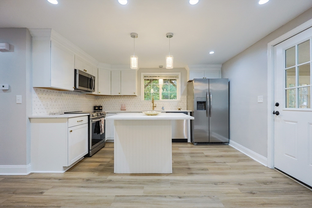Home Sweet Home! Come see this beautifully remodeled 4 bed, 2 bath cape and move in just in time for the holidays! Updates throughout including a freshly painted interior, new luxury vinyl plank floors. new lighting fixtures, updated kitchen with stainless appliances, quartz counters, and so much more! Step into the open and bright living room with cozy fireplace that overlooks a beautiful, spacious kitchen. A bonus room off the kitchen is also a great feature! Upstairs offers spacious bedrooms with walk-in closets and juliet balconies. This home offers impressive, wrap-around decking, perfect for entertaining! A full unfinished walkout basement offers so much potential to be finished for extra living area as well! A huge, half-acre well manicured lot is icing on the cake! Schedule your showing to see this property today. Private showings to start immediately.