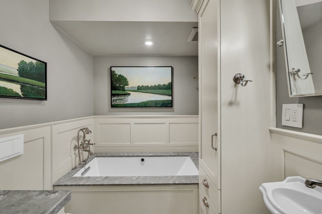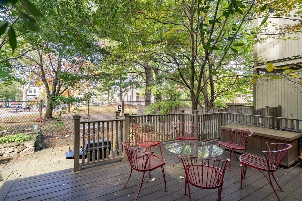 Fully furnished, utilities included! Welcome to this classically designed home, perfect for a sabbatical or a full/partial academic year in Cambridge! Tucked away in a leafy residential area, this charming unit boasts 3 bedrooms, 2 full baths, separate formal living and dining rooms, a private library w/wet bar and gas fireplace, plus a sunny office area or extended living space. Two bedrooms with queen beds and third bedroom to be furnished for tenant's needs. Gourmet kitchen with convection cooking, includes an additional sink/prep island, small appliances, and cook and dishware for your convenience. Enjoy central heat/AC, in-unit W/D, concealed surround sound, heated bath floor on main level and whole house water filtration. Neighborhood gourmet and traditional food shopping, cafes, boutiques and entertainment. Access to bike path, T buses and trains for exploring Cambridge and beyond! Flexible start/end dates. No smoking or pets. Please have excellent credit and references.