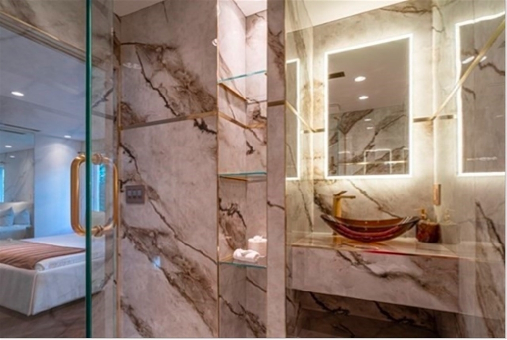 2.99% FINANCING AVAILABLE. Welcome to your dream retreat, where luxury meets functionality in the ultimate bachelor oasis. This stunning house boasts an impressive design, featuring a top-tier bespoke interior that redefines sophisticated living. Step inside and be greeted by the striking black marble that sets a tone of elegance throughout the space. Each detail has been meticulously crafted, with whiskey barrel herringbone floors framed in champagne metal offering a unique blend of warmth and opulence. At the heart of this home is an expansive 26x42 heated saltwater gunite pool, gleaming under the sun's rays in the morning and radiating a tranquil glow during moonlit evenings. Imagine hosting friends by the pool or enjoying a quiet night under the stars, all from the comfort of your Home.This property is not just a house—it's a lifestyle.