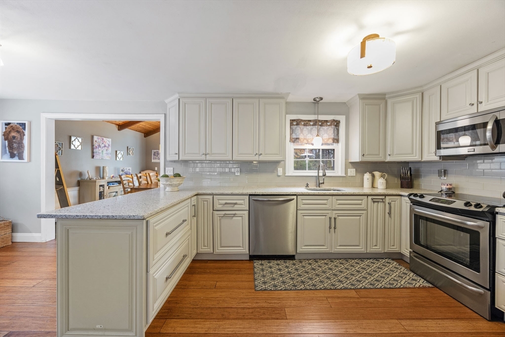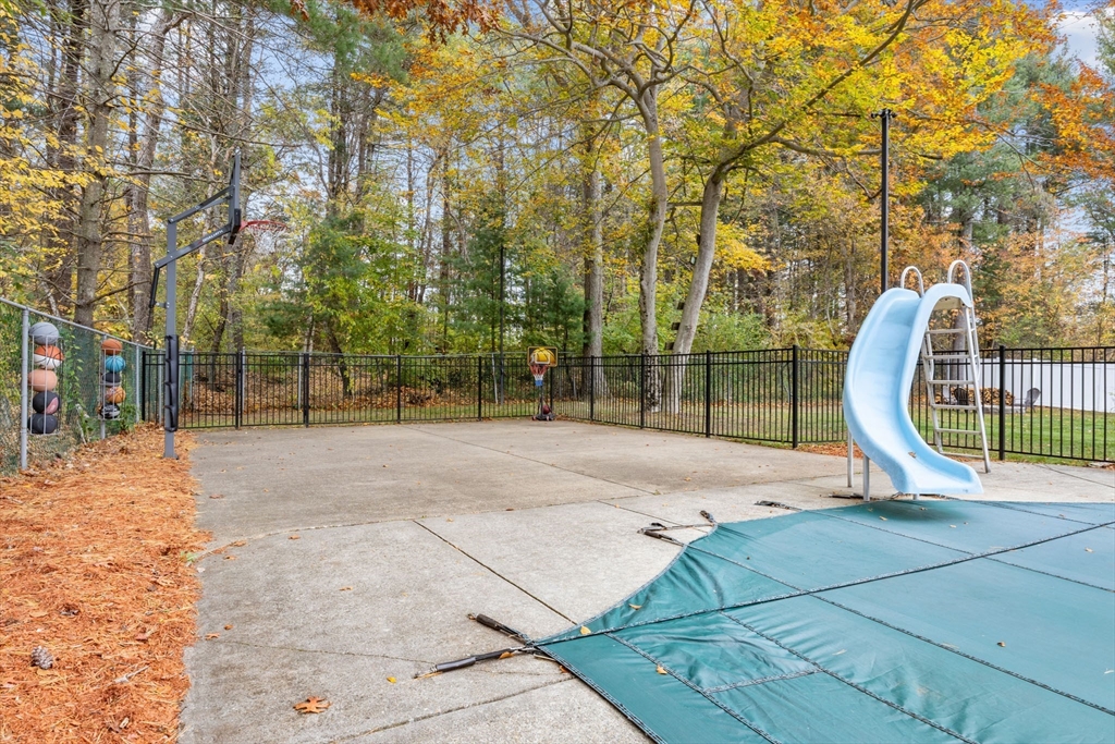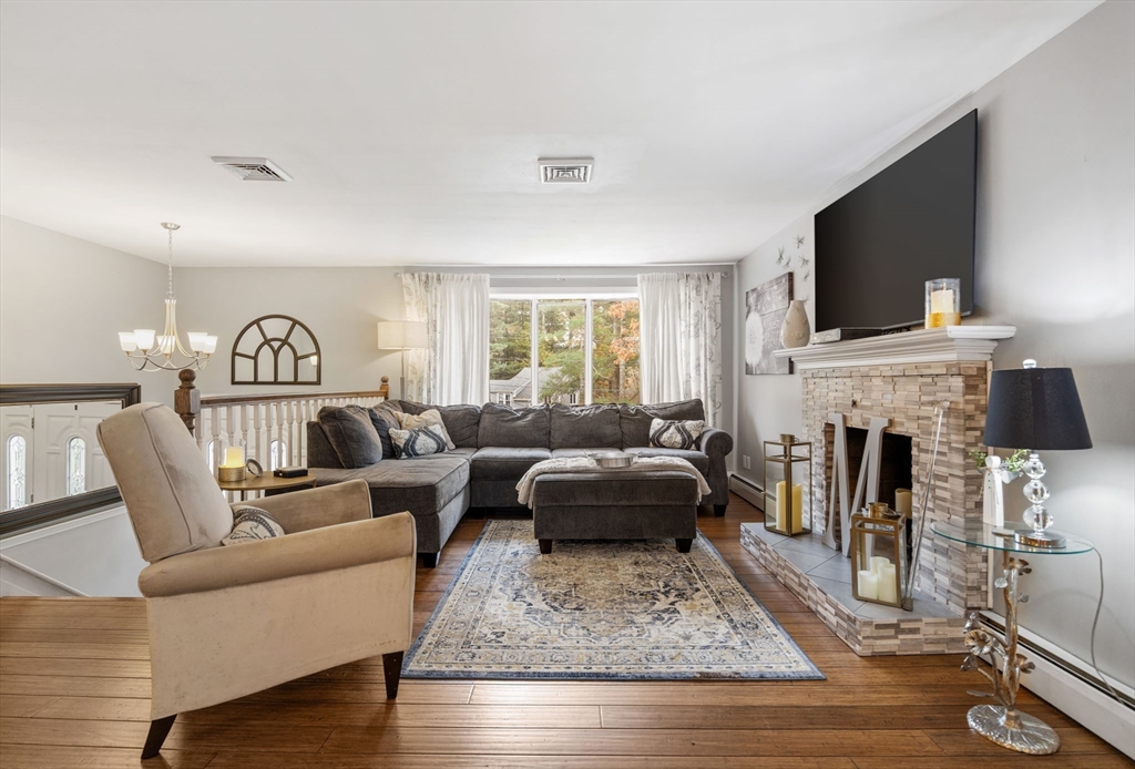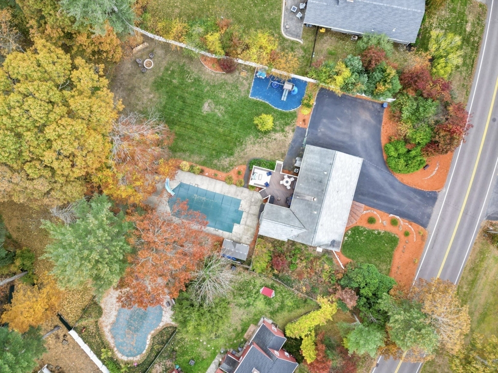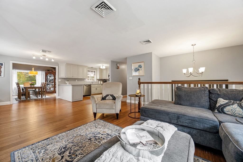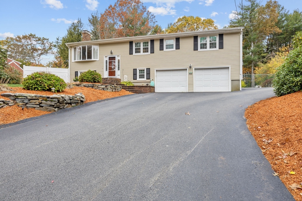Terrific Bridgewater location! This oversized raised ranch offers almost 2,300 sq ft of living space on a beautiful half-acre lot. The large backyard is perfect for entertaining with an in-ground pool & basketball court. Inside, enjoy an updated kitchen with granite countertops & stainless steel appliances, gorgeous hardwood floors throughout, & an open floor plan featuring a cozy living room with fireplace, a dining room with a gorgeous wood-vaulted ceiling with French doors leading to a maintenance-free deck. The main bath is beautifully updated with a tiled shower, & the spacious primary bedroom includes an en suite half bath. Hardwood floors lie beneath ALL upstairs carpeting. The finished lower level offers a family room, bonus room, a home office, & a full bath with direct access to the 24x27 two-car garage...ideal for multi-generational living, a young adult suite, or live-in au pair. A warm & inviting home offering space, comfort & endless possibilities!