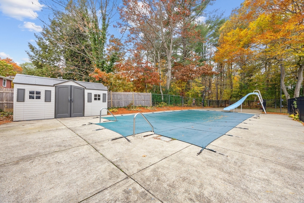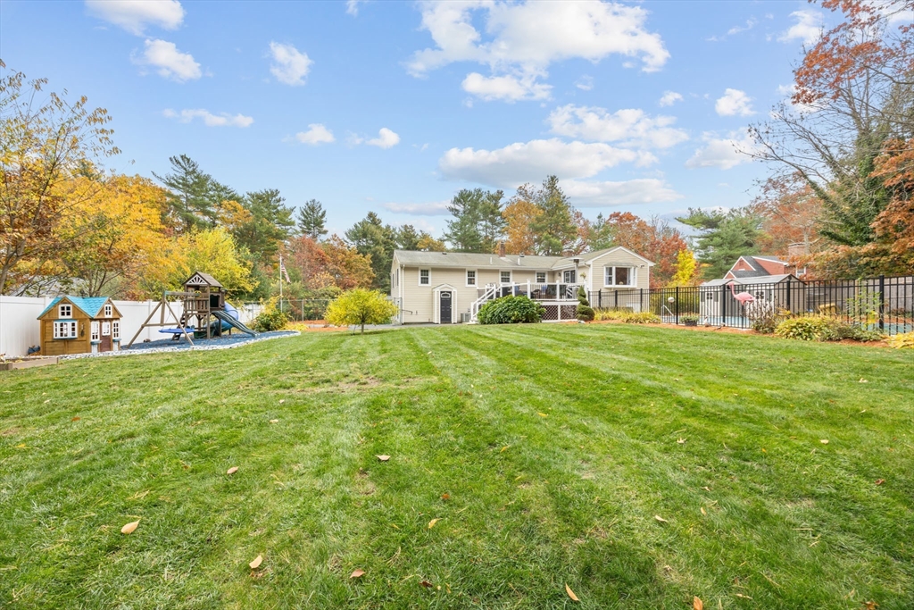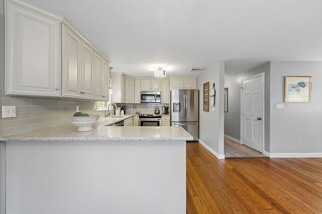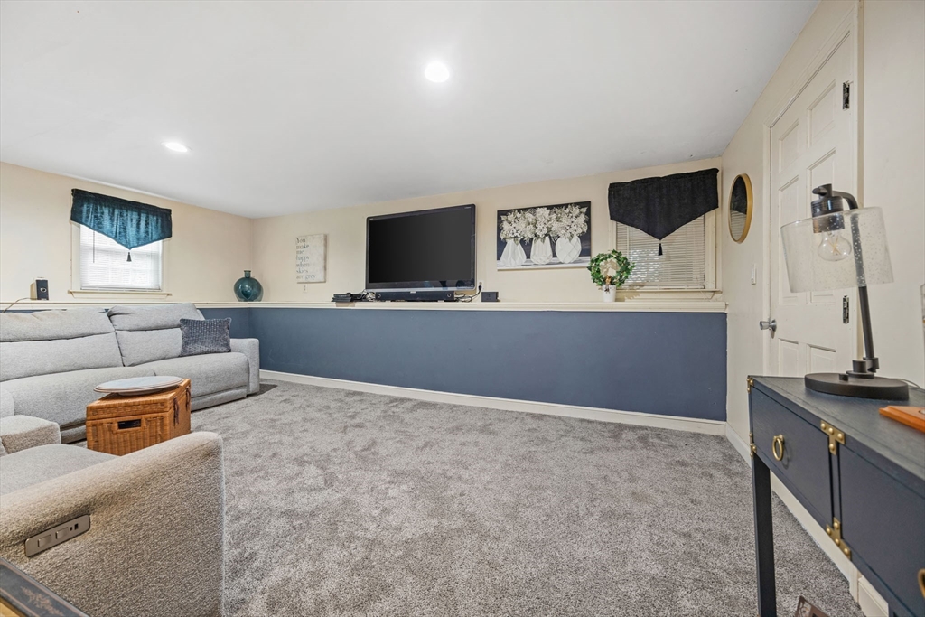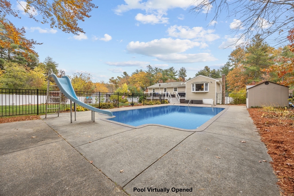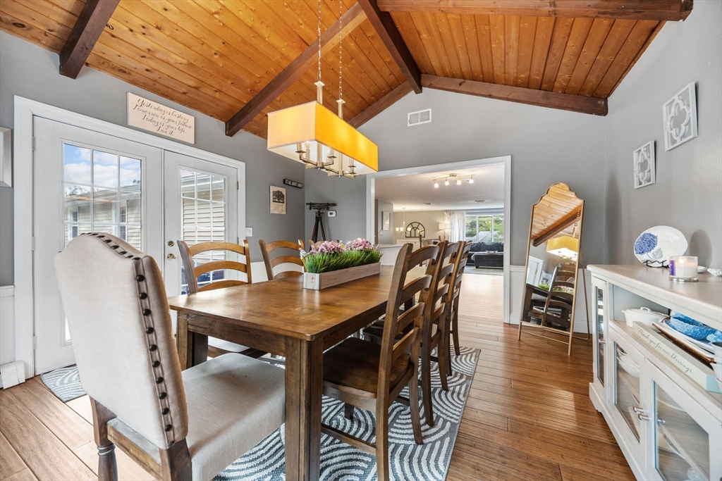 Terrific Bridgewater location! This oversized raised ranch offers almost 2,300 sq ft of living space on a beautiful half-acre lot. The large backyard is perfect for entertaining with an in-ground pool & basketball court. Inside, enjoy an updated kitchen with granite countertops & stainless steel appliances, gorgeous hardwood floors throughout, & an open floor plan featuring a cozy living room with fireplace, a dining room with a gorgeous wood-vaulted ceiling with French doors leading to a maintenance-free deck. The main bath is beautifully updated with a tiled shower, & the spacious primary bedroom includes an en suite half bath. Hardwood floors lie beneath ALL upstairs carpeting. The finished lower level offers a family room, bonus room, a home office, & a full bath with direct access to the 24x27 two-car garage...ideal for multi-generational living, a young adult suite, or live-in au pair. A warm & inviting home offering space, comfort & endless possibilities!