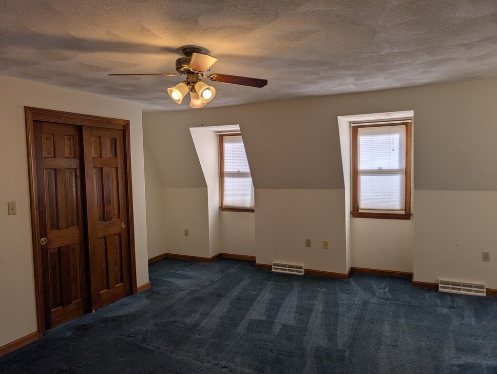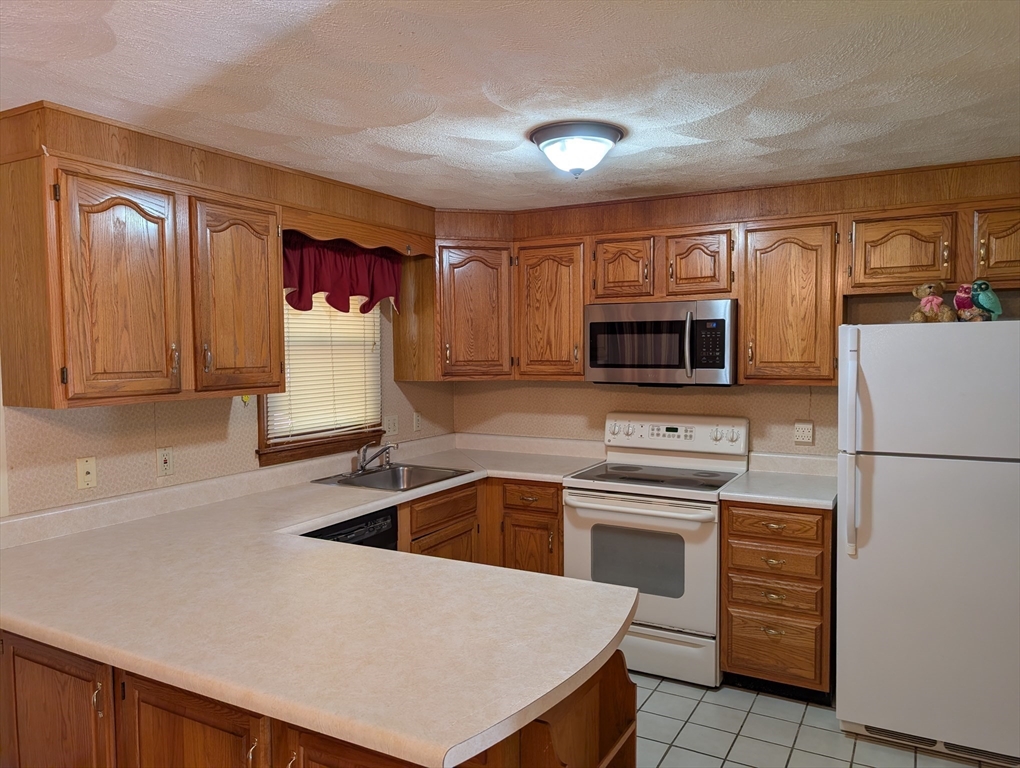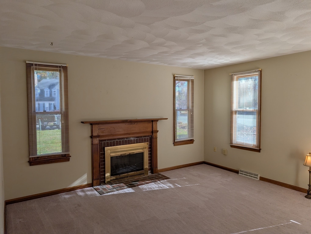 The only unit in Williamsburg II on the market at this time. Great sun filled end Gambrel unit. This unit boasts six rooms, to include formal living room with a fireplace, dining room with hardwood floors, light oak kitchen with ceramic flooring, two generous size bedrooms, one full and one-half bath both with ceramic flooring also. Quality finished lower level with family room and ample storage space. All appliances convey with the unit. Hot water heater just installed prior to coming on the market. Complex offers swimming pool, tennis courts and walk/jog trails along the lovely Merrimack River so you can watch the boats go by. People also use them during winter months for cross country skiing. Being in Williamsburg II means lower condo fees and no flood insurance required. Vacant and ready for new owners!