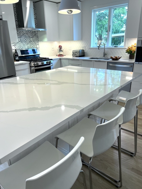 *FULLY FURNISHED*** Bright & sunny 3-bed, 2.5-bath townhouse in prime West Medford! This spacious 3-level home features hardwood floors, sun-filled living & dining areas, and an open kitchen with quartz countertops, stainless steel appliances, and a large island with seating for six: perfect for entertaining. Fully renovated in 2021, it includes modern finishes throughout. The fully finished basement offers flexible space for a playroom, gym, guest room, or office, plus a dedicated laundry room with washer & dryer. Enjoy a private deck, fenced backyard, and a 2-car garage with direct access to a mudroom: ideal for New England winters. Spacious private deck and fenced backyard, perfect for kids, pets, or relaxing outdoors. Just steps to the commuter rail (1 stop to Boston/North Station), close to Tufts University, ISB, Mystic River, parks &major routes. Approx. 2,200 sq ft of living space across three levels: the perfect blend of modern style, comfort, and location! Available 12/13/2025