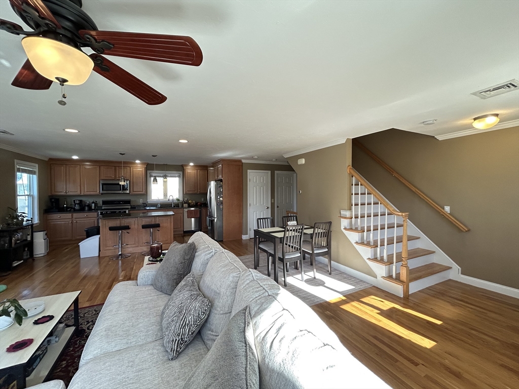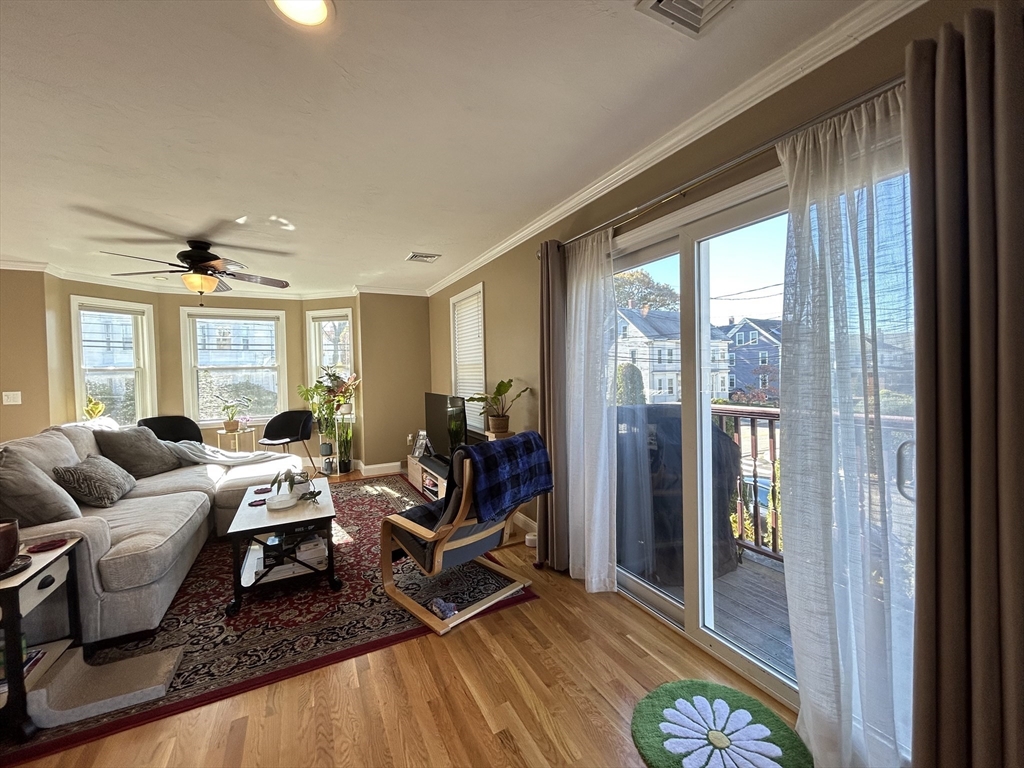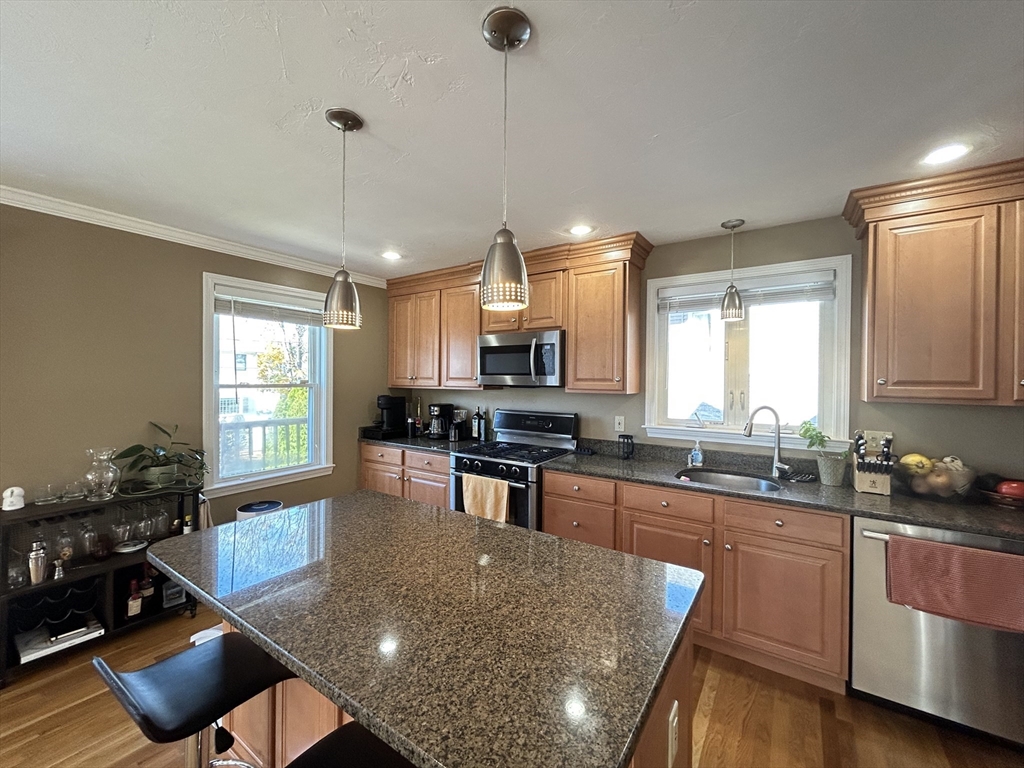 Available 1/1/2026! Sunny, sparkling, and spacious 2005 construction townhouse conveniently located near public transportation, parks, and Moody St shops and restaurants. This home features hardwood floors throughout, an open floorplan with a large kitchen with granite countertops and stainless appliances, which opens to a sun-filled living/dining area with a private balcony. The upper floor has generous-sized bedrooms with plenty of closet space. Additional features include central air conditioning (operated by a NEST system) in-unit laundry facilities on the bedroom level, plenty of storage space in the attic, and an oversized 2-car garage. Rent includes laundry facilities, landscaping, and parking. Tenants will pay for snow removal, gas, electricity, water/sewer, and Internet. A maximum of two small pets (under 25 lbs) will be considered. Move-in costs are: First month's rent, Last month's rent, and Security deposit ($3600).