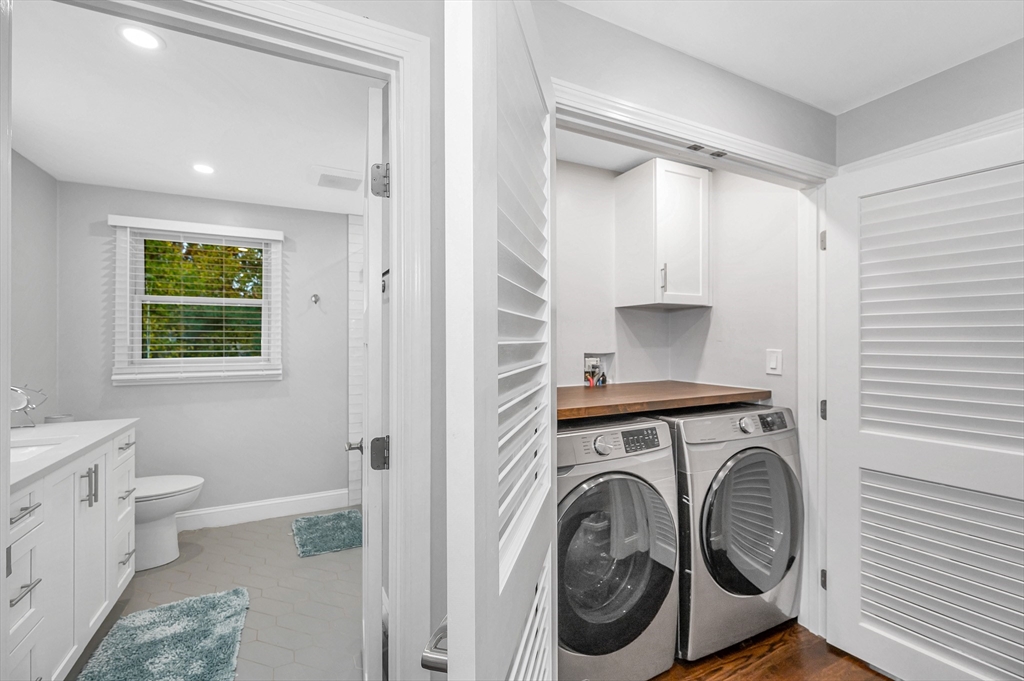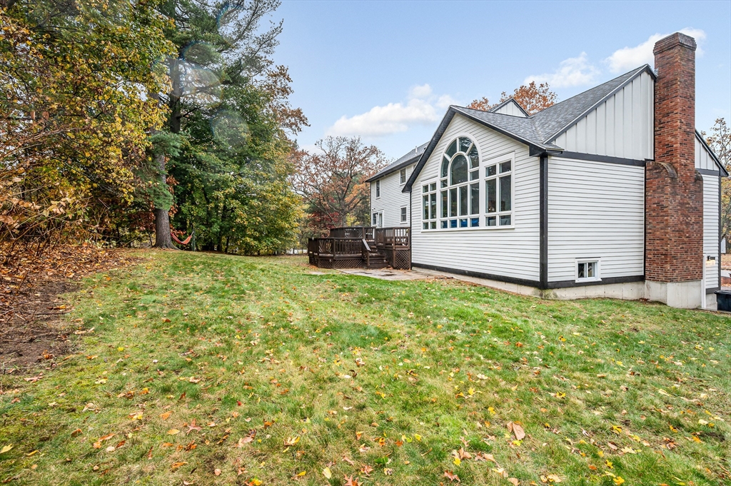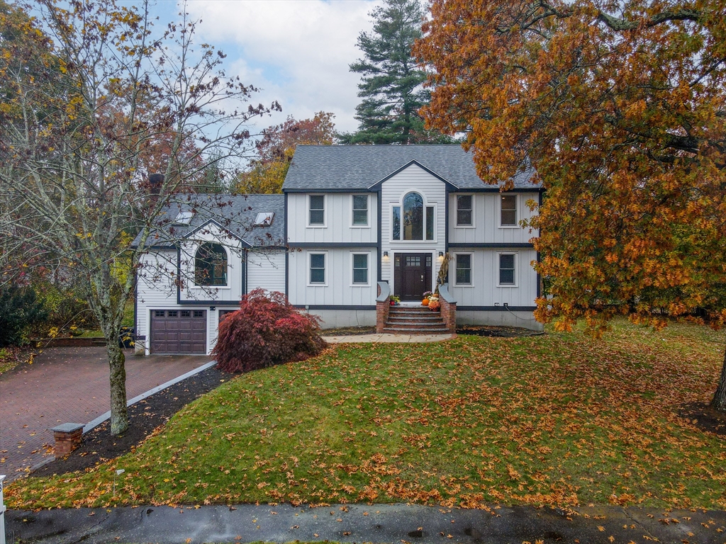 Located in a quiet cul-de-sac neighborhood! Completely renovated 8 room Colonial. Hardwood flooring throughout. Large Kitchen features waterfall white Quartz counter tops, lower cabinets with pull-out shelves,wine and coffee station with wine fridge, large walk-in pantry, wall-mounted double oven/microwave and reverse osmosis water filtration system. Dining area with fireplace and Coffered ceilings. Entry foyer has two large storage closets. Office with french doors. Bathrooms features ceramic tile floors and showers with glass enclosures,high end cabinets and vanities. Second floor laundry. Massive Family Room with stone fireplace, 20' cathedral ceilings, skylights. Wet bar including custom cabinetry, Porcelain bar top. Counter with deep sink, open shelving, glass-washer, ice maker and beverage refrigerator. Master bedroom with tray ceilings, walk in closet and master bathroom. New Hardie Board siding and garage doors. Driveway brick pavers/granite steps. Multi-level large deck.