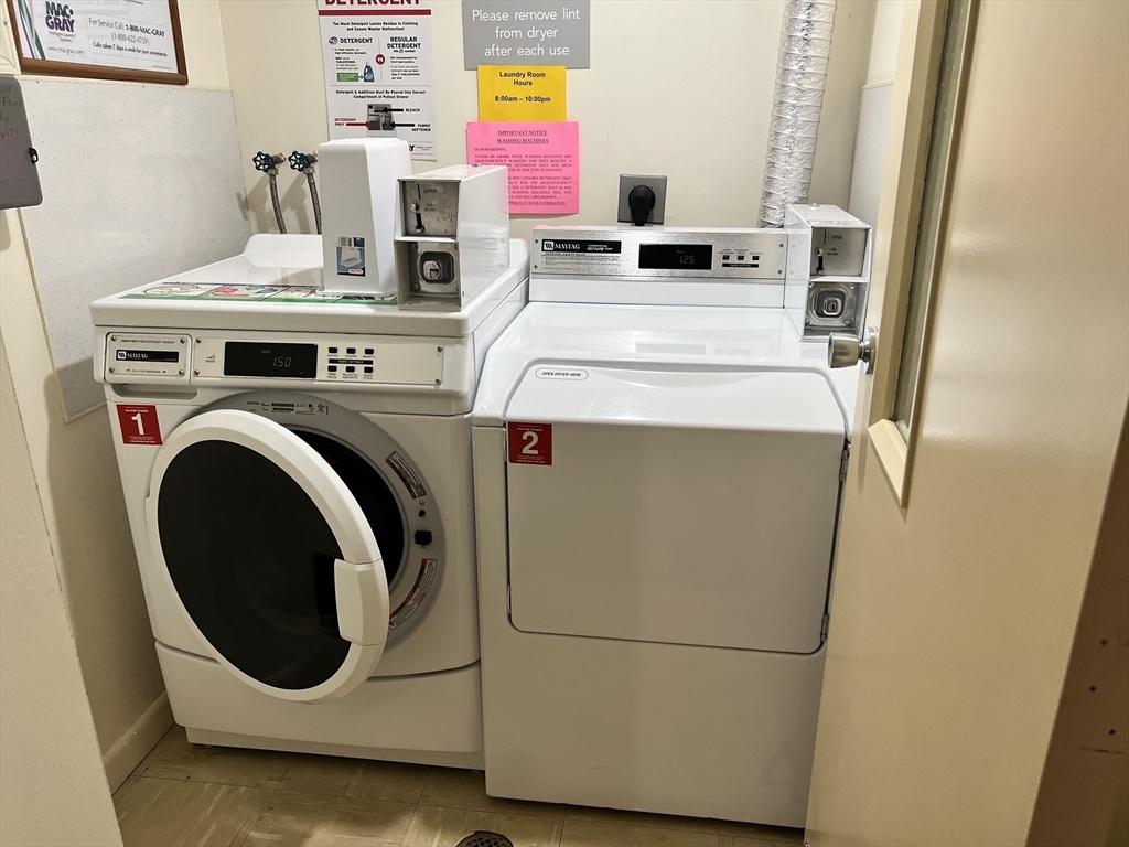 CROWN POINTE - Convenience is yours in this first floor one bedroom, 1 1/2 bath rental with large eat-in-kitchen and sunny exposure. Spacious living/dining room with 1/2 bath for guests and ample closets. Bedroom enjoys an updated bath with large walk-in-shower. Beautiful laminated flooring throughout the unit. The kitchen and the two baths have been updated. Laundry room and compactor room on each floor along with extra storage bin in the garage. Enjoy the lifestyle offered at Crown Pointe with the multi level clubhouse, function room, dance floor, cocktail bar, pool table, ping pong table, two exercise rooms, lending library, indoor pool, tennis court and heated seasonal outdoor pool. On site professional management with full maintenance staff. Make this your new home!