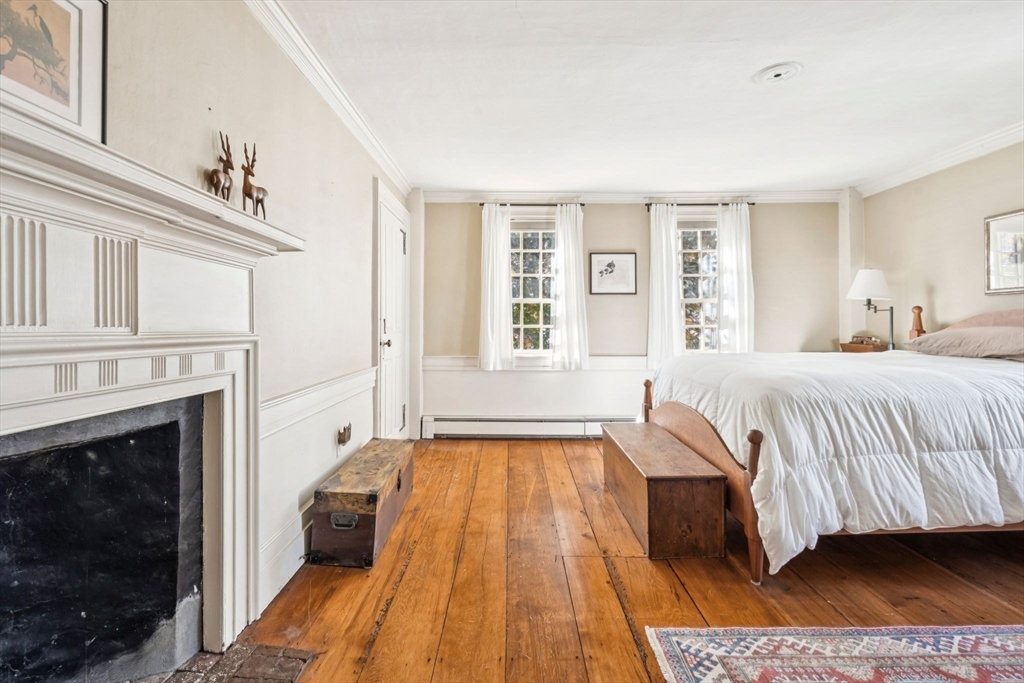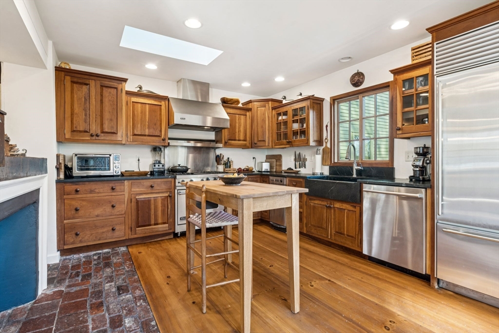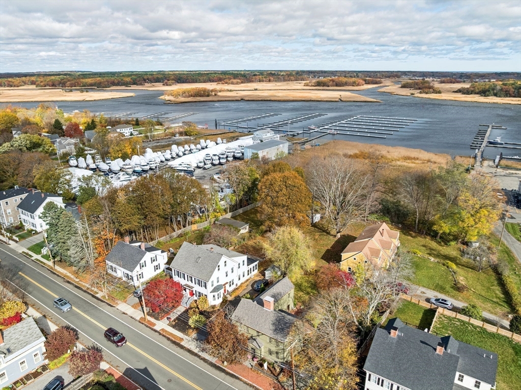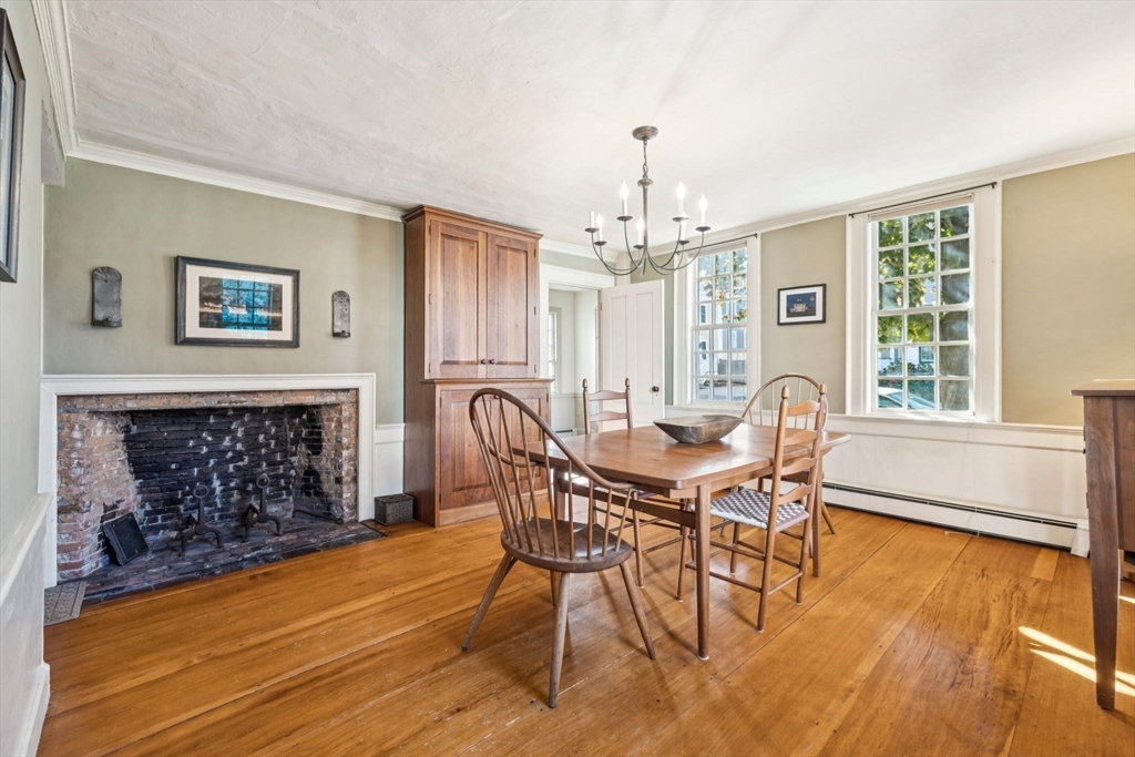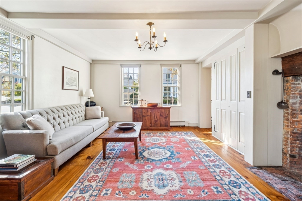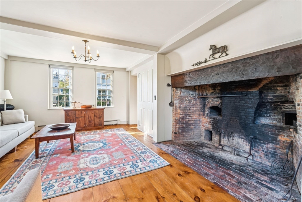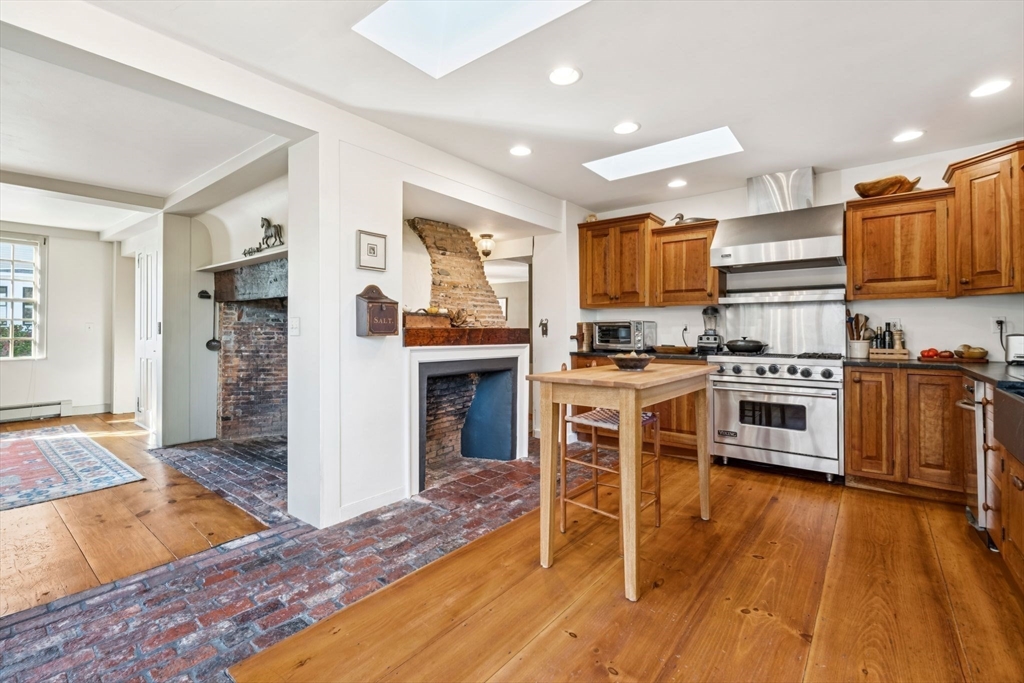 Welcome to this remarkable antique home near downtown Newburyport. Overflowing with character and charm, it features five fireplaces, including an impressive hearth large enough to step inside, a stunning reminder of the home’s rich past. The updated kitchen is bright and filled with natural light from the skylights, including soapstone countertops, brick flooring, a Sub-Zero refrigerator, and a Viking oven with hood, all with views of the Merrimack River. Wide floorboards flow throughout, and the office highlights beautiful exposed wood beams. The primary bedroom also offers views of the water. Outside, enjoy a patio with sweeping river views. The Newburyport Harborwalk Rail Trail is easily accessed, offering the perfect spot for a scenic walk or bike ride along the waterfront. Rare for Newburyport, the property includes four off-street parking spaces, adding even more convenience to this truly special residence.