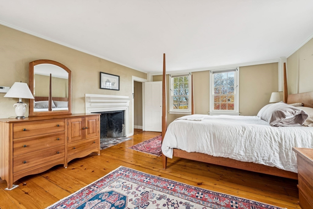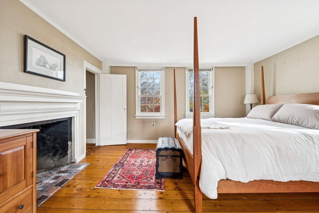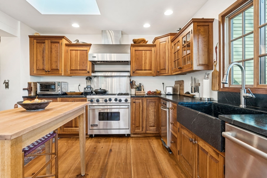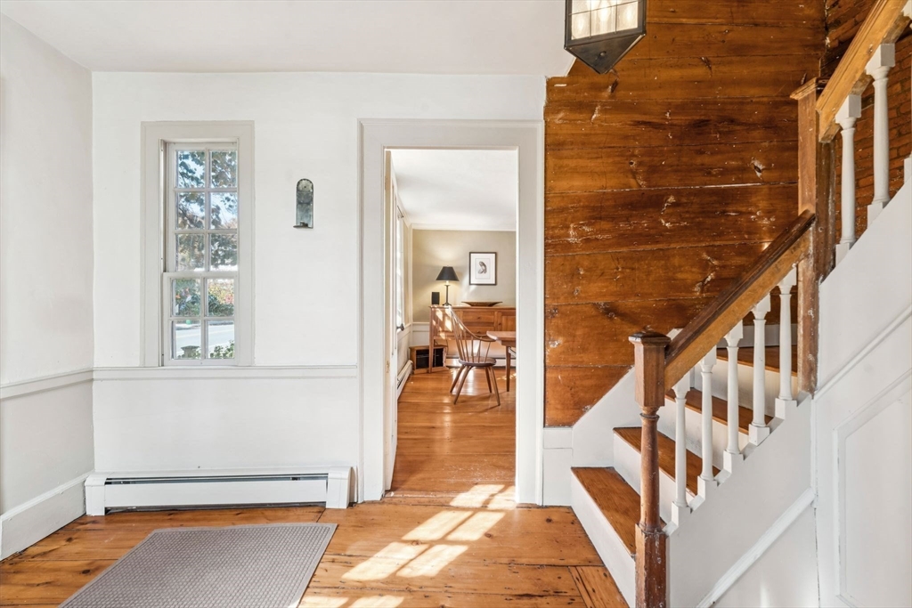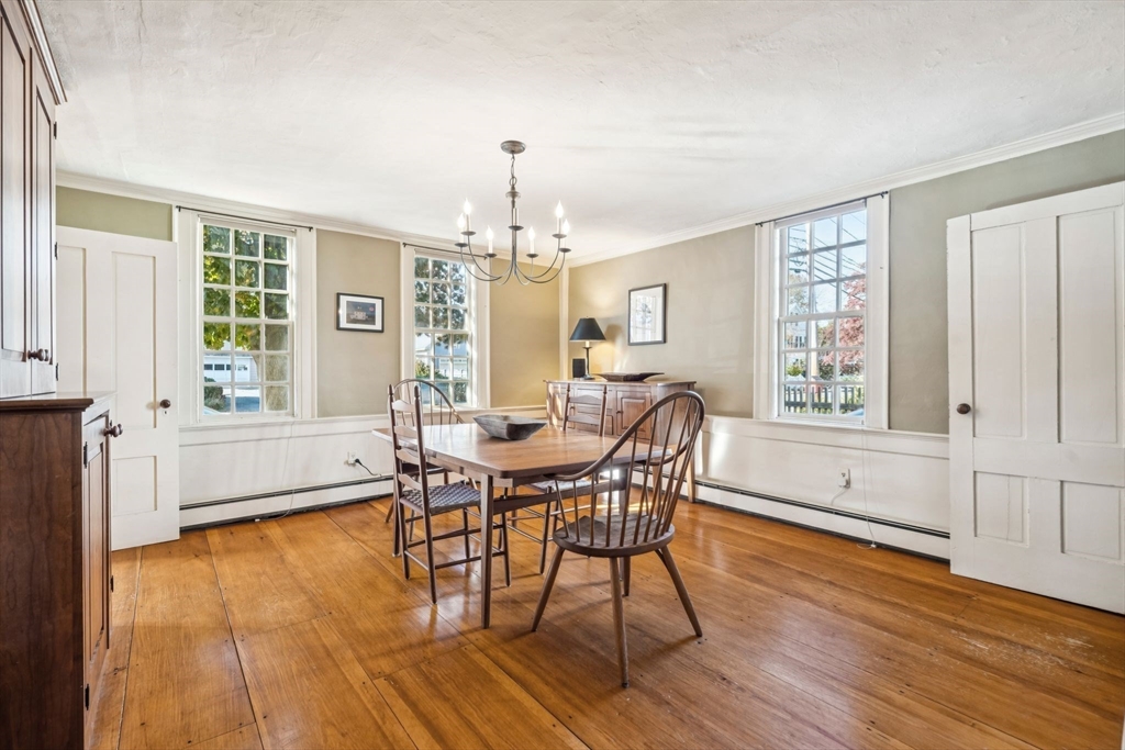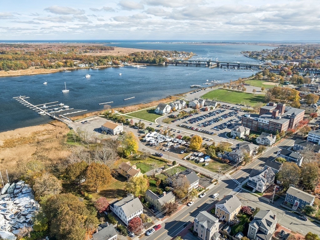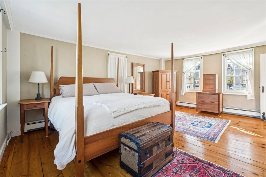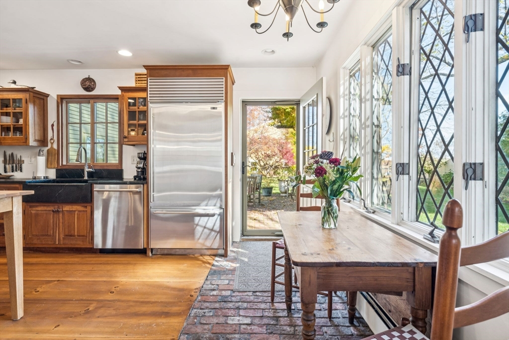 Welcome to this remarkable antique home near downtown Newburyport. Overflowing with character and charm, it features five fireplaces, including an impressive hearth large enough to step inside, a stunning reminder of the home’s rich past. The updated kitchen is bright and filled with natural light from the skylights, including soapstone countertops, brick flooring, a Sub-Zero refrigerator, and a Viking oven with hood, all with views of the Merrimack River. Wide floorboards flow throughout, and the office highlights beautiful exposed wood beams. The primary bedroom also offers views of the water. Outside, enjoy a patio with sweeping river views. The Newburyport Harborwalk Rail Trail is easily accessed, offering the perfect spot for a scenic walk or bike ride along the waterfront. Rare for Newburyport, the property includes four off-street parking spaces, adding even more convenience to this truly special residence.