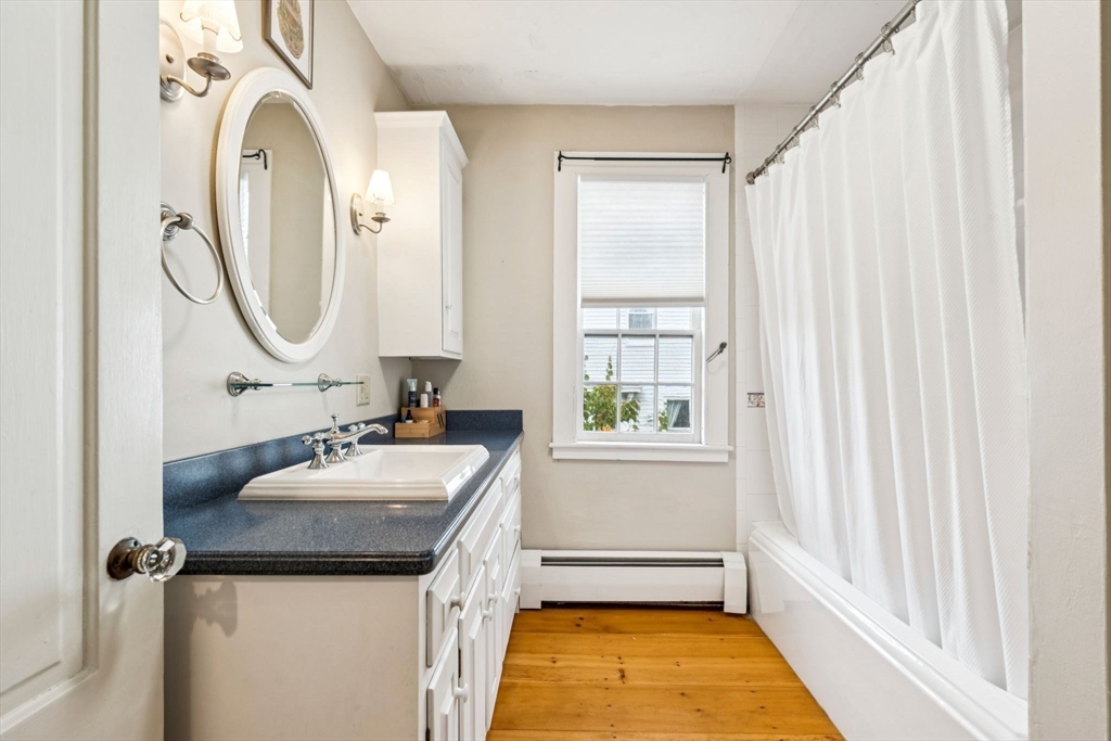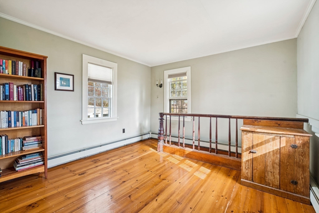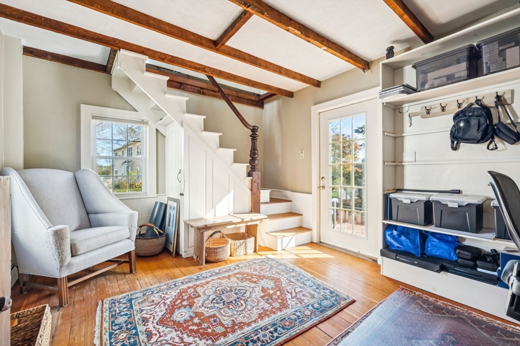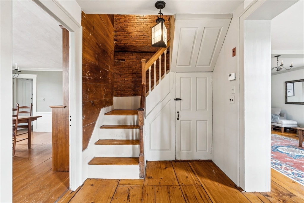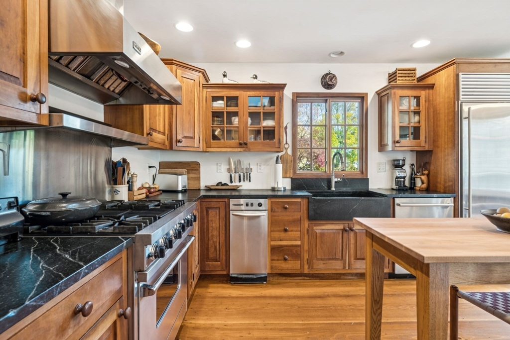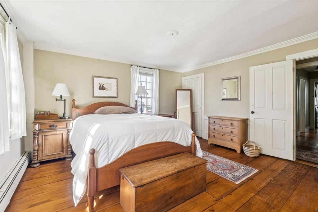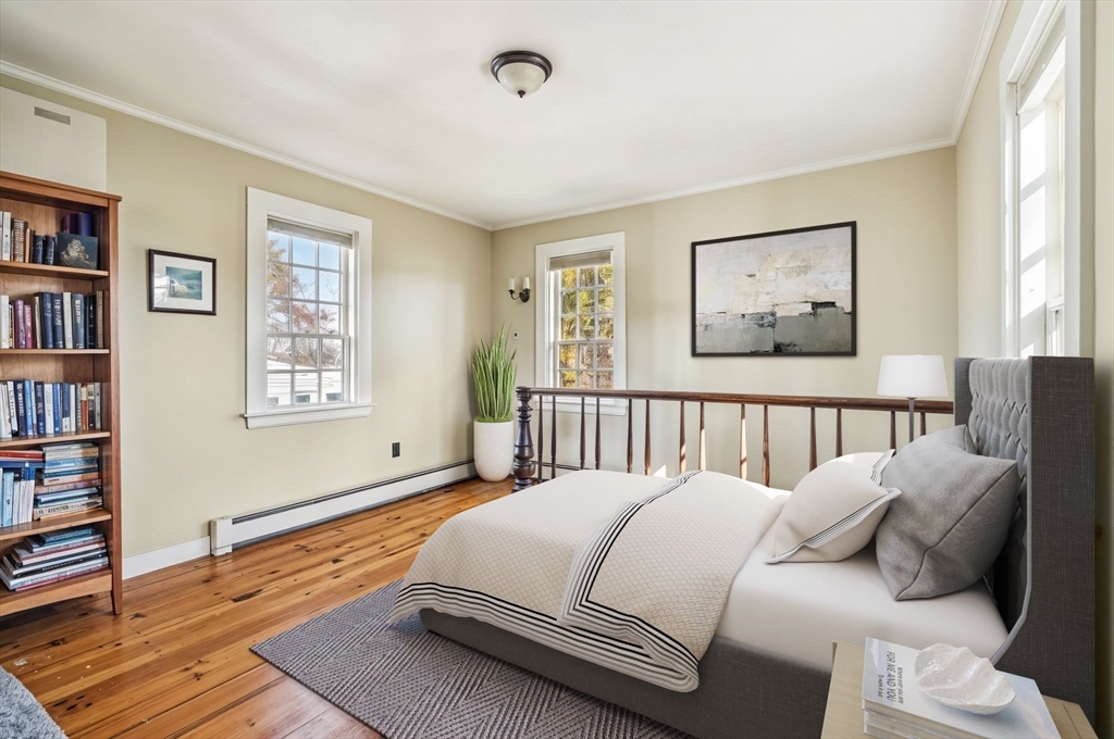 Welcome to this remarkable antique home near downtown Newburyport. Overflowing with character and charm, it features five fireplaces, including an impressive hearth large enough to step inside, a stunning reminder of the home’s rich past. The updated kitchen is bright and filled with natural light from the skylights, including soapstone countertops, brick flooring, a Sub-Zero refrigerator, and a Viking oven with hood, all with views of the Merrimack River. Wide floorboards flow throughout, and the office highlights beautiful exposed wood beams. The primary bedroom also offers views of the water. Outside, enjoy a patio with sweeping river views. The Newburyport Harborwalk Rail Trail is easily accessed, offering the perfect spot for a scenic walk or bike ride along the waterfront. Rare for Newburyport, the property includes four off-street parking spaces, adding even more convenience to this truly special residence.
