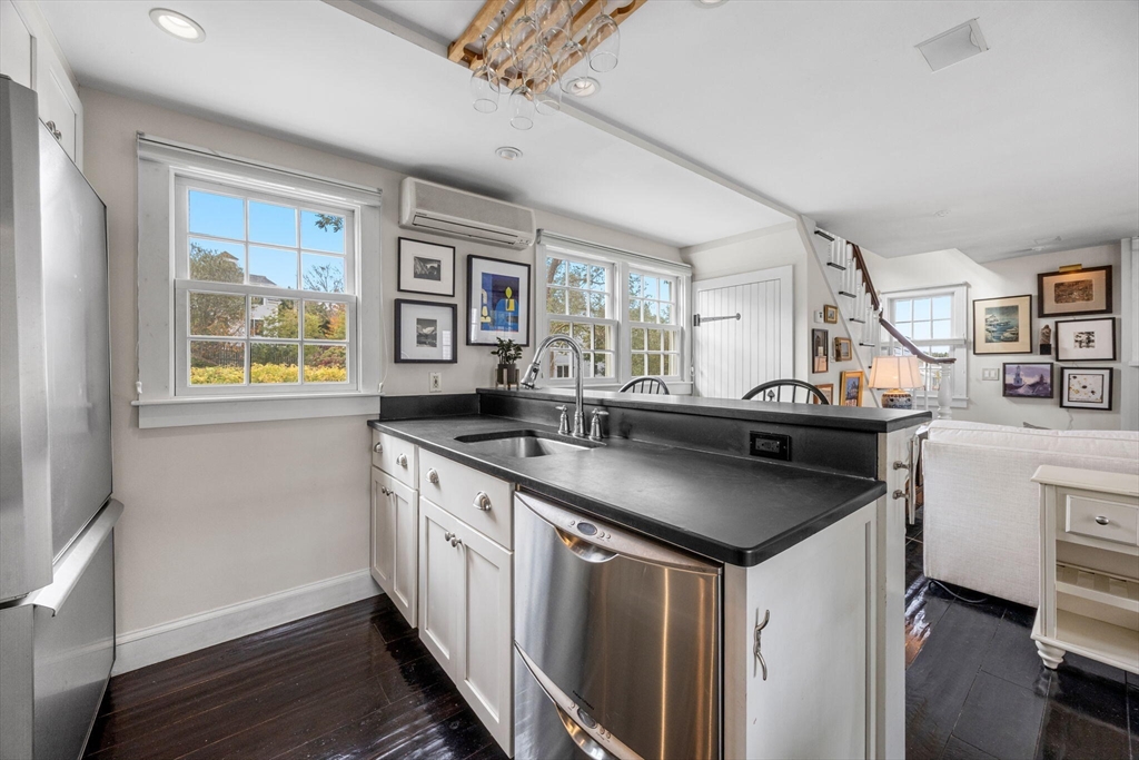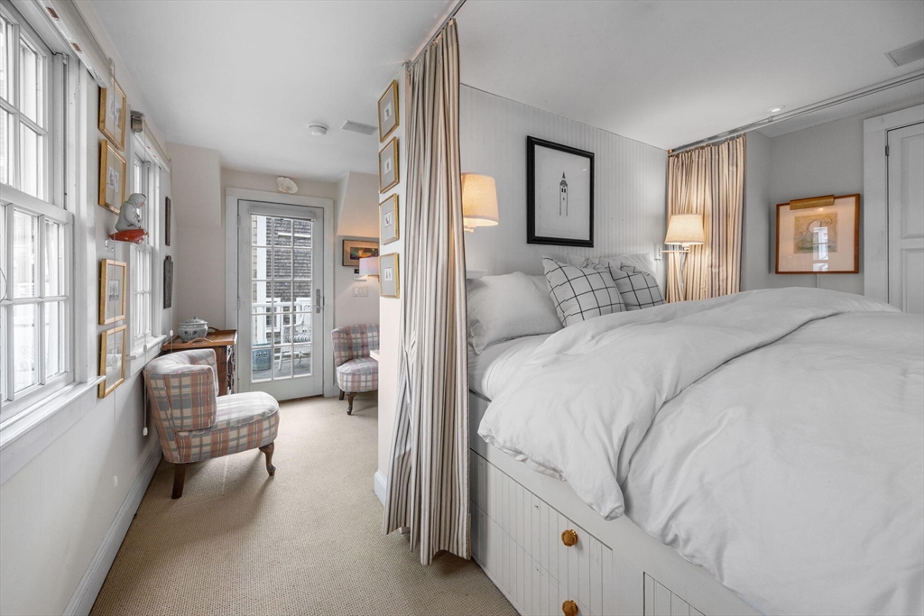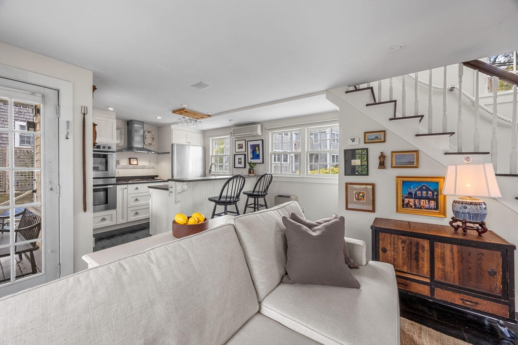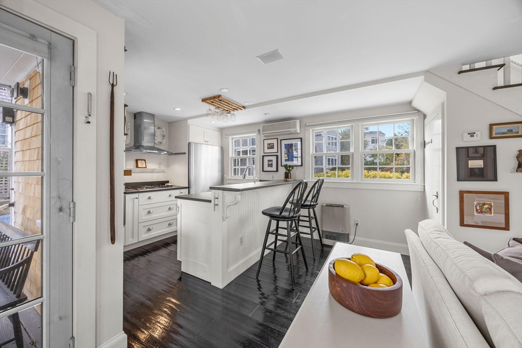 Freestanding and beautifully maintained, this quintessential West End cottage—rebuilt from the ground up in 2005—is part of a serene five-unit association on Pleasant Street. Filled with natural light, the home offers nearly 900 sq.ft. of well-designed living across three levels with seamless indoor-outdoor flow. The open main level features high ceilings, ebony-lacquered wood floors, a double wall oven kitchen, and a fireplace with built-ins. The primary suite includes a built-in king bed, study, and sunny deck, while a cozy loft opens to a rooftop deck perfect for sunset cocktails. With new roof, siding, and decks (2024), air conditioning, basement storage, and parking, this inviting retreat is moments from Commercial Street, beaches, and dining.