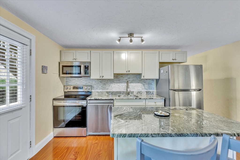 'Bright, airy 2-bedroom, 1-bath condo with open floor plan and stainless steel appliances. The kitchen island is perfect for storage and gatherings. Recently renovated with soft-close cabinets and granite countertops. A wrap-around porch is ideal for morning coffee or evening relaxation. Flooded with natural light year-round. Steps from beaches, restaurants, and shops—perfect vacation spot or year-round home. Easy rental potential for steady income. Don't miss this gem!''With one designated parking space, you'll never have to worry about finding a spot for your vehicle. Plus, the low HOA fee of just $250 per month ensures that your living experience is as carefree as possible, with maintenance worries kept to a minimum. This condo presents an exceptional opportunity to enjoy a peaceful lifestyle, conveniently located near all that South Yarmouth has to offer. Whether you're a first-time homebuyer or someone seeking a delightful vacation retreat, this home is ready to welcome you home.