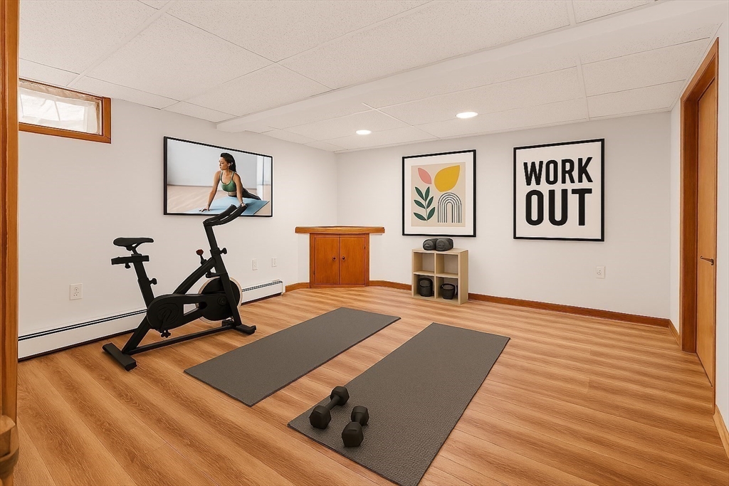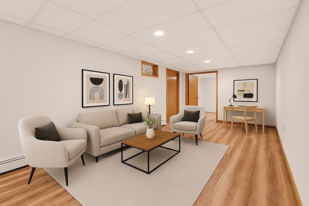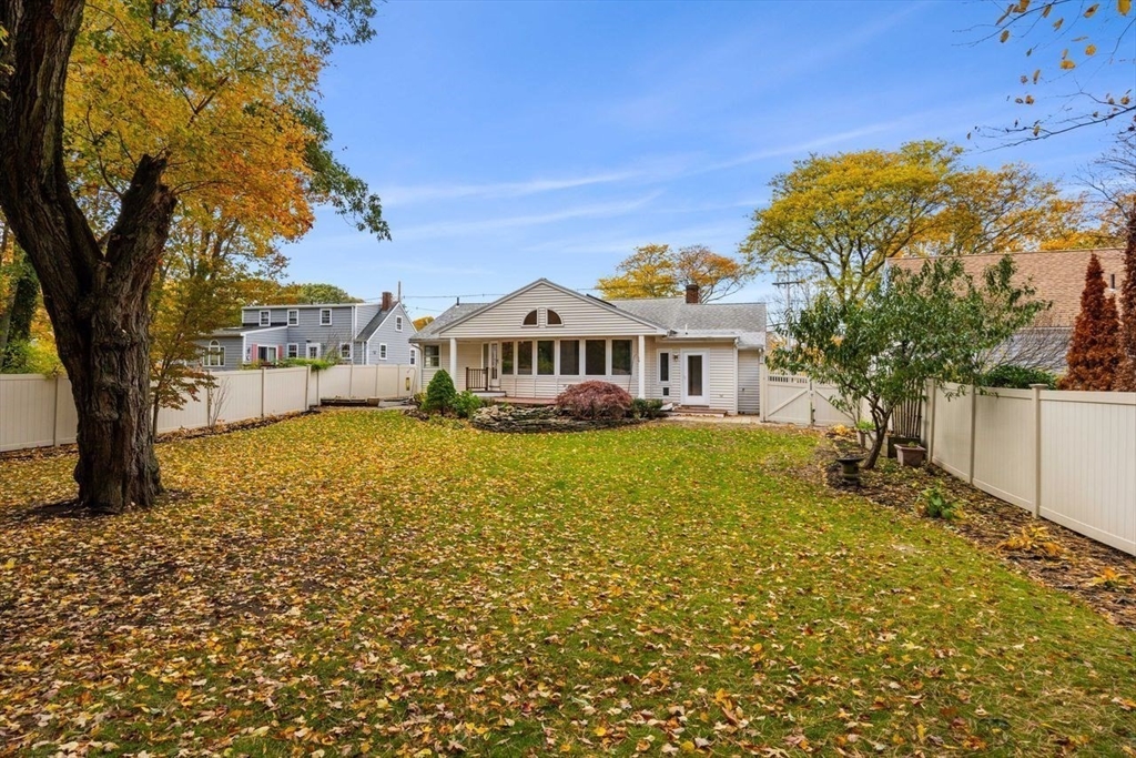 Well-maintained ranch set on a large, level, and fully fenced lot offering wonderful privacy. This home features an attached one-car garage plus two driveways for ample parking. Inside, you’ll find hardwood floors, a bright living room with a wood-burning fireplace, and a sun-filled family room with large windows overlooking the expansive backyard. The kitchen includes updated appliances, Corian countertops, and plenty of cabinet space. Convenient first-floor laundry adds ease to everyday living. The lower level offers bonus finished rooms with new laminate flooring—ideal for guest space, a home office, a gym, or an additional family room. Enjoy comfortable single-level living in a convenient location, close to local beaches, downtown shops, restaurants, and parks. Don’t miss the chance to make this well-maintained home your own. Showings begin after the broker open house on 11/5. Several photos are virtually staged.