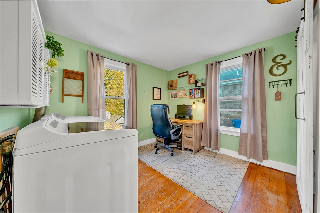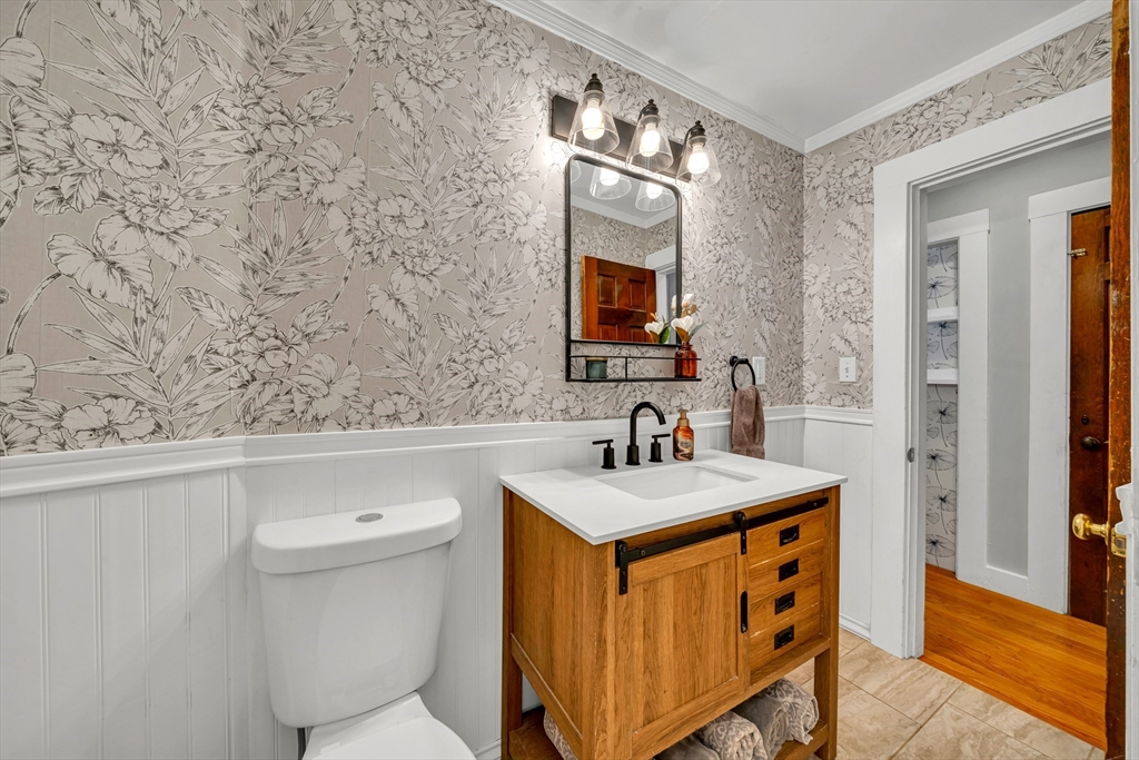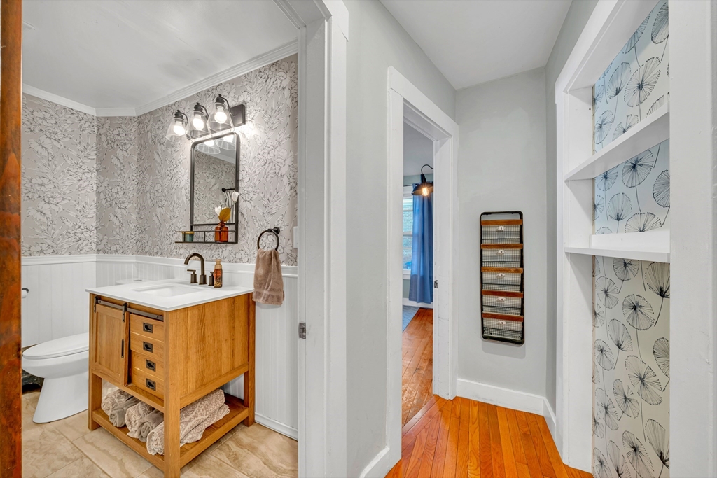 The home in the neighborhood you've been looking for! The curb appeal, the back and front yard to hang out in, the street with the neighborhood block party everyone raves about...what more could you ask for! The Main level showcases a mostly open floor plan while also having designated space if you need room from everyone living under your roof, with hardwood floors throughout and a first floor bedroom, currently being used as a home office and laundry room. You'll notice the soapstone countertops, designer wallpaper, and updated bathrooms on both levels of the home. The front to back Primary bedroom has ample space but doesn't steal any room from the adjacent two 2nd floor bedrooms, all generous in size and each with 2 closets for storage! The basement is currently used for storage, but has high potential to partially finish while still keeping a workshop. Never worry sending the kids or dog into the fenced backyard, where you can still keep an eye out from the porch. Welcome Home!