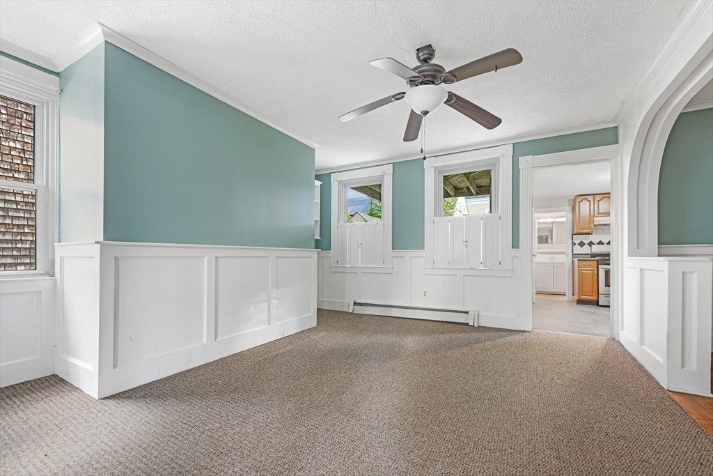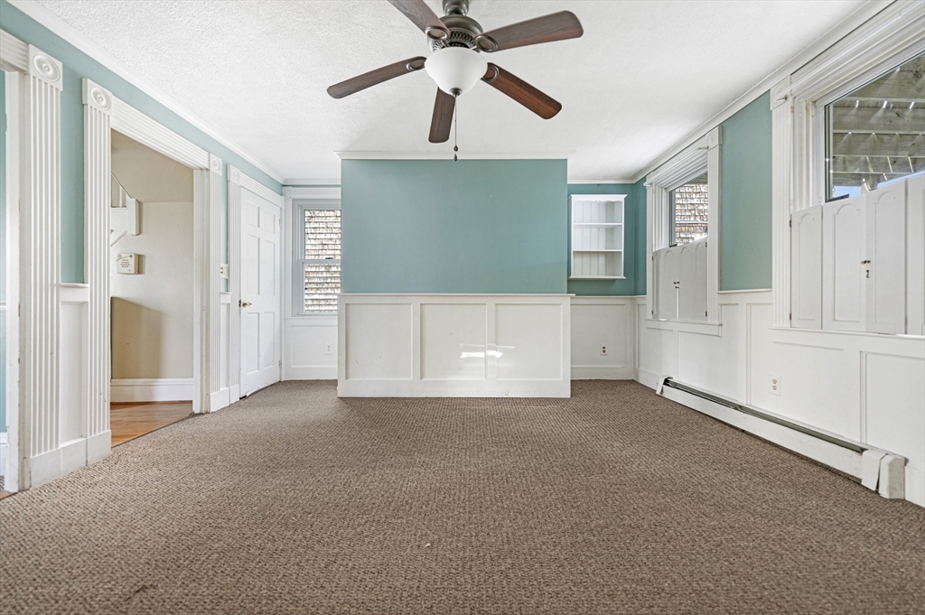 Move-In Ready & Priced to Sell – 42 Parker Street, New Bedford. Welcome to this inviting 3-bedroom, 1.5-bath cottage located just minutes from historic downtown New Bedford, St. Luke’s Hospital, and beautiful Buttonwood Park. Perfect for first-time buyers or those looking to downsize, this home is in move-in condition and priced to sell! The first floor features a spacious kitchen, a formal dining room with a built-in bar—great for entertaining—and a remodeled full bath. Upstairs, you'll find three generously sized bedrooms, including a primary bedroom with direct access to a private deck overlooking the yard. With vinyl siding, a manageable yard, and proximity to restaurants, shopping, parks, and commuter routes, this is a fantastic opportunity to own a well-kept home in a convenient location. Act fast—homes in this condition and price range don’t last!
