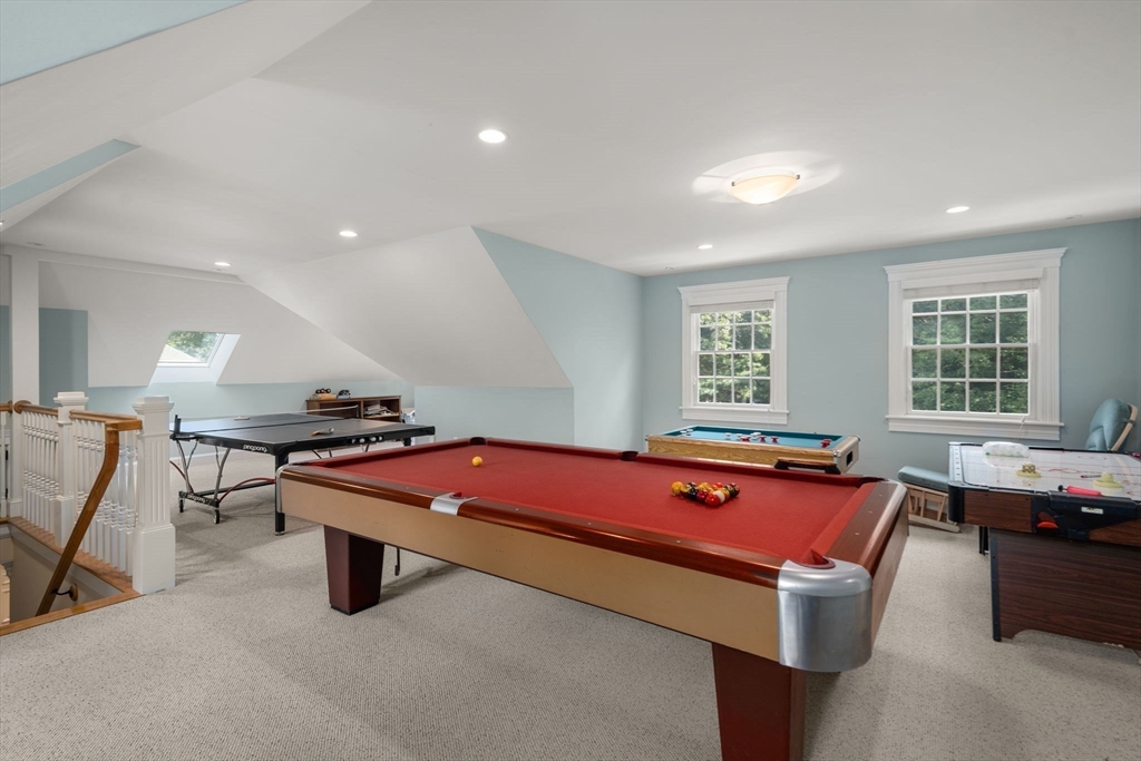 Facing the setting sun in a prime West Newton Hill location, this impeccably built home welcomes you via a grand bridal staircase entry hall. This brick & stone home features 8500 sq ft of well thought out design & details in all 11 rooms, 5 BRs & 7.5 baths?. A chef’s kitchen features a huge island w/ breakfast bar, top end appliances, additional full size freezer & huge walk in pantry. Main level includes a formal LR, DR, a private office w/ custom woodwork & en-suite bath (could double as guest room) & spacious family room. Walk out to a huge patio & large level play yard w/ mature foundation plantings. Upstairs find 4BR with the main BRsuite set off in a separate wing. ?3rd floor game room/nanny suite w/bath. A fantastic lower level sports paradise features 18’ high ceilings w/ basketball hoop, batting cage, driving range net, full suite of gym equipment, free weights & machines and full bath. Luxurious 3 car garage and plenty of private parking along a stone walled circular drive