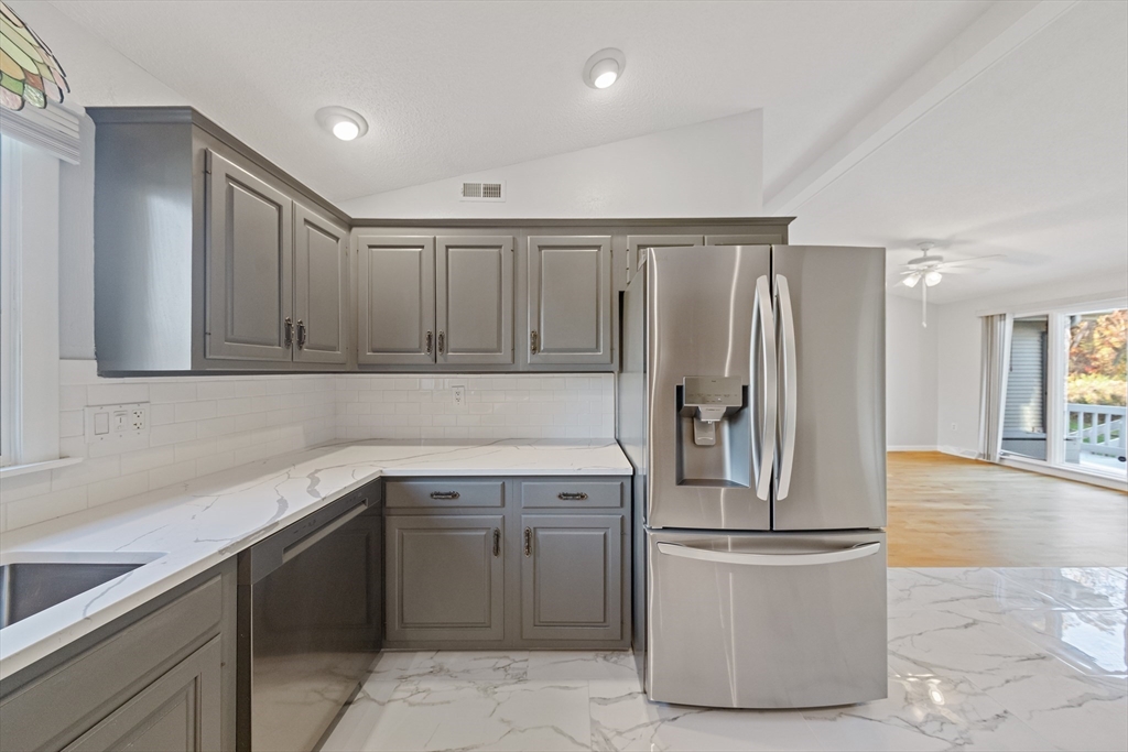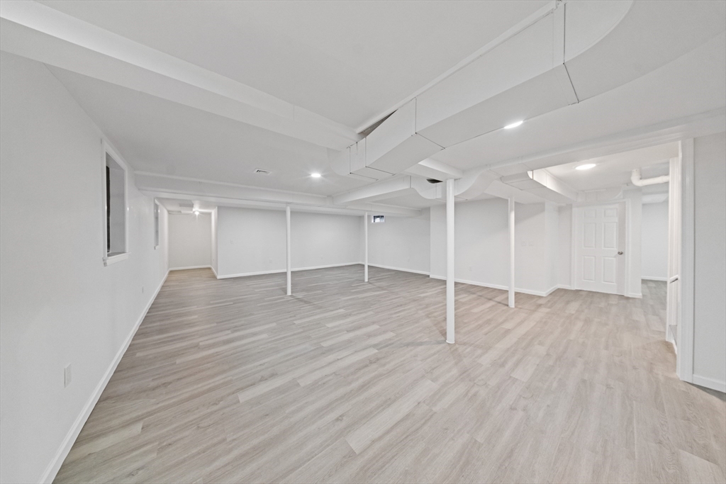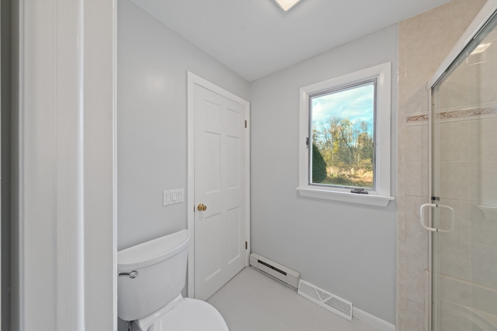 Stunning Custom-Built Contemporary Ranch! Set on a private 0.78-acre double lot, this stone-front home offers 3,494 sq. ft. of beautifully designed living space just minutes from Route 57 and Bradley International Airport. The open floor plan features a spacious kitchen with quartz countertops, new stainless steel appliances, and ceramic floors overlooking a serene brook. The sunken living room boasts floor-to-ceiling windows, a wood fireplace, and double sliders to the deck. The primary suite includes a sitting area, walk-in closet, and Jacuzzi shower. Two additional bedrooms share a Jack & Jill bath. The finished basement offers a full bath, and brand-new hardwood floors run throughout. A rare opportunity to own a private, one-of-a-kind home combining comfort, luxury, and natural beauty!