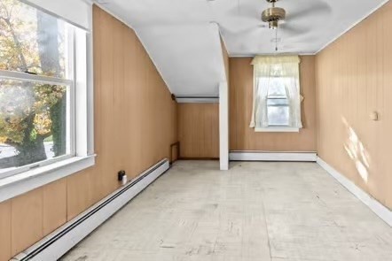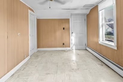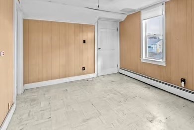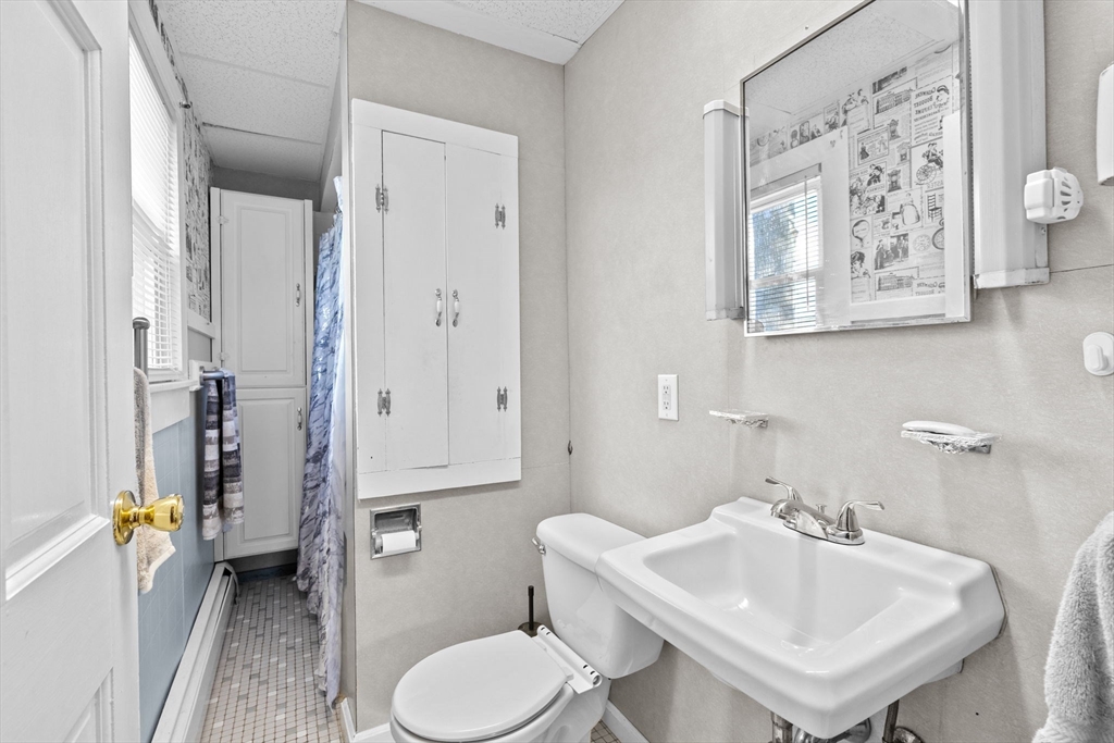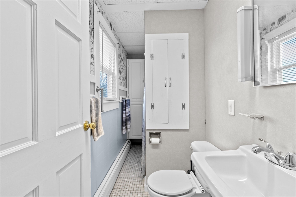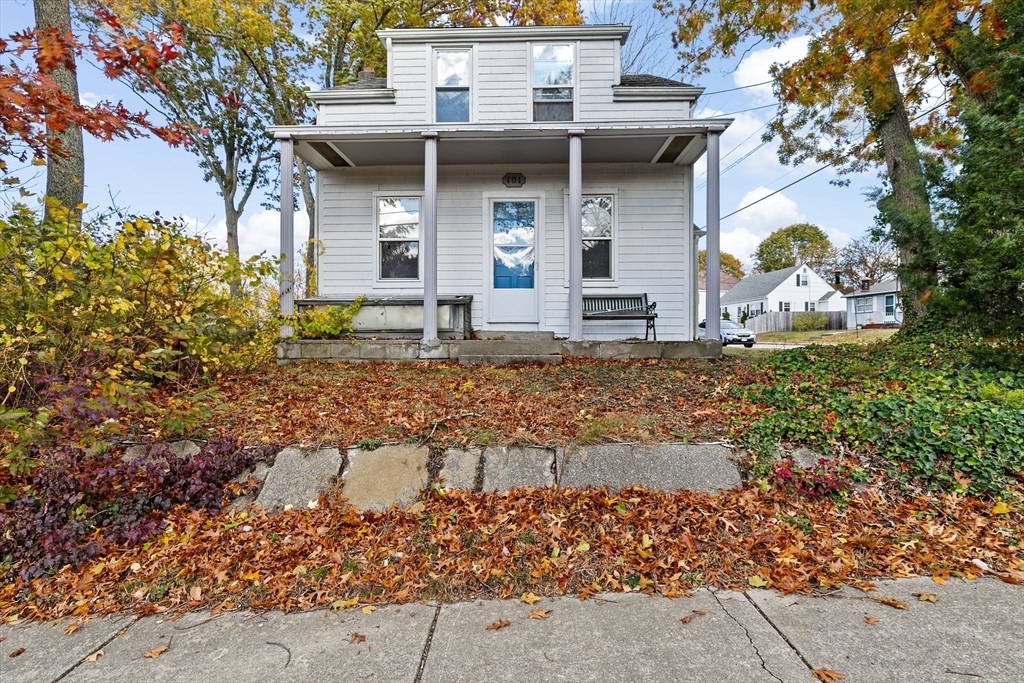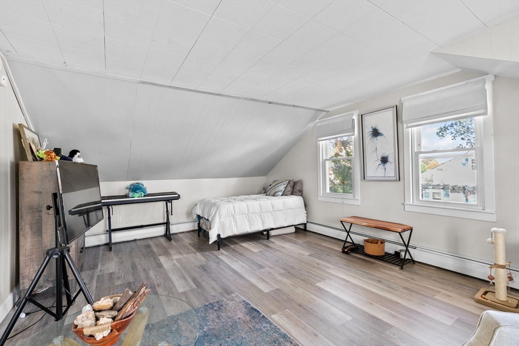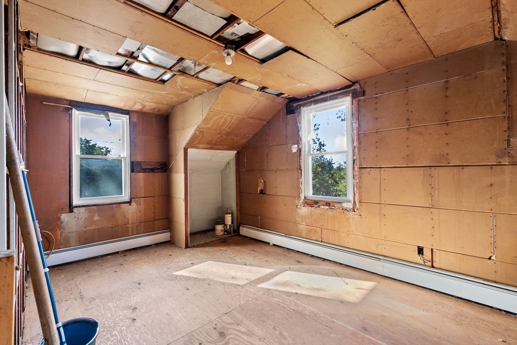 This home has plenty of space ready for your own vision and finishing touches! Large kitchen area, and big living room offer bright living spaces. Upstairs, the main bedroom has been tastefully redone with laminate flooring and walk-in closet. Bonus unfinished third room upstairs with heat attached to second bedroom. Bring your ideas! If you are looking for an ideal location in a great neighborhood, this spot is two blocks from the new commuter rail station in the north end of New Bedford. Also convenient to highways, and shopping! This corner-lot property also comes with an additional (unbuildable) lot to make your backyard even more expansive and private. Replacement windows already have been done. Off-street parking and sidewalks, convenient to schools. Come see this home and make it your own! First showings at open house Saturday 11/8 11-1pm.