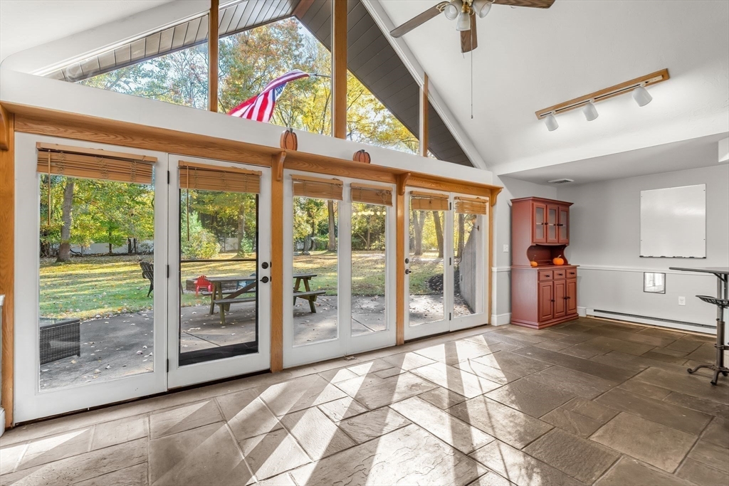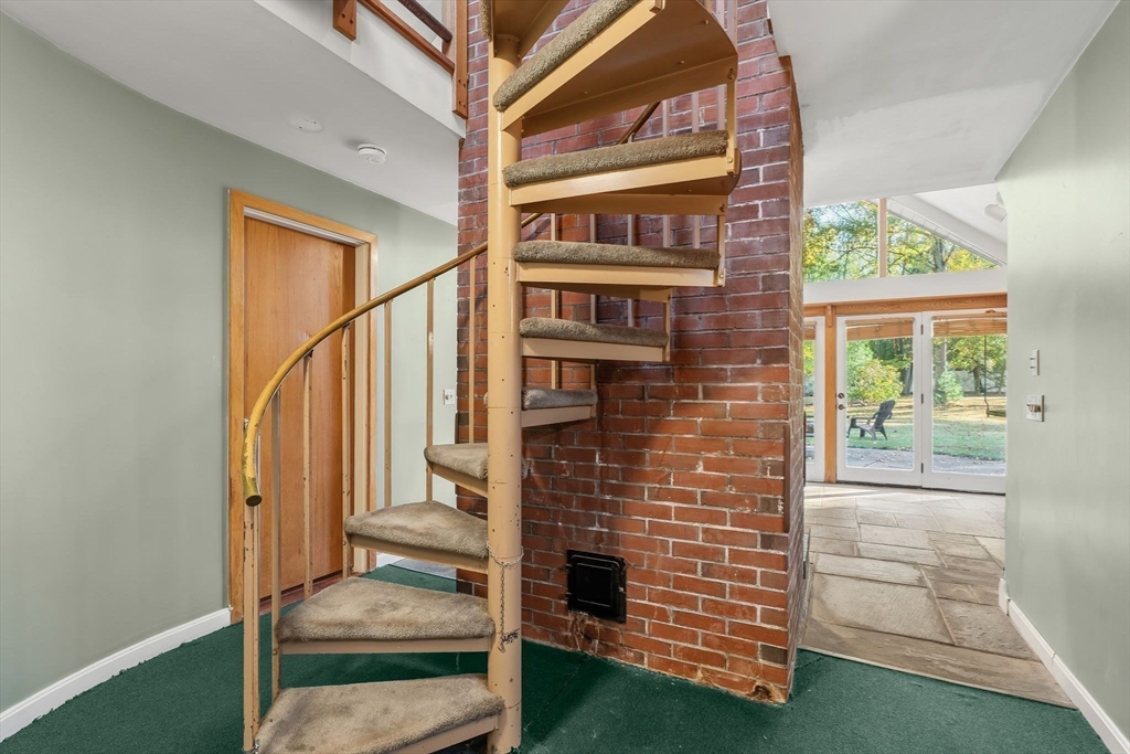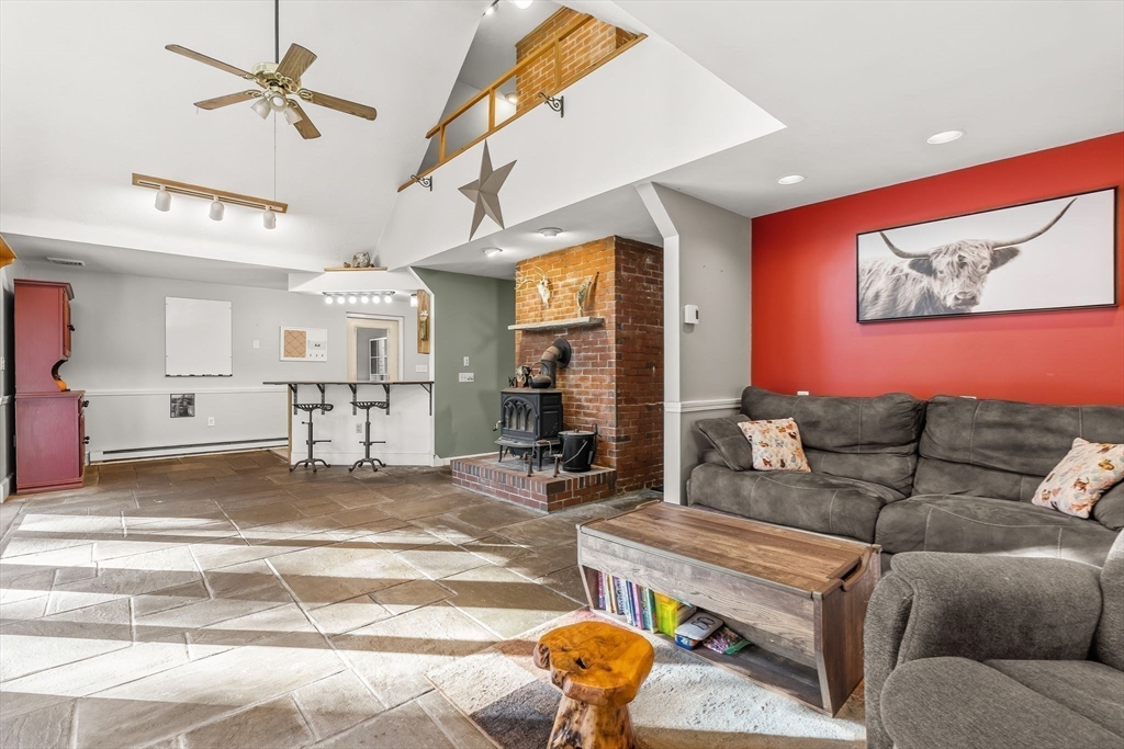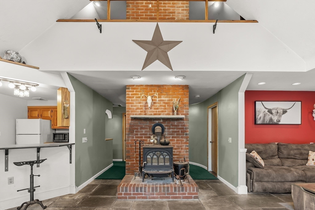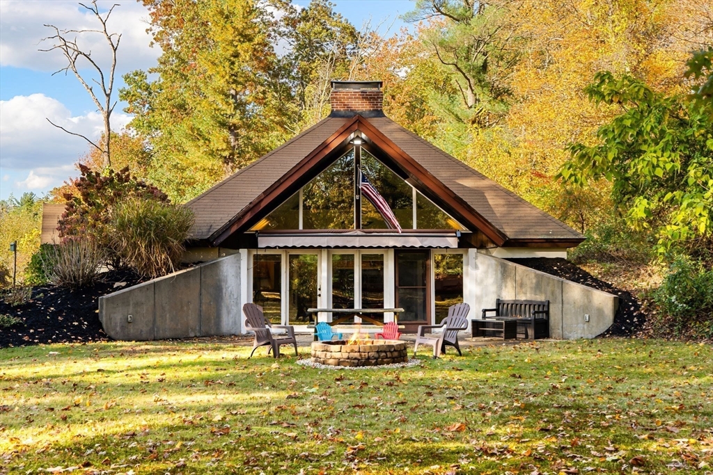 Welcome to 57 Liberty Street — a one-of-a-kind, energy-efficient earth home set on a private 1.55-acre retreat lot! This contemporary gem features an open-concept layout with soaring cathedral ceilings, a wall of south-facing windows, and a striking central brick chimney with a wood stove. The oak kitchen flows seamlessly into the spacious great room, perfect for entertaining or relaxing. The first-floor bedroom offers generous closet space, a full bathroom, and convenient laundry, while a spiral staircase leads to a skylit loft ideal for an office or guest space. Enjoy low-maintenance living with energy-efficient upgrades, landscaped grounds, and a large patio surrounded by nature. Additionally the oversized, commercially zoned heated garage with its own electrical panel offers endless potential for a workshop, business, or accessory dwelling. Convenient to Routes 58 & 18, the commuter rail, and Whitman-Hanson High School — this home is full of opportunity!