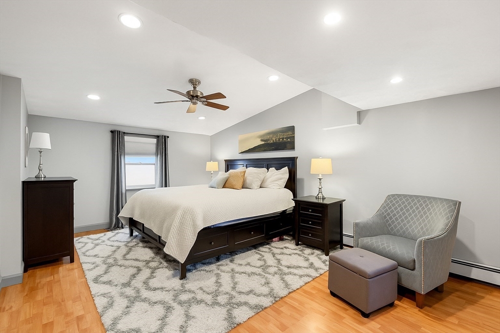 Spectacular Cape w/ ocean views nestled in the desirable Orient Heights neighborhood offering panoramic views of East Boston and Winthrop Beach. Step out onto the premium composite deck—perfect for relaxing or entertaining. Inside, a chef’s dream kitchen awaits, renovated in 2013 w/ upgraded cabinetry, granite counters, and stainless steel appliances, including a new 2020 dishwasher, a new 2025 gas range and double ovens, and pot filler—all which complement the thoughtful design for those who love to cook and host. The formal dining room is ideal for gathering and holidays. Upstairs, the spa-style bathroom features a whirlpool tub, tiled shower with seat, and double-sink vanity. The home offers four bedrooms and three full baths with abundant closet and storage space. One bedroom is currently being used as a home office, providing additional flexibility. The finished lower level adds even more versatility for extended family, guest for extended family, guests, or an in-law suite.