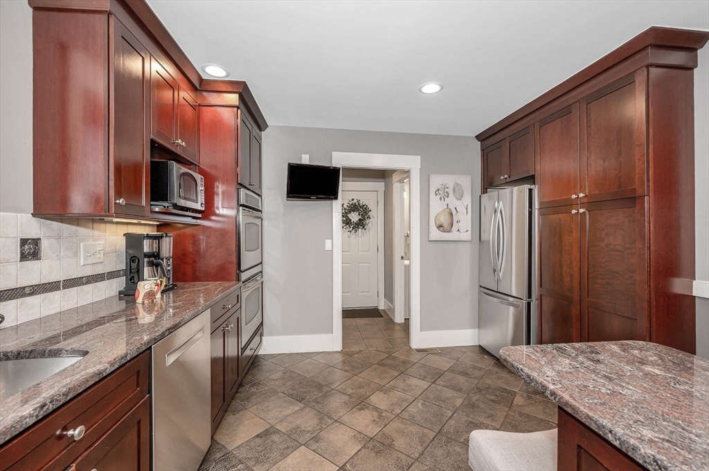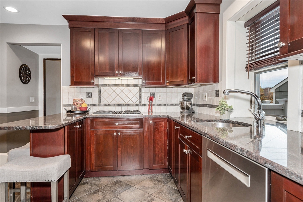 Immaculate and tastefully decorated Gambrel with many updates. This beautiful home is centrally located minutes from the Commuter Rail and Reading's vibrant downtown. Lovely updated kitchen offers quality cabinetry, granite counters, stainless appliances and a wall oven. Also on the first floor is a living room, formal dining room, laundry and a full bath. The second level offers four generously sized bedrooms and a second full bath. Relax in the warmer months in your private fenced-in back yard with patio and cabana-style deck. With the gorgeous Reading Public Library around the corner, a stones throw from shops and restaurants, and minutes from middle and high schools; you can live a convenient lifestyle with short commute times. There is nothing to do but pack your bags and move right into this turn-key and well-maintained home.