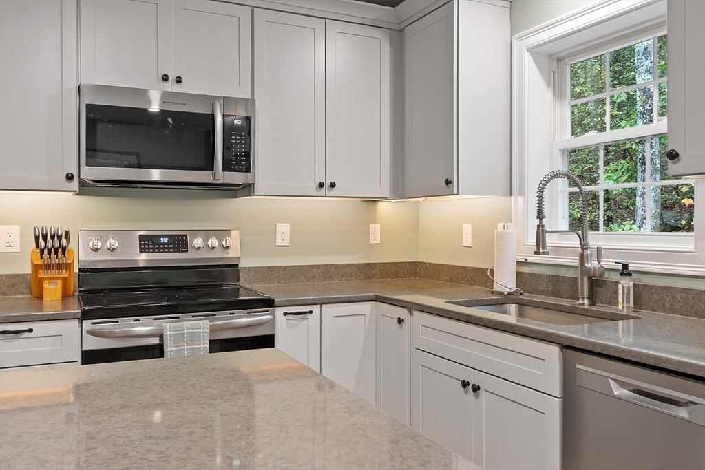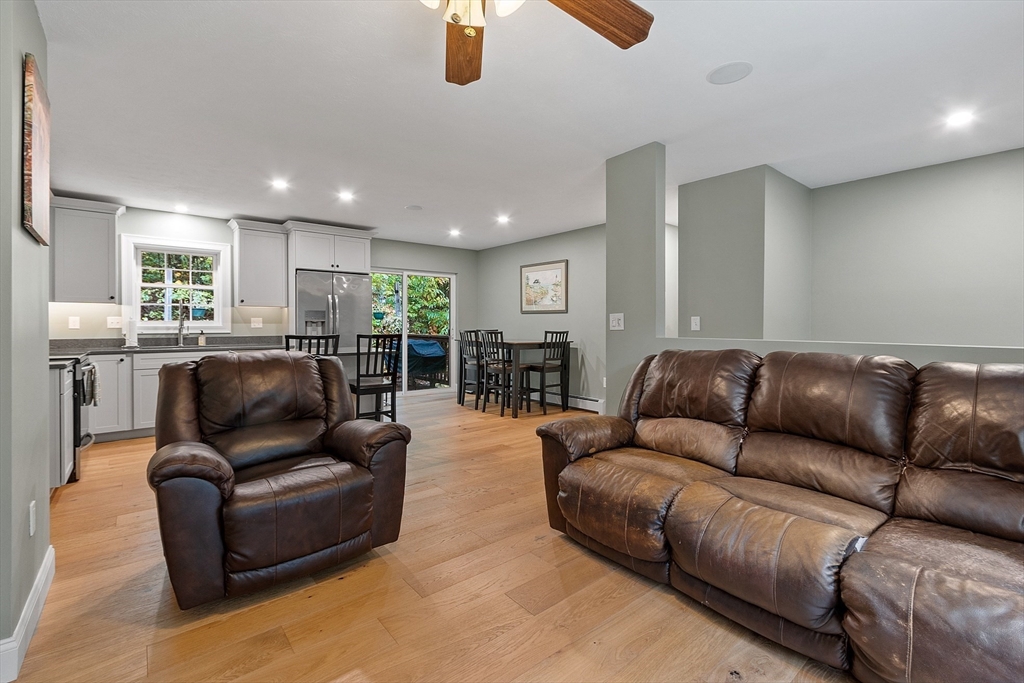 Welcome to 35 Hillside Drive, a beautifully updated 3-bedroom, 1.5-bath split-level home offering comfort, style, and privacy just steps from Lake Monomonac. This move-in-ready property features a new roof, new kitchen with stainless steel appliances, quartz countertops, and a spacious island ideal for everyday living and entertaining. The main level showcases engineered hardwood flooring, recessed lighting, built-in smart speakers, and a new slider that opens to a back deck overlooking the backyard. All bedrooms feature Pergo flooring, the full bath includes tile, and the primary bedroom offers a convenient half bath. The finished lower level adds flexible space, perfect for a family room, home office, or gym. Additional highlights include a two-car attached garage and direct access to scenic walking trails. With its very recent high-end updates, peaceful location, and close proximity to the lake, this home offers exceptional value and an opportunity for a quick close.
