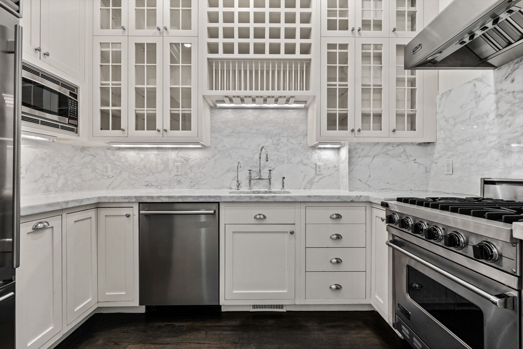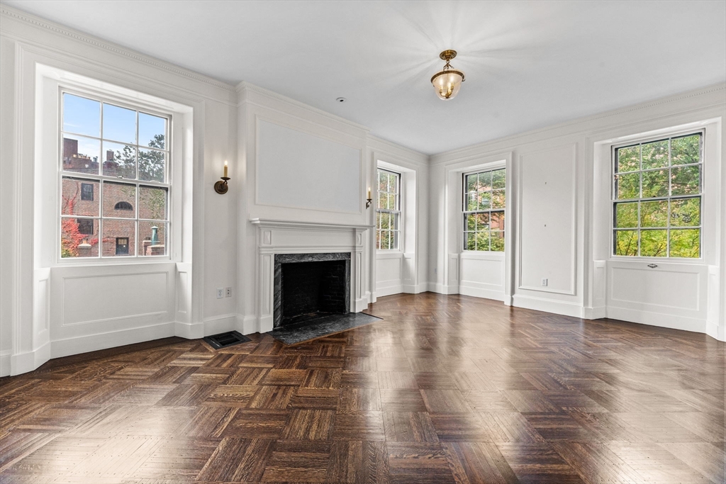 This beautifully updated Beacon Hill home boasts a prime location with lovely private deck, all with a thoughtful mix of historic accents and modern conveniences. The parlor entertaining level features a scaled formal living and dining rooms with an adjoining wood paneled library or office. Off of the dining room is a kitchen with stainless steel appliances, marble counters and gas cooking. The second floor features the primary bedroom with abundant closet space and an over-sized walkout deck. The home’s top level is well configured for an au pair or guest suite and includes a full kitchen, bathroom and bedroom. One parking space under the Boston Common included in the rent price.