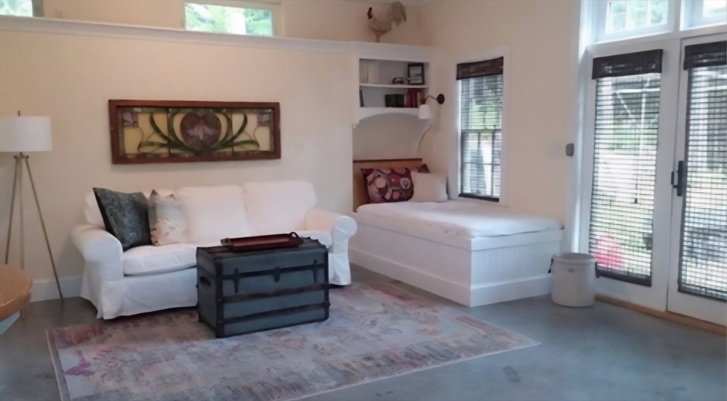 Nature Lover’s Retreat: Custom-built, open-concept living, 1-bedroom, 1-bath “Carriage House” w/ 1 floor living nestled on a private 8-acre wooded property bordered by the scenic Jones River. Sunlight pours in through French doors, opening to serene views of forested wetland. A haven for wildlife & inspiration for artists & creatives alike. Enjoy radiant heated floors, crown molding, custom built-ins, abundant closet space, a bright kitchen, full pantry & private bath with washer & dryer. This rare sanctuary is offered unfurnished, except for a handcrafted dining table. Rent includes sewer, electricity, grounds maintenance, trash, snow removal. Tenant pays for gas (heat & hot water) & for fiberoptic internet/cable & fee for Background\Credit Check. No pets. (SAs verified). No Smoking. Verifiable Income. Excellent credit & references. Conveniently located near Kingston Center, shopping, & commuter rail to Boston. 24hrs notice for showings. 1st Last Security, Renter's Insurance required.