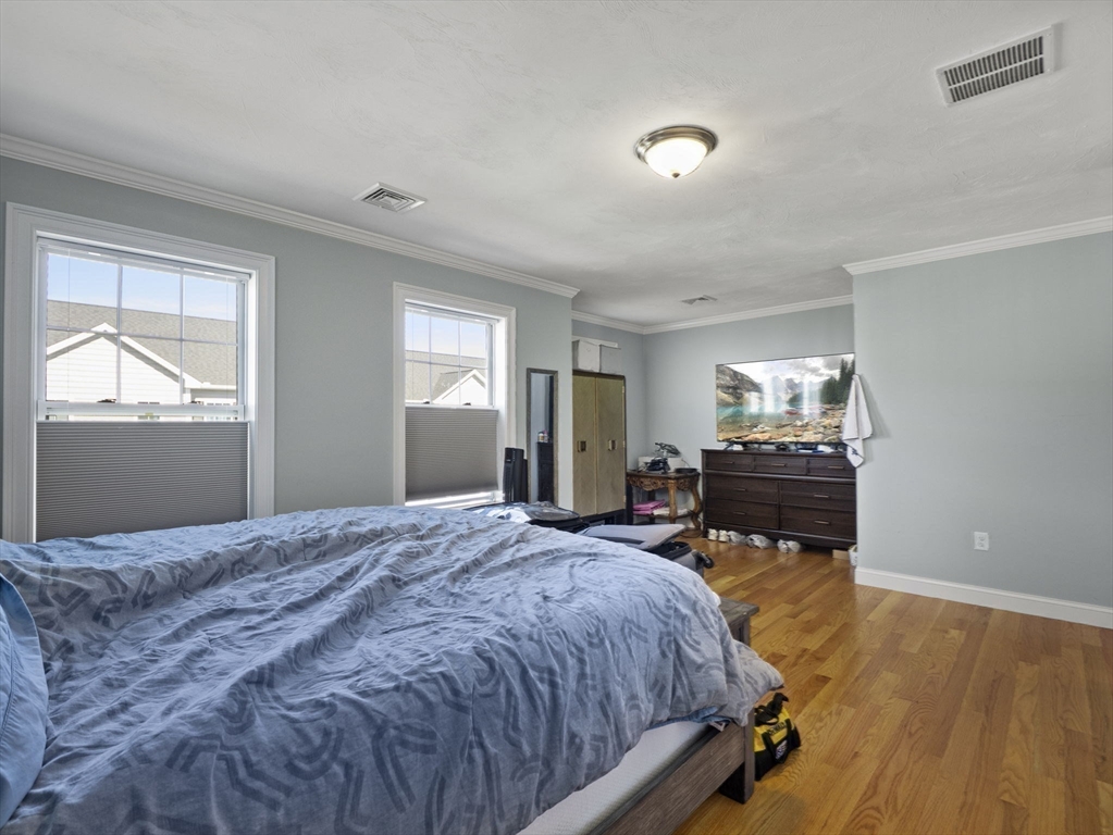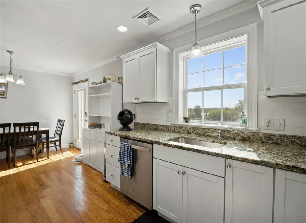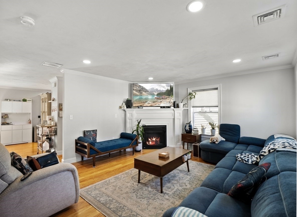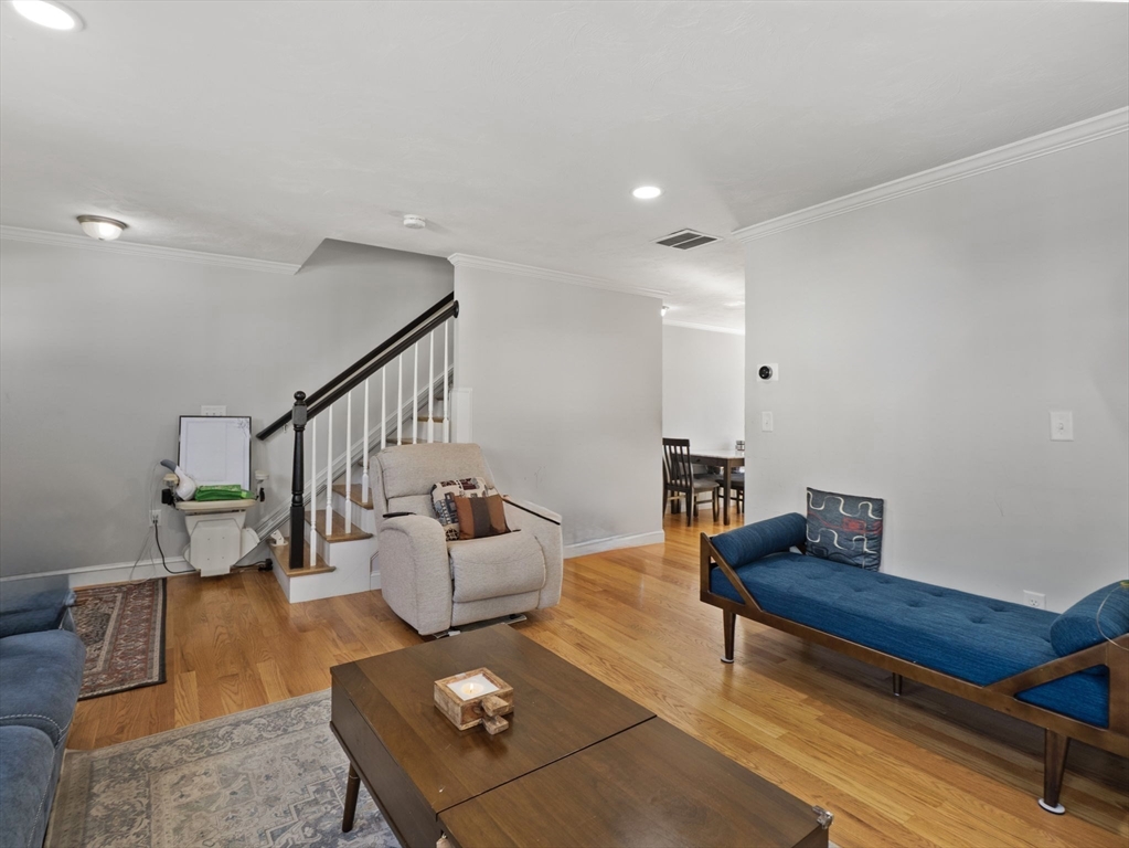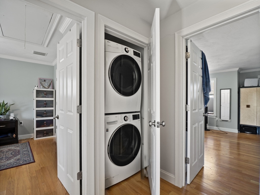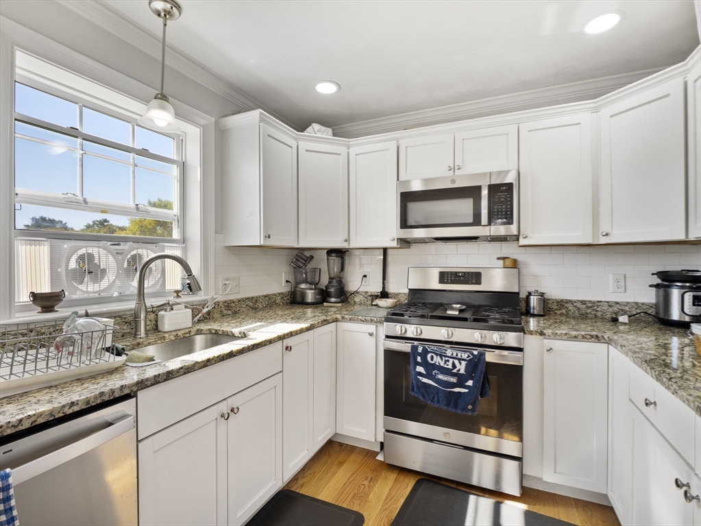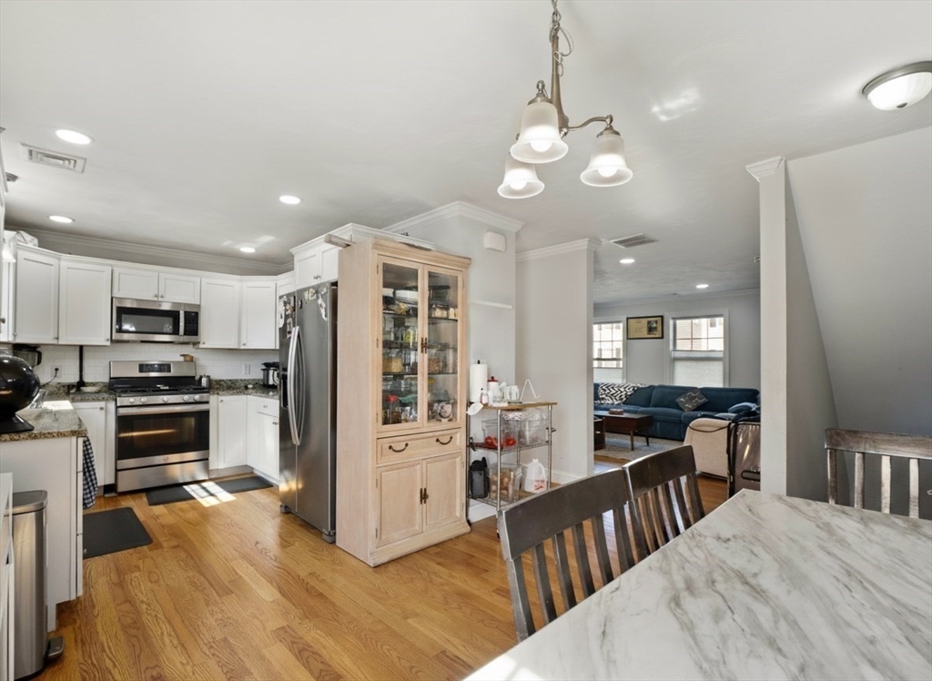 Luxury Townhome in Mill City Crossing Community. This meticulously maintained 3 bedroom, 1.5 bath tri-level Townhouse feature an open concept kitchen with upgraded energy efficient stainless appliances w/ natural-gas range, granite countertops, ceramic tile backsplash, abundance of cabinetry, a formal dining area and exterior access to the rear deck through a french glass door. The spacious fireplaced living room features oversized trim, crown molding, recessed lighting and hardwood floors throughout. The third floor has two generously sized bedrooms, the primary bedroom includes his and hers french door closets, laundry area, a common full bath w/ granite countertops and private attic access for additional storage. Built in 2021. Great commuter location! Conveniently close to Chelmsford, Billerica, MBTA, UMass Lowell, Shopping, Restaurants, Downtown, the Lowell connector and Major Routes 3, 3A, 110, 113, 225, 4 & 495