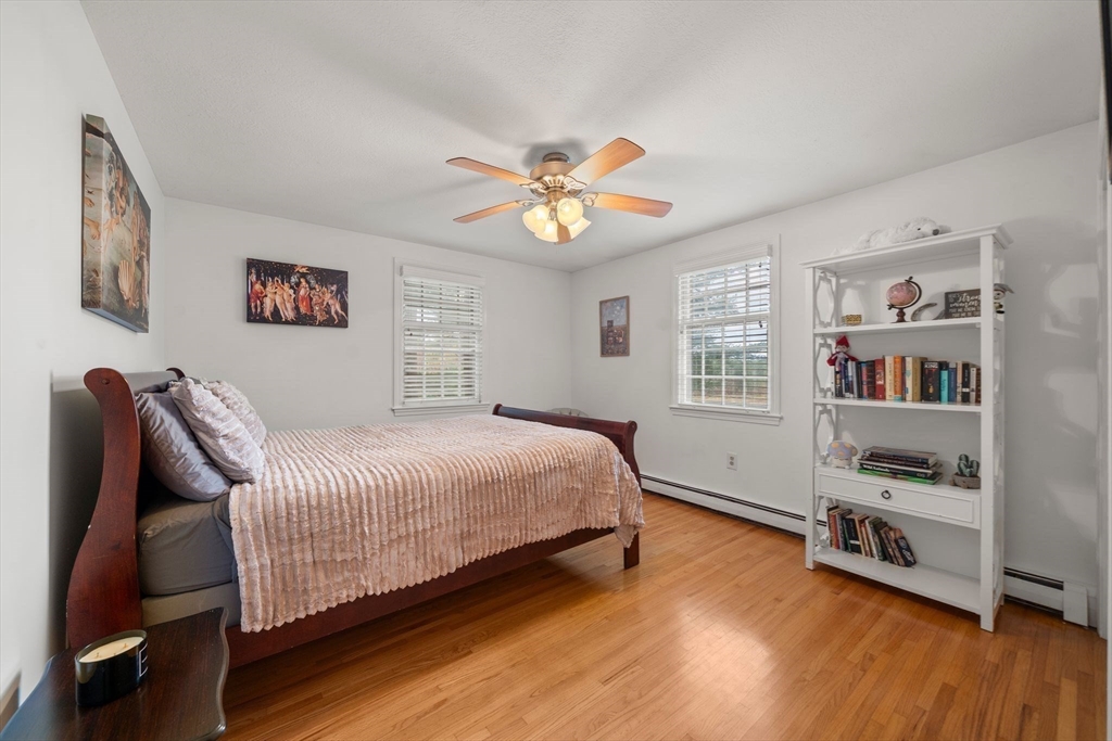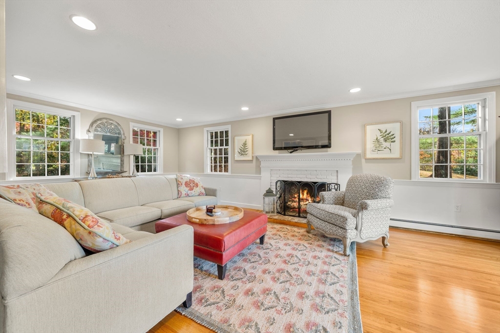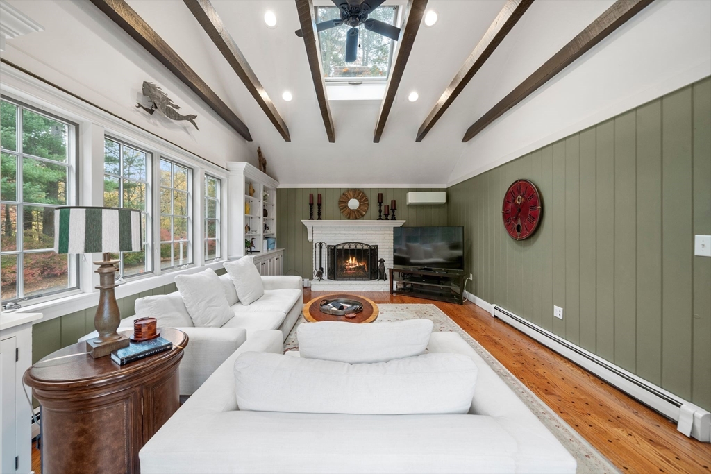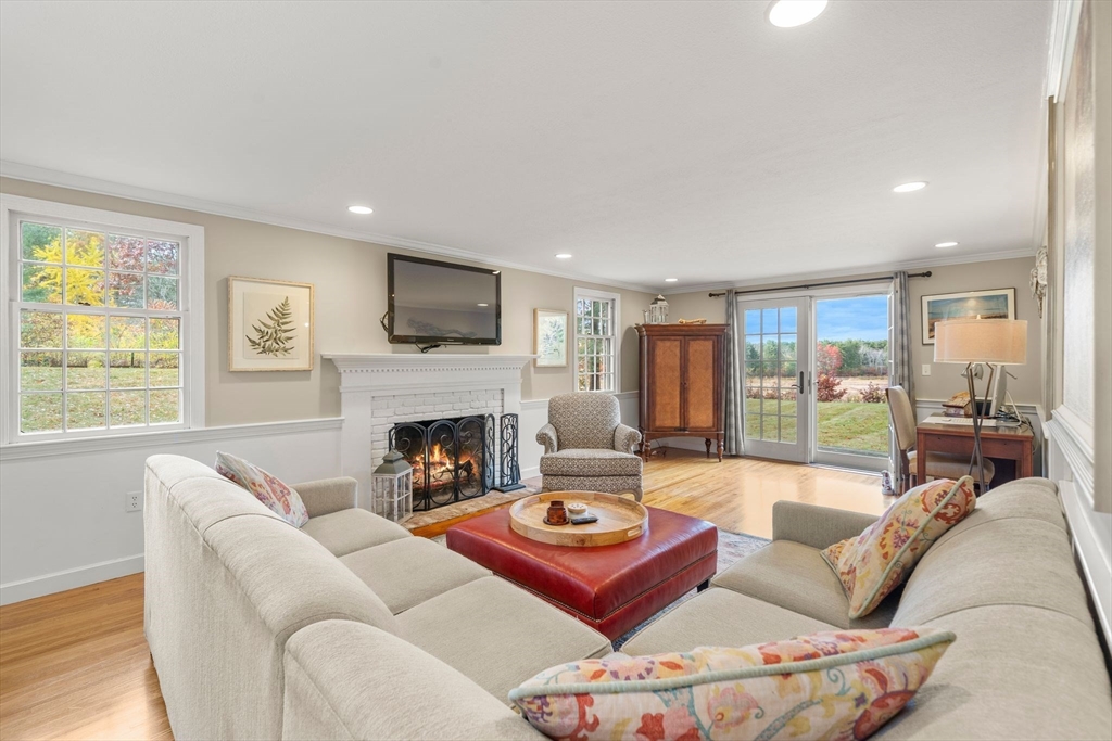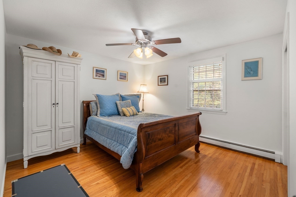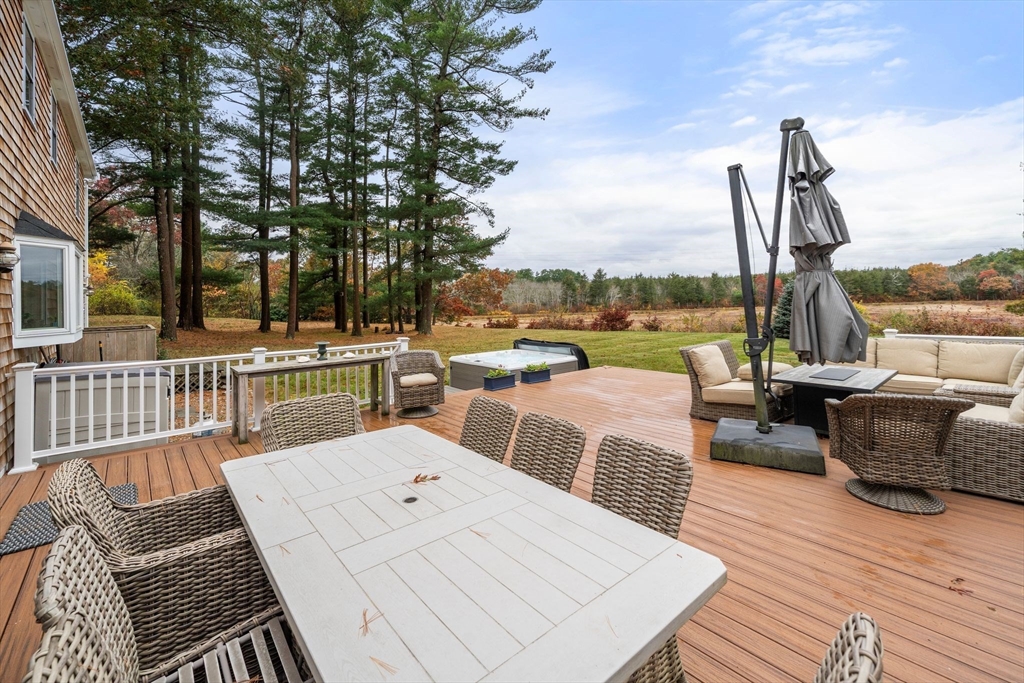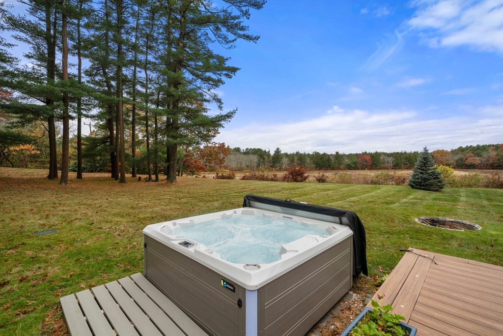 Charming and beautifully maintained Colonial home set on a private .94-acre lot, offering serene views of the surrounding cranberry bogs and amazing sunsets. This 4-bedroom, 2.5-bath residence exudes timeless New England charm with gleaming hardwood floors and two spacious living rooms, each featuring a cozy wood-burning fireplace. The kitchen showcases stainless steel appliances, ample cabinetry, and a welcoming layout ideal for everyday living and entertaining. Upstairs, the primary suite offers a private en suite bath for added comfort. Step outside to enjoy the peaceful natural setting from the expansive yard, complete with an inviting outdoor jacuzzi—perfect for relaxing under the stars. Recent renovations include a partially finished lower level with a home gym, bonus room, and a dedicated storage area with a workbench. With a two-car garage and a set-back location ensuring exceptional privacy, this property combines classic style, modern updates, and tranquil outdoor living.