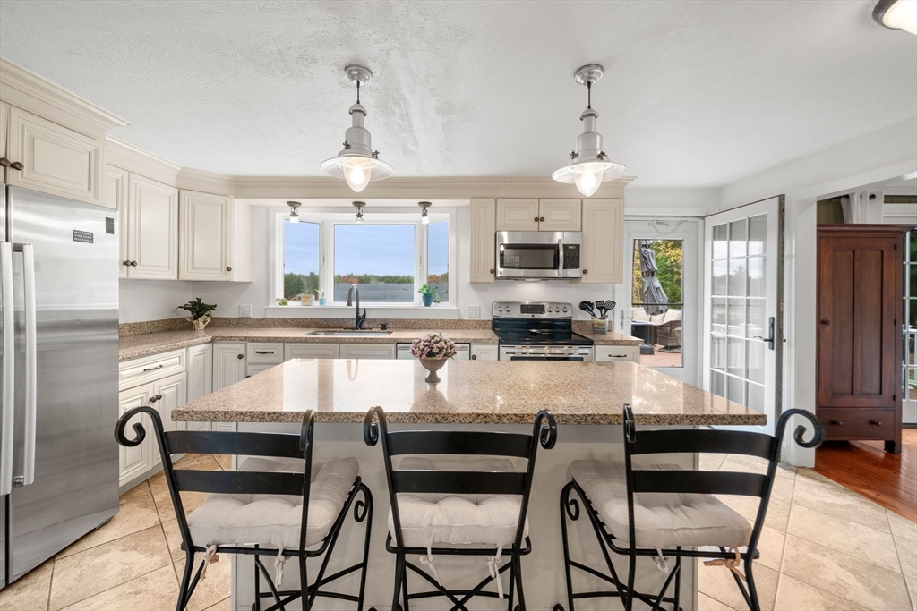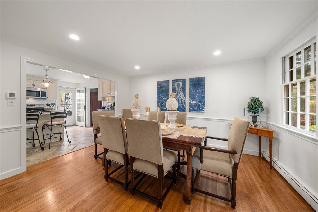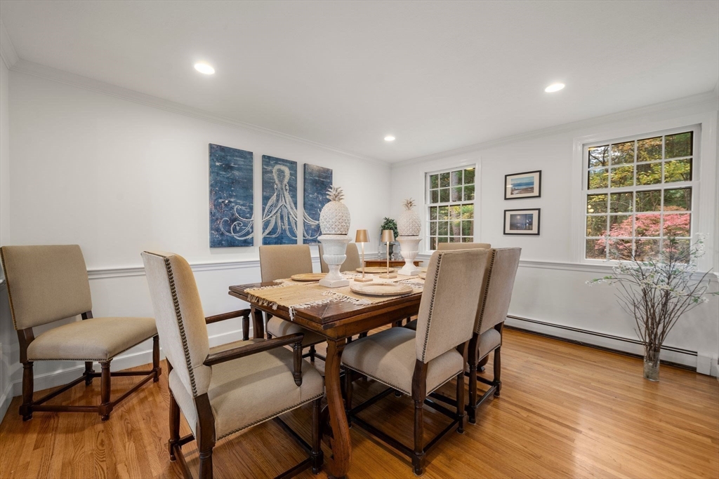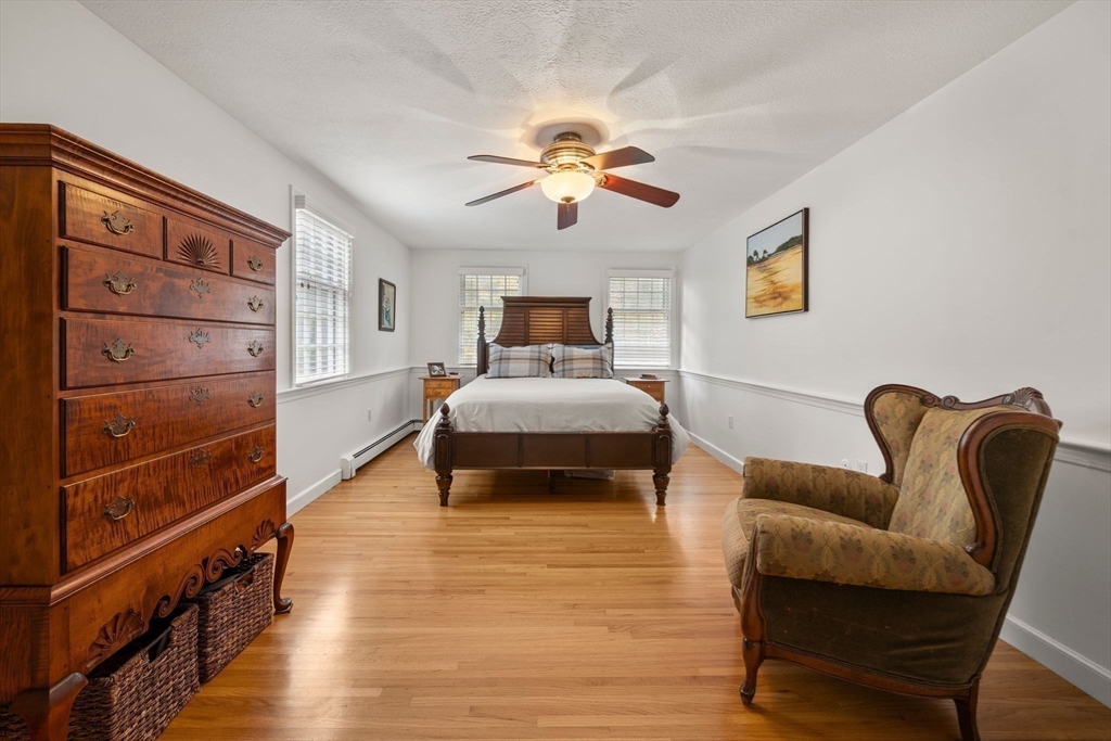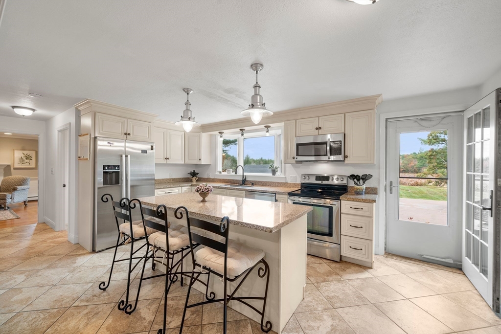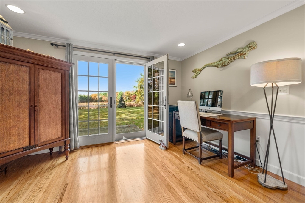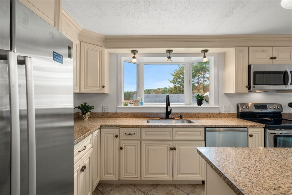 Charming and beautifully maintained Colonial home set on a private .94-acre lot, offering serene views of the surrounding cranberry bogs and amazing sunsets. This 4-bedroom, 2.5-bath residence exudes timeless New England charm with gleaming hardwood floors and two spacious living rooms, each featuring a cozy wood-burning fireplace. The kitchen showcases stainless steel appliances, ample cabinetry, and a welcoming layout ideal for everyday living and entertaining. Upstairs, the primary suite offers a private en suite bath for added comfort. Step outside to enjoy the peaceful natural setting from the expansive yard, complete with an inviting outdoor jacuzzi—perfect for relaxing under the stars. Recent renovations include a partially finished lower level with a home gym, bonus room, and a dedicated storage area with a workbench. With a two-car garage and a set-back location ensuring exceptional privacy, this property combines classic style, modern updates, and tranquil outdoor living.