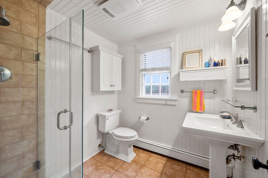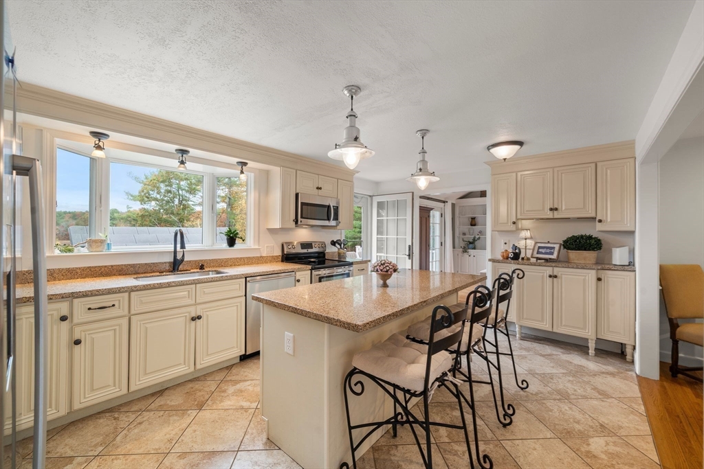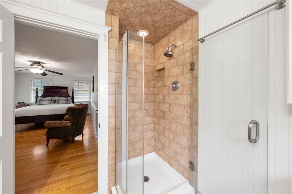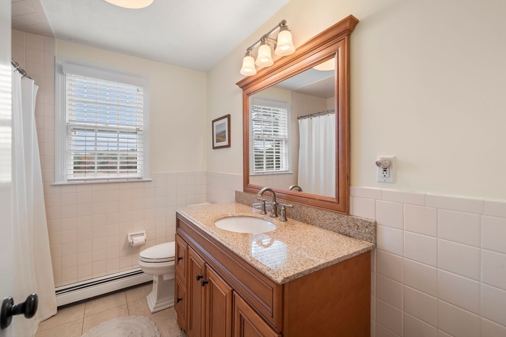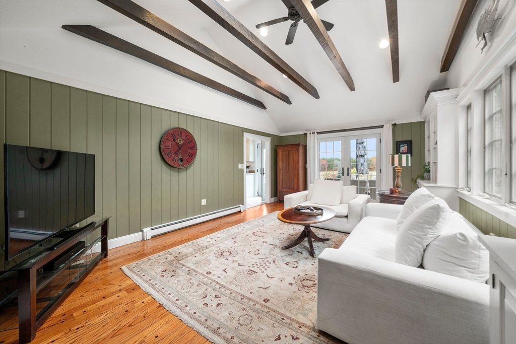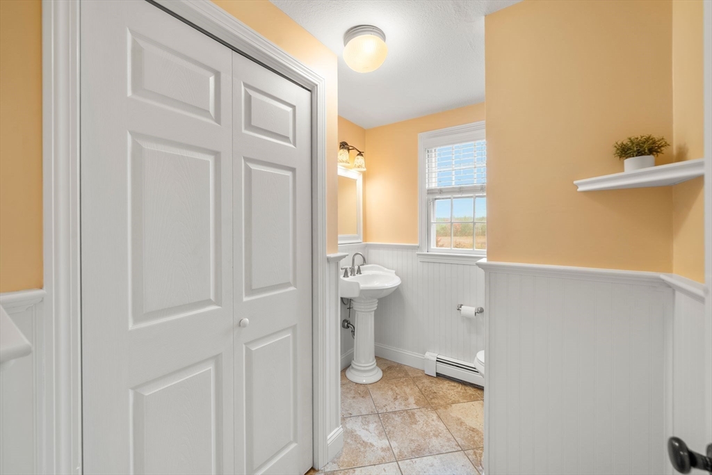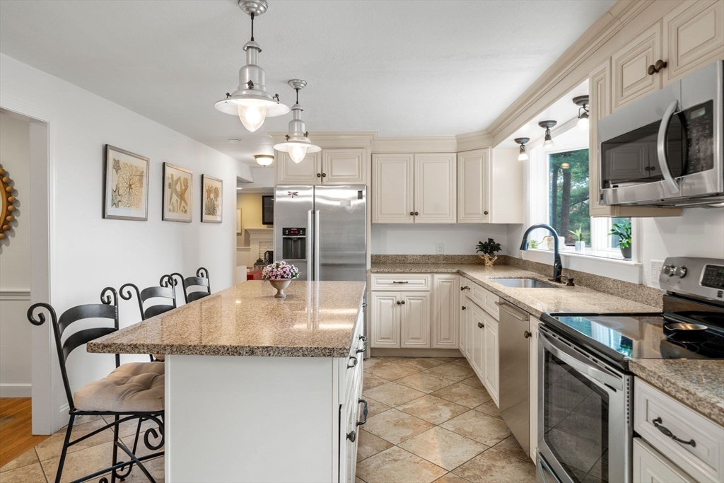 Charming and beautifully maintained Colonial home set on a private .94-acre lot, offering serene views of the surrounding cranberry bogs and amazing sunsets. This 4-bedroom, 2.5-bath residence exudes timeless New England charm with gleaming hardwood floors and two spacious living rooms, each featuring a cozy wood-burning fireplace. The kitchen showcases stainless steel appliances, ample cabinetry, and a welcoming layout ideal for everyday living and entertaining. Upstairs, the primary suite offers a private en suite bath for added comfort. Step outside to enjoy the peaceful natural setting from the expansive yard, complete with an inviting outdoor jacuzzi—perfect for relaxing under the stars. Recent renovations include a partially finished lower level with a home gym, bonus room, and a dedicated storage area with a workbench. With a two-car garage and a set-back location ensuring exceptional privacy, this property combines classic style, modern updates, and tranquil outdoor living.