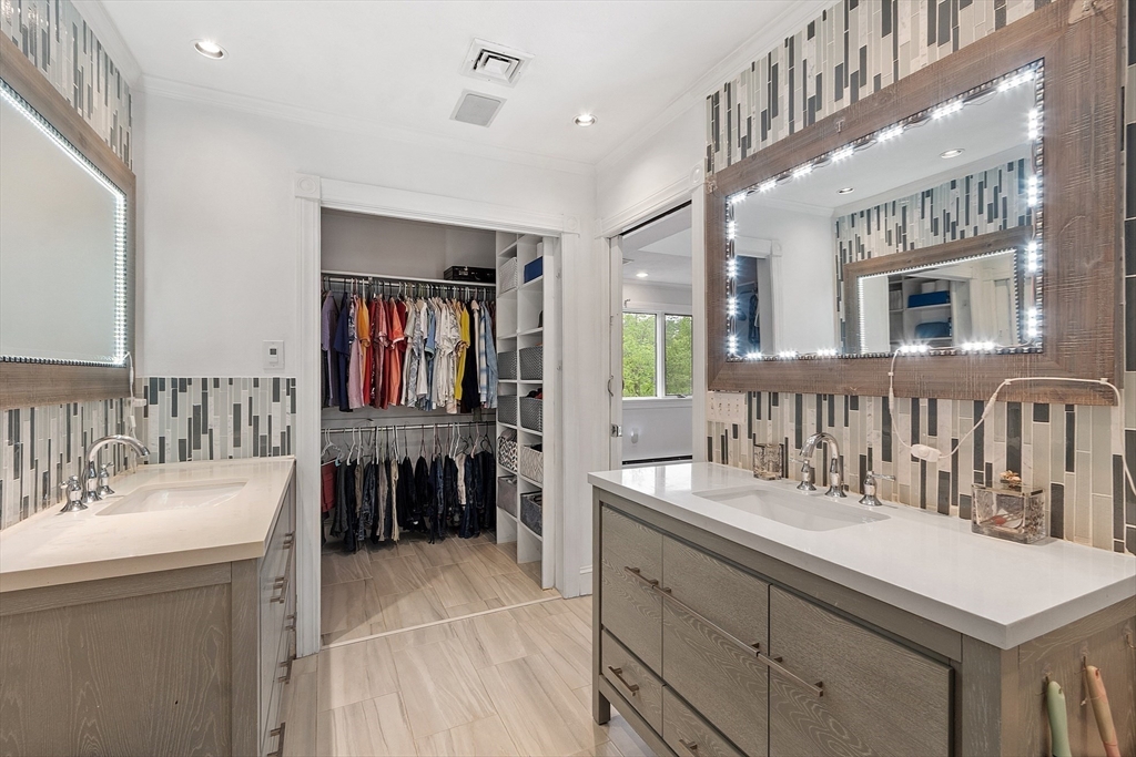 Location! Location! This beautiful contemporary freshly painted Tudor-style house with amazing pond views on a beautiful landscaped private setting offers 5 bedrooms, 3 full & 1 half baths. The open concept living space is perfect to entertain. The chef’s kitchen features sleek cabinetry, quartz counter tops, large island, premium appliances and beautiful backsplash. Also, a family room with soaring ceilings and a beautiful fireplace. The other side of the kitchen connects with the formal elegant dining room and a formal living room with beautiful crown moldings and an elegant wet bar with more water views. The primary suite is a luxurious retreat, complete with a dream walk-in closet out of a magazine, high ceilings, skylight, private balcony, and serene views of the pond and the garden. The nice sized office has a fireplace, custom-built shelves and closet. Completing this incredible home with its porch, deck, patio, and a 4-car garage and 12 + parking spots on the driveway.