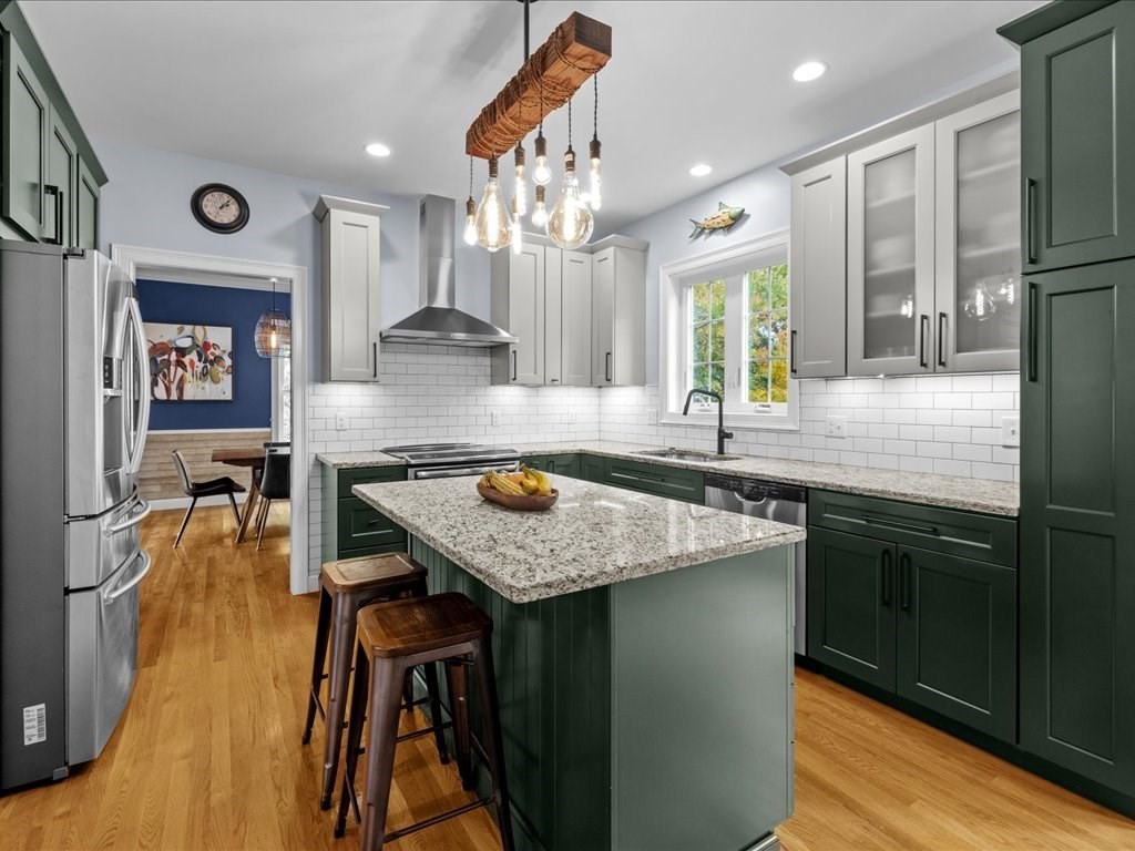 From the moment you step inside, this home impresses with style, modern finishes, and thoughtful details. The designer kitchen shines with sleek new cabinets, granite countertops, and a generous island that opens to the fire placed living room—perfect for entertaining or relaxing at home. The dining and family rooms feature bold, sophisticated wall colors that create a warm, welcoming atmosphere. Upstairs, the luxurious primary suite offers a spa-like retreat with steam shower and walk-in closet, while two additional bedrooms, a full bath, and a loft provide flexibility. The newly finished third floor adds two rooms, skylights and a stunning full bath—ideal for guests, a home office, or creative space. A finished lower level home gym and two-car garage with EV charger complete this stylish home. Become a part of the community in one of Salem’s most sought-after neighborhoods. This is more than a beautiful home — it’s a place where families grow, friends gather, and memories are made.