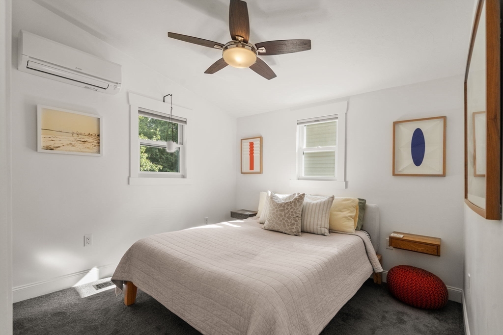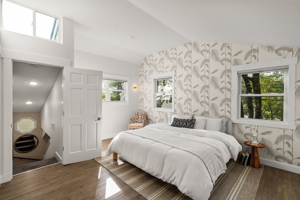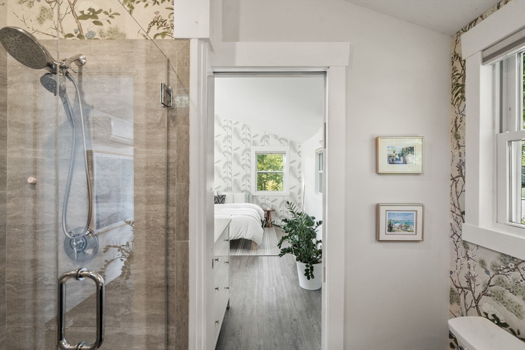 Discover a rare opportunity to own a designer-renovated home that blends sophisticated style with effortless living. This residence offers an airy open plan, soaring vaulted ceilings, and curated finishes that rival new construction. The chef’s kitchen features granite counters, stainless appliances, and sleek cabinetry—ideal for entertaining or intimate nights in.The primary suite is a private sanctuary, complete with dramatic ceilings and a spa-inspired bath. A second bedroom, additional full bath, and versatile bonus space provide flexibility for guests, work, or relaxation.Set against tranquil water views, the home offers privacy and calm, while just minutes to major routes and the commuter rail into Boston. Around the corner, enjoy farm-to-table living with a working farm stand and a local artisan coffee roaster.This is not just a home—it’s a refined lifestyle of modern convenience and timeless charm. Rarely does a property of this caliber come to market. Quick close possible.
